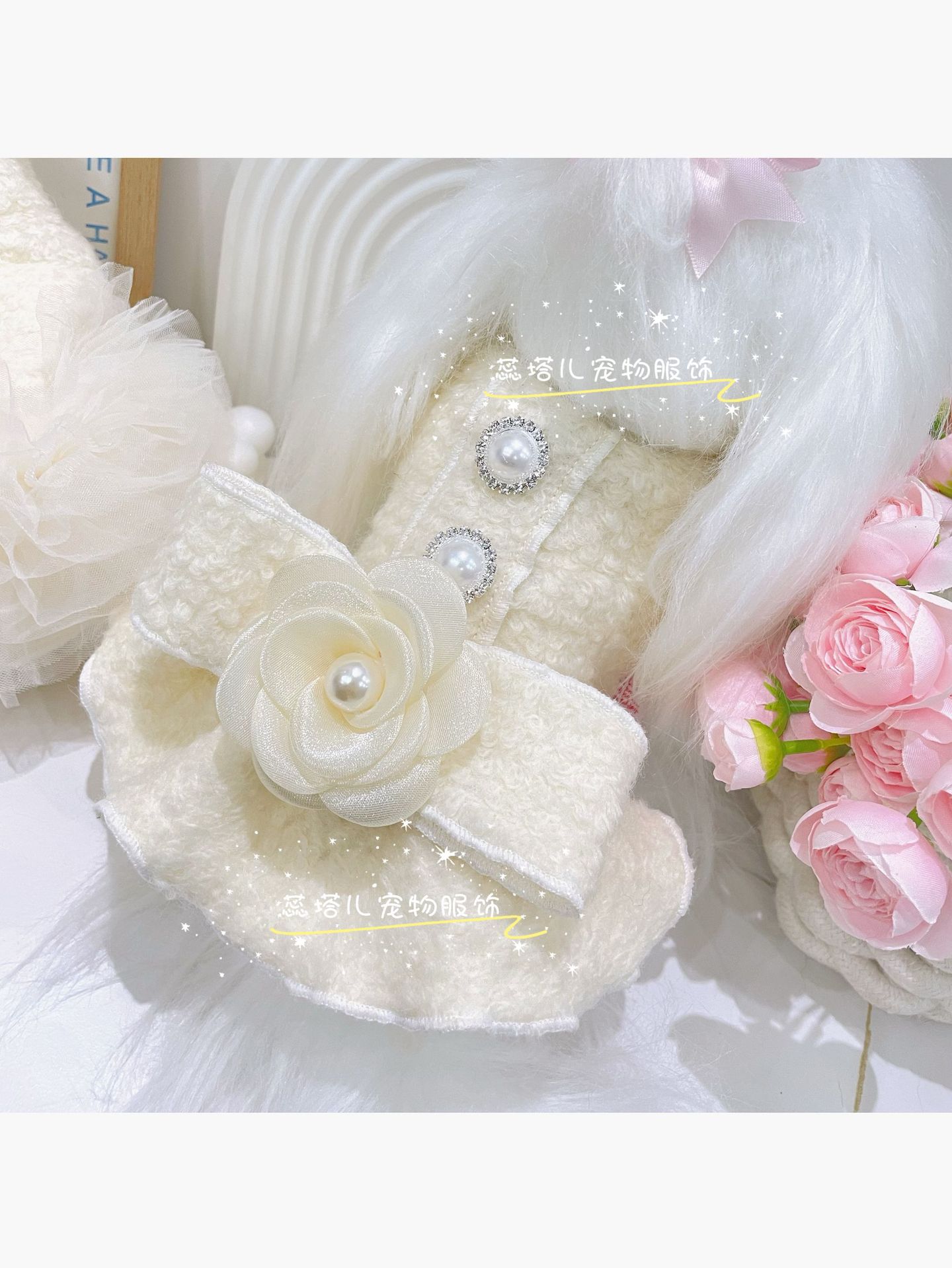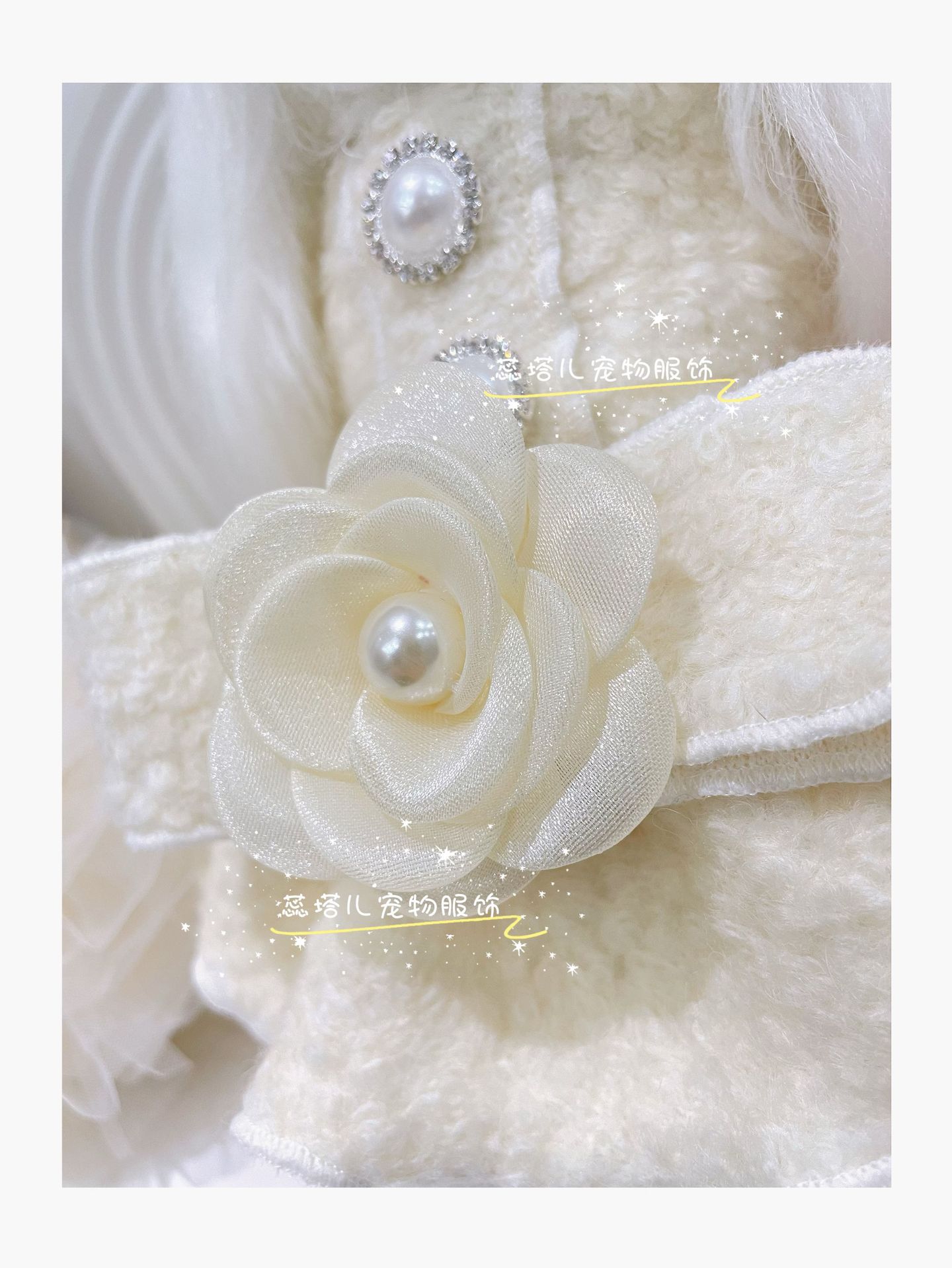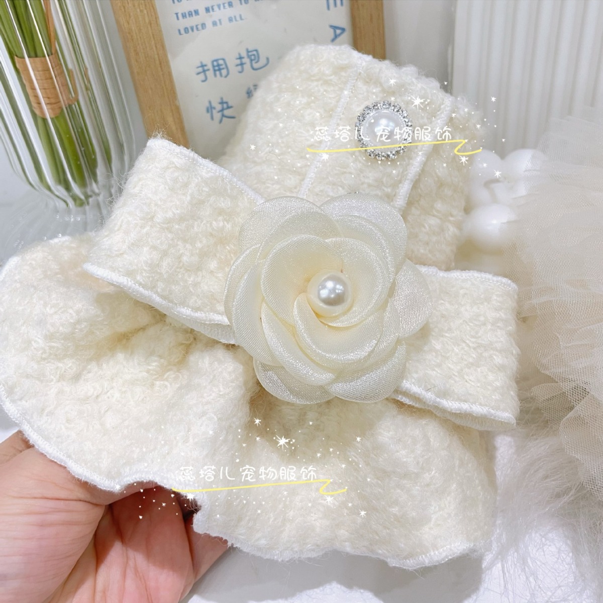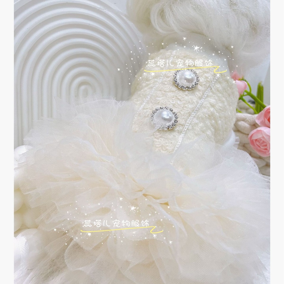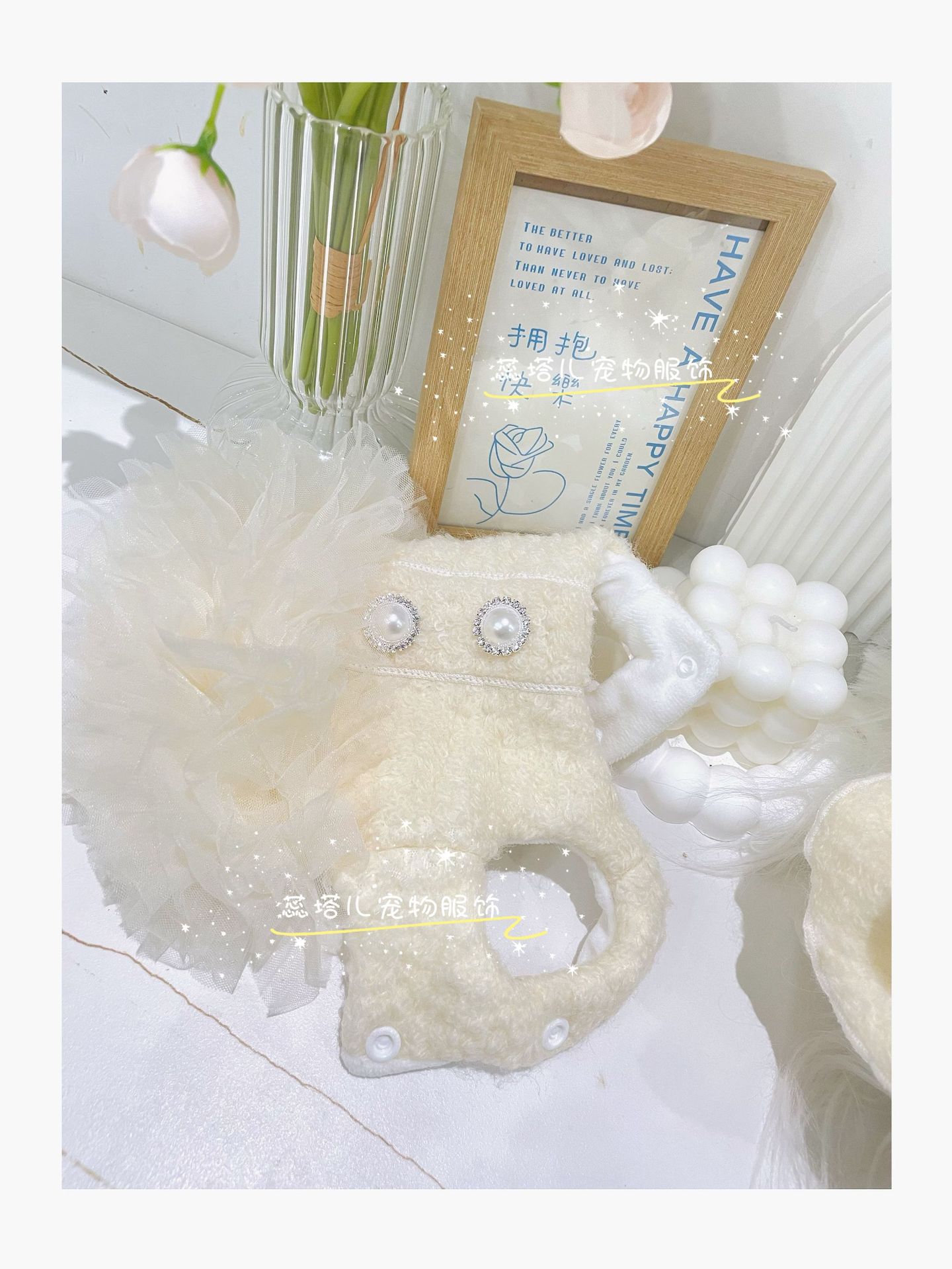 小型犬马尔济斯衣服小香风米白色连衣裙蓝猫布偶猫冬装tutu裙毛呢