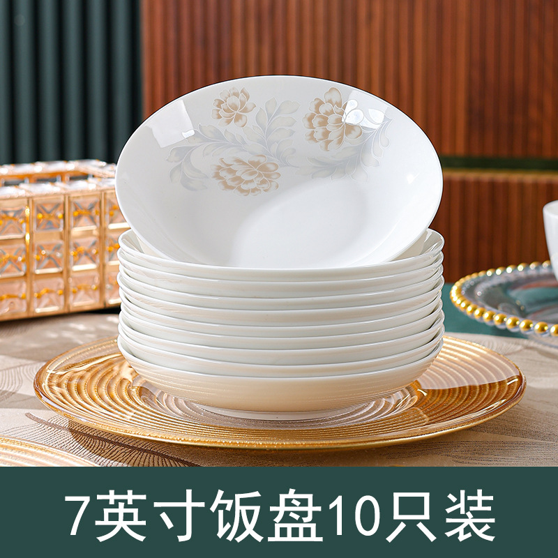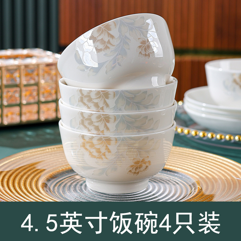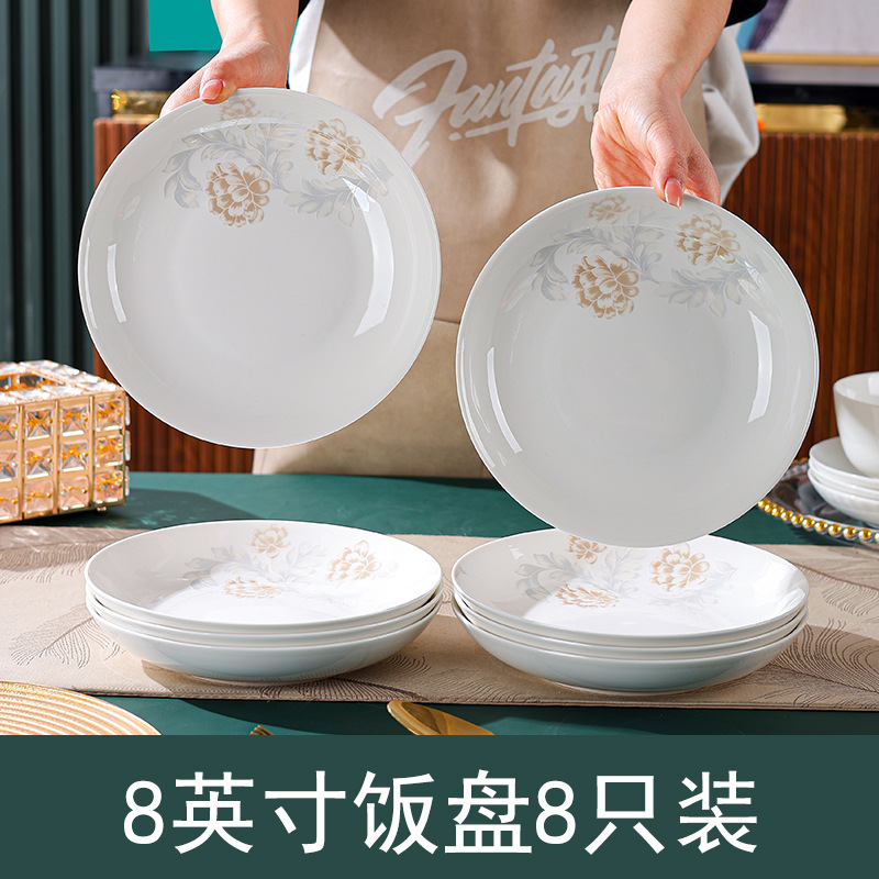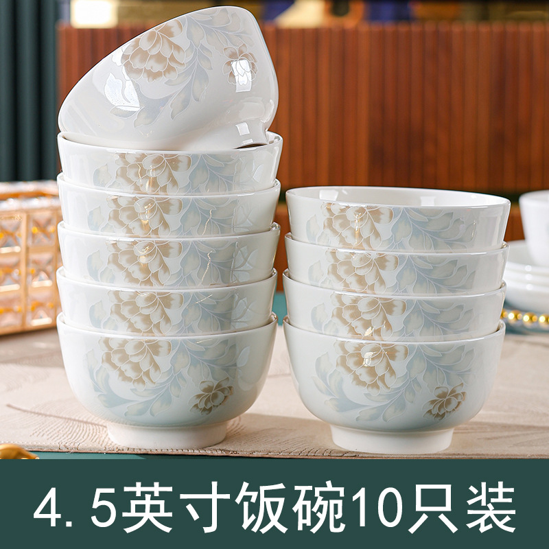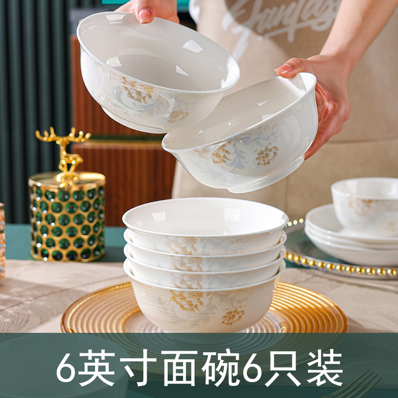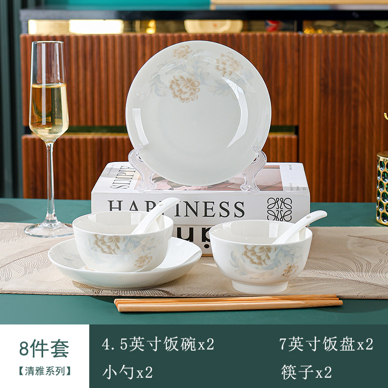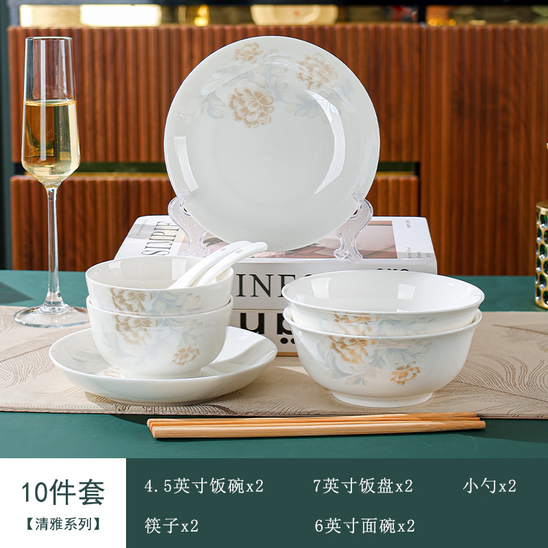 高级感清雅碗碟套装汤碗饭碗简约餐具套装高温烤花陶瓷碗家用面碗