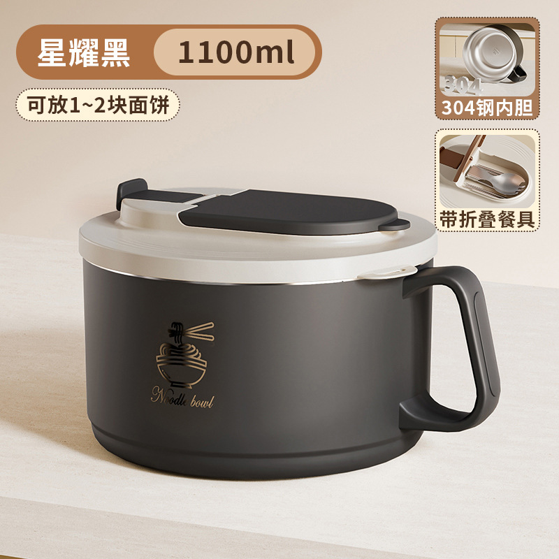 304不锈钢泡面碗学生宿舍大容量易洗泡面神器食堂带盖打饭碗饭盒