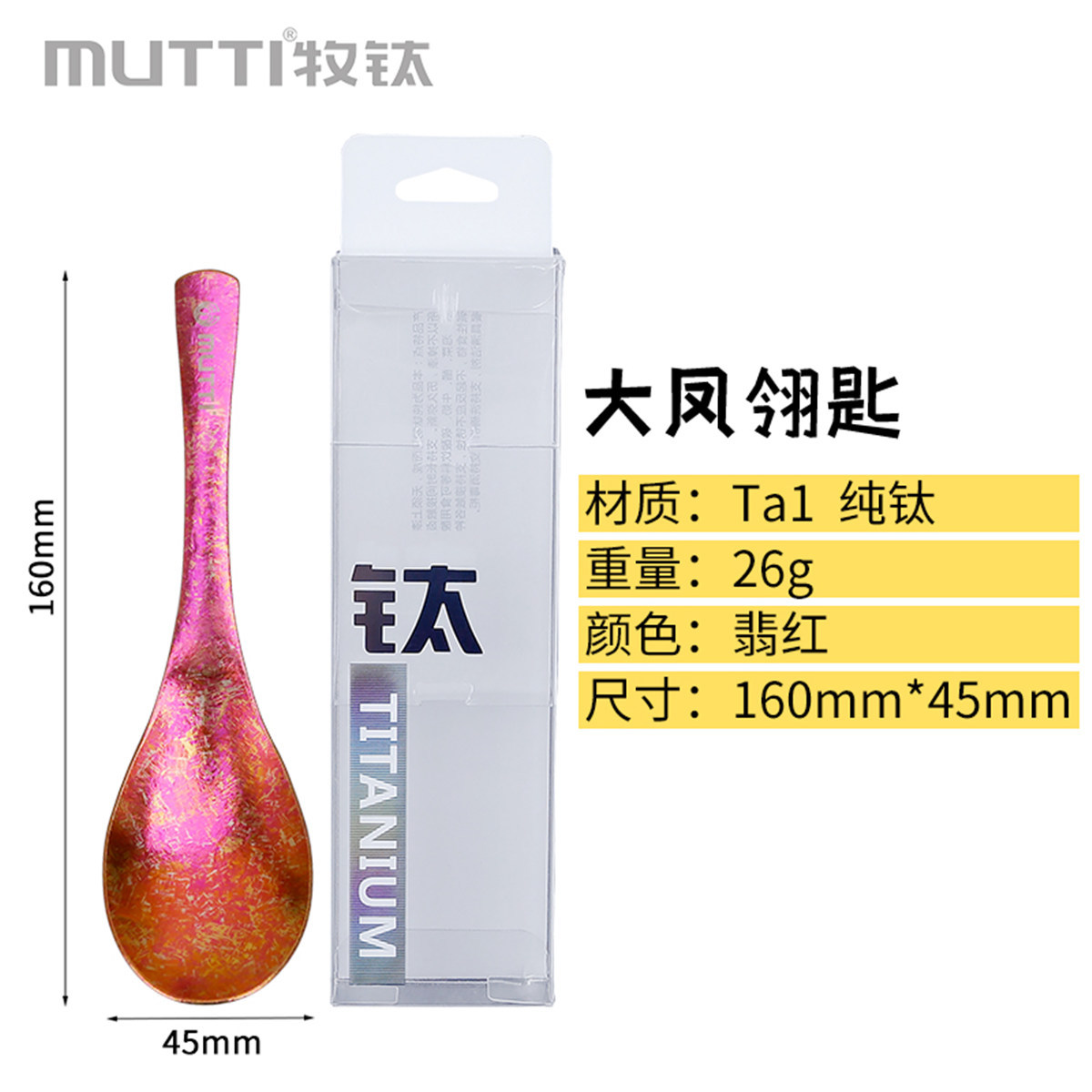 纯钛勺子全钛汤勺中式冰花家用露营汤匙钛合金调羹便携吃饭勺餐具