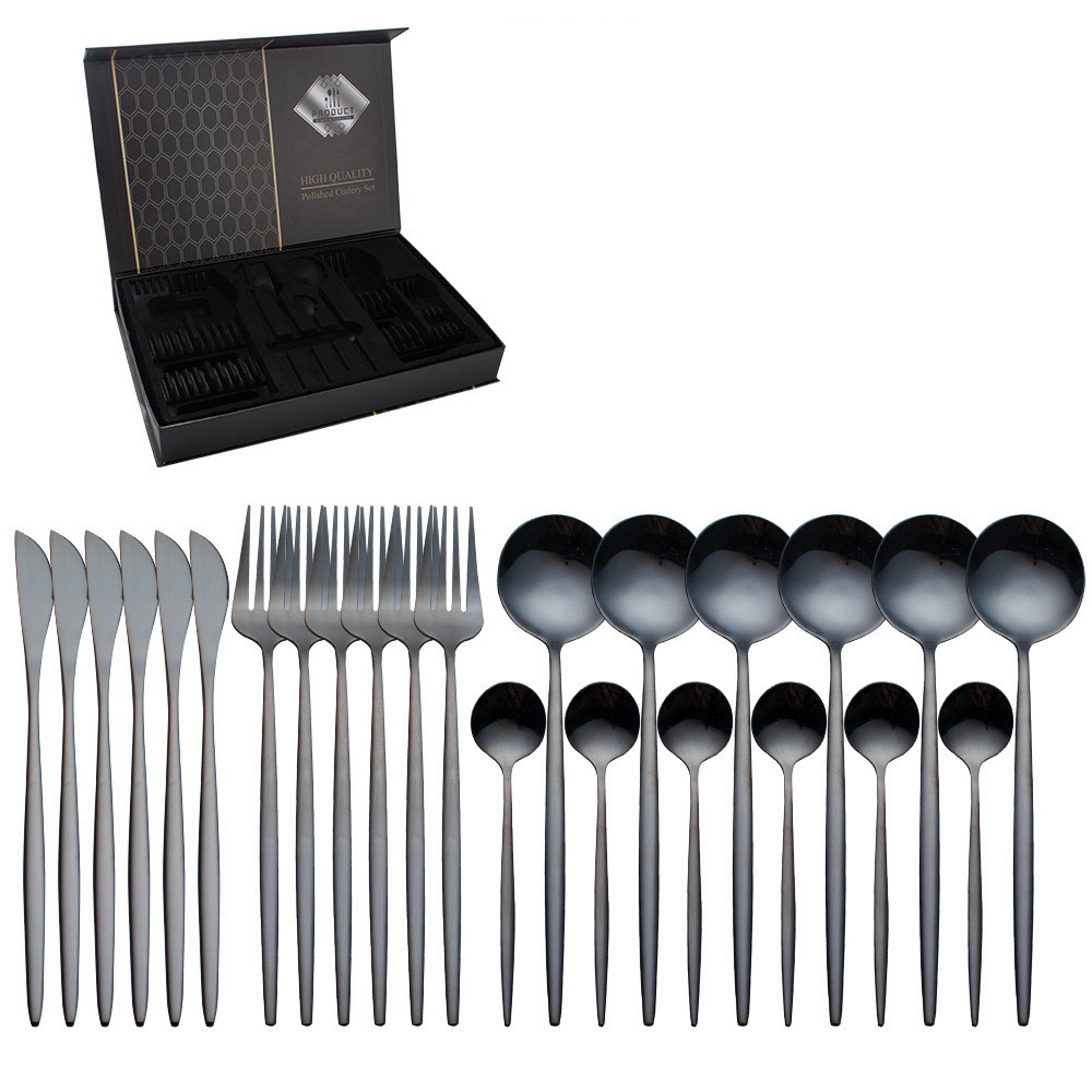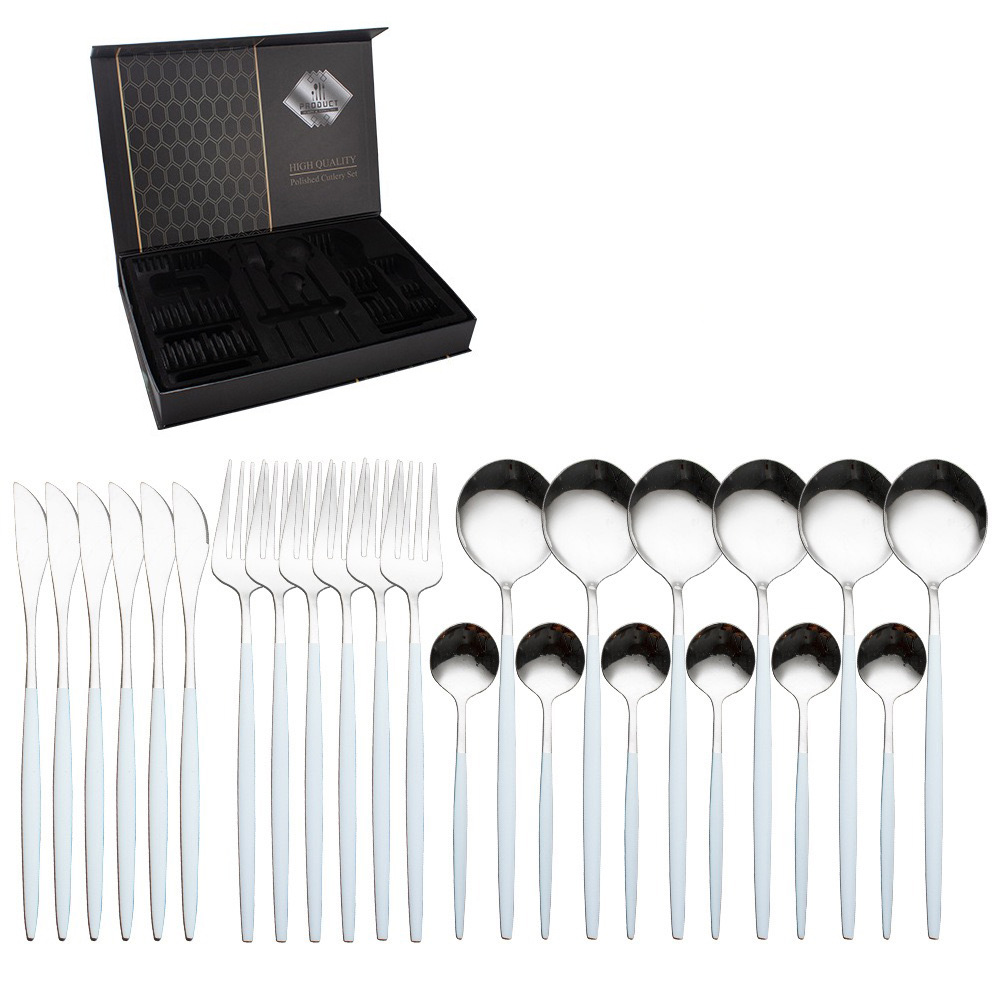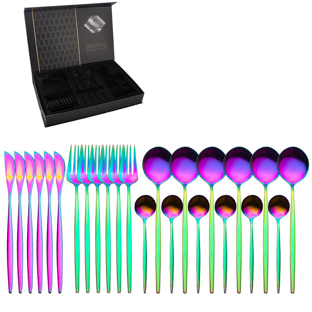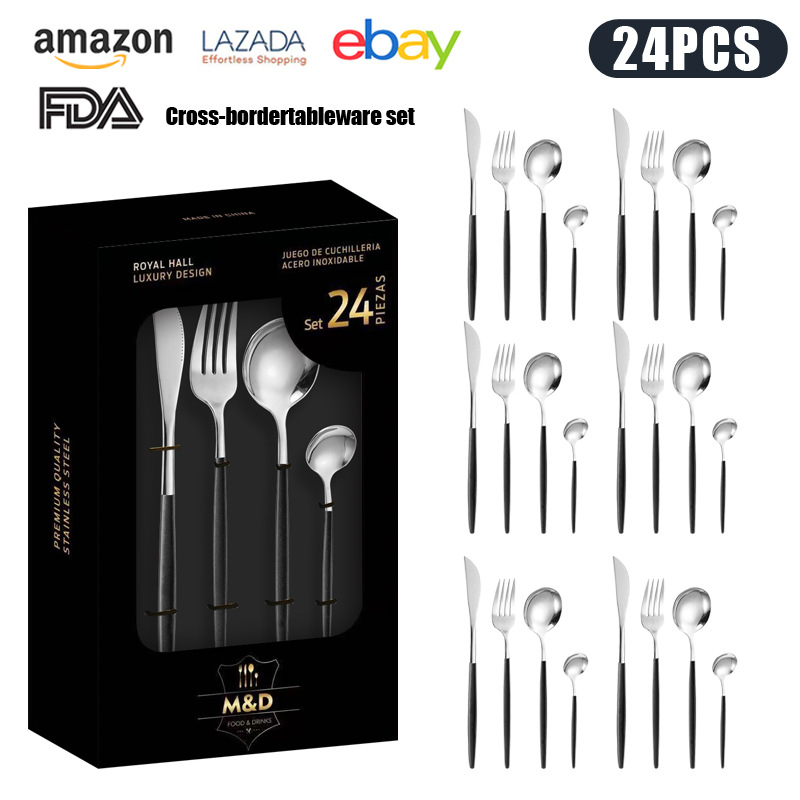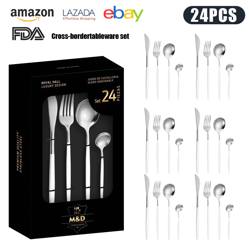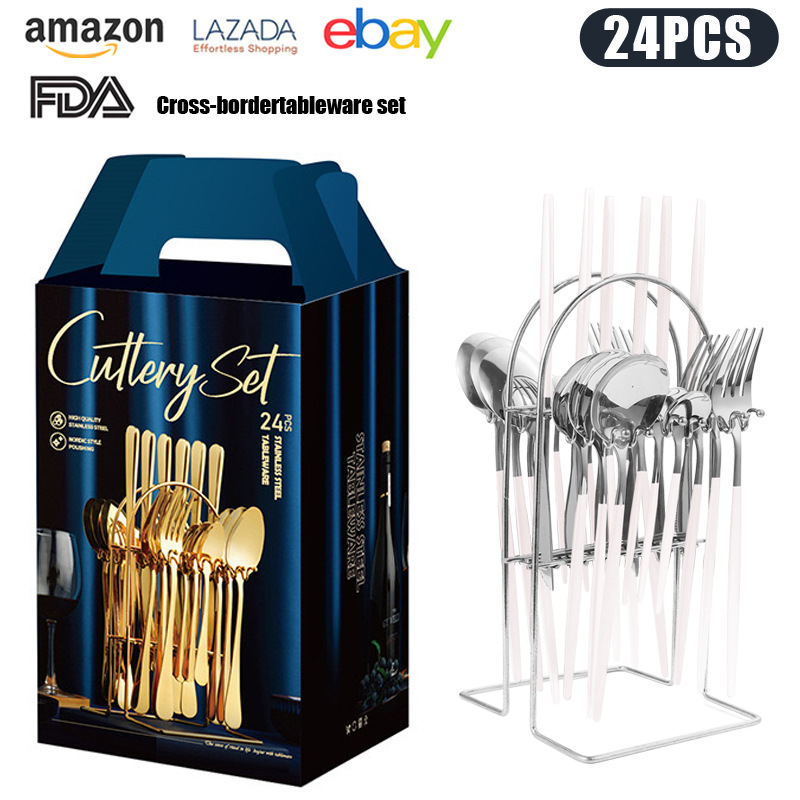 跨境热销葡萄牙不锈钢刀叉24件套餐具套装礼盒装镀钛金色西餐勺子