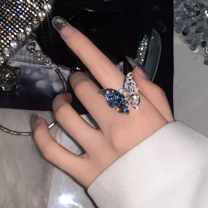ins风珍珠锆石蝴蝶戒指女小众高级感轻奢情侣对戒气质开口戒批发