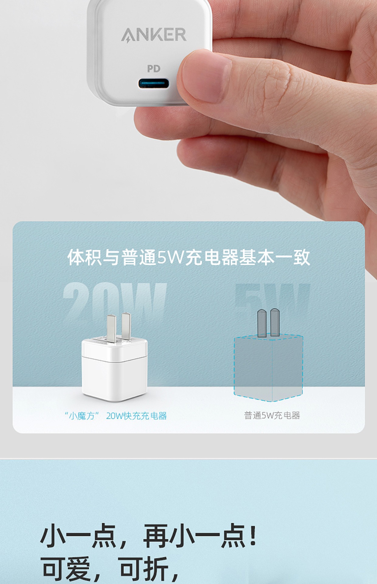 ANKER 安克小魔方PD20W适用于苹果快充充电器华为小米充电头B2149