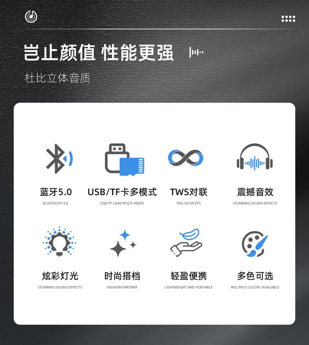 Y06 跨境新款蓝牙音响桌面手提 便携式RGB灯重低音无线蓝牙音箱