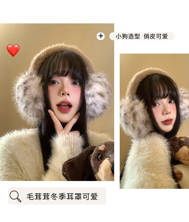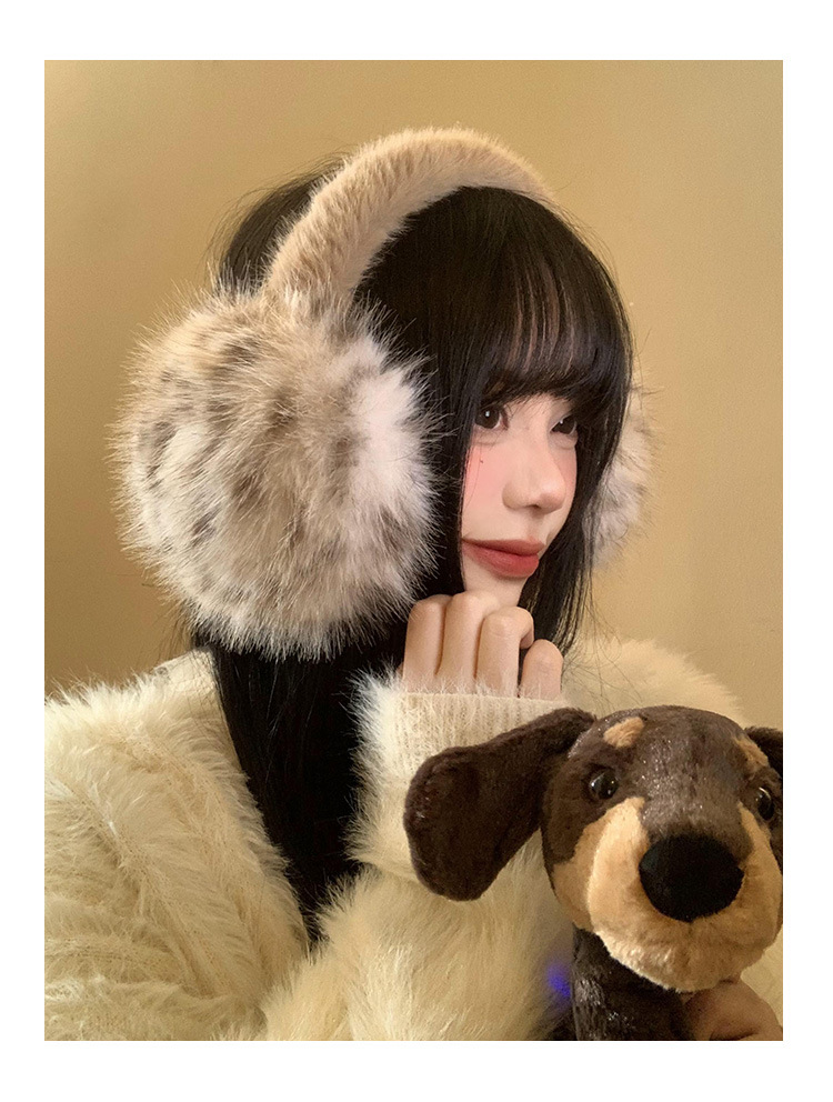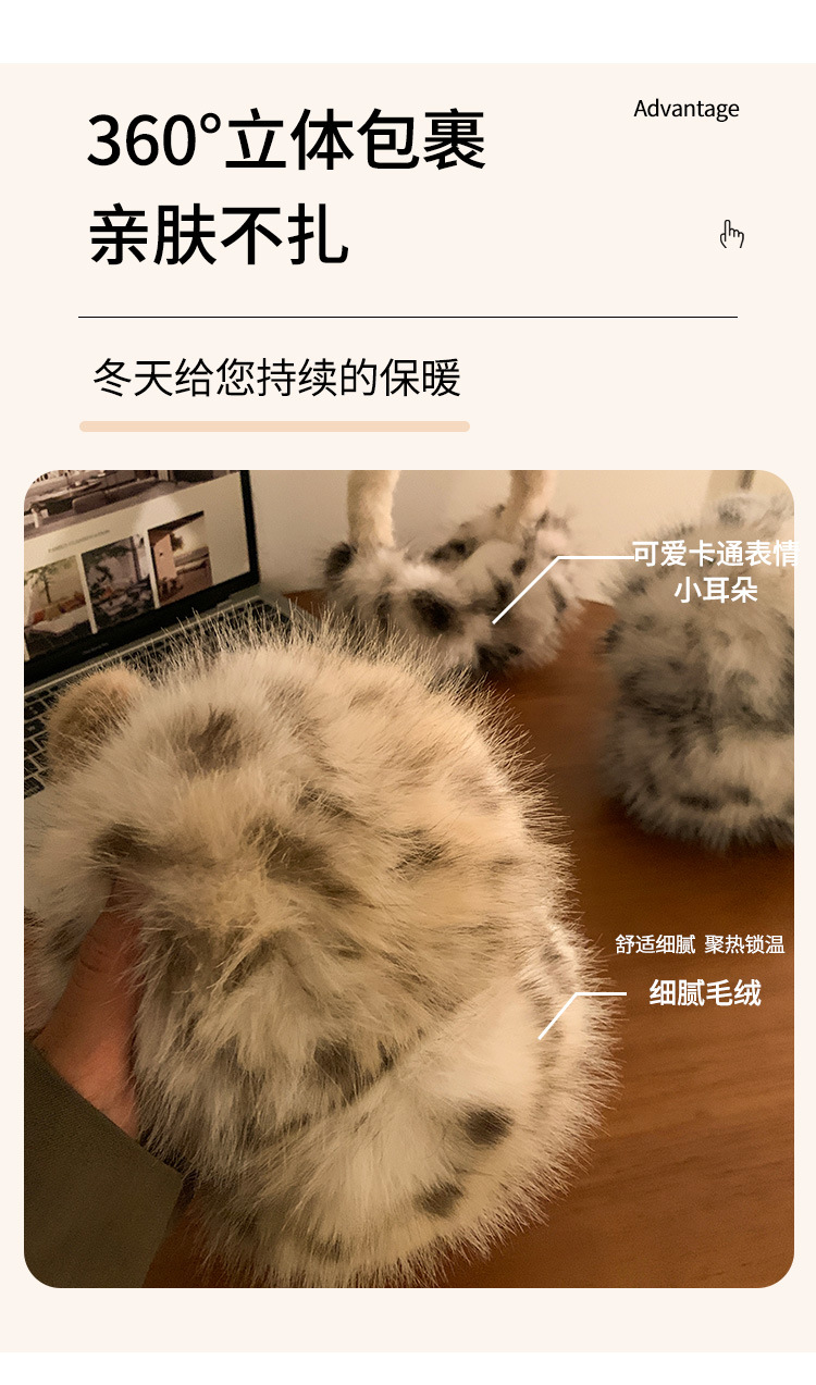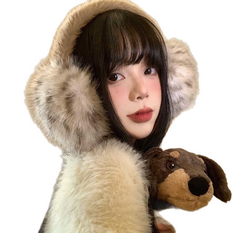 豹纹毛绒耳罩女冬季毛茸茸耳包耳套骑车防冻防寒保暖耳暖耳捂子