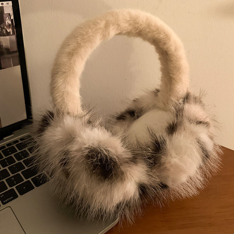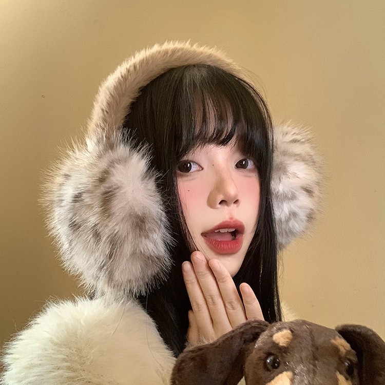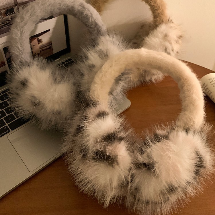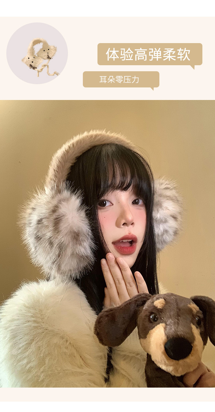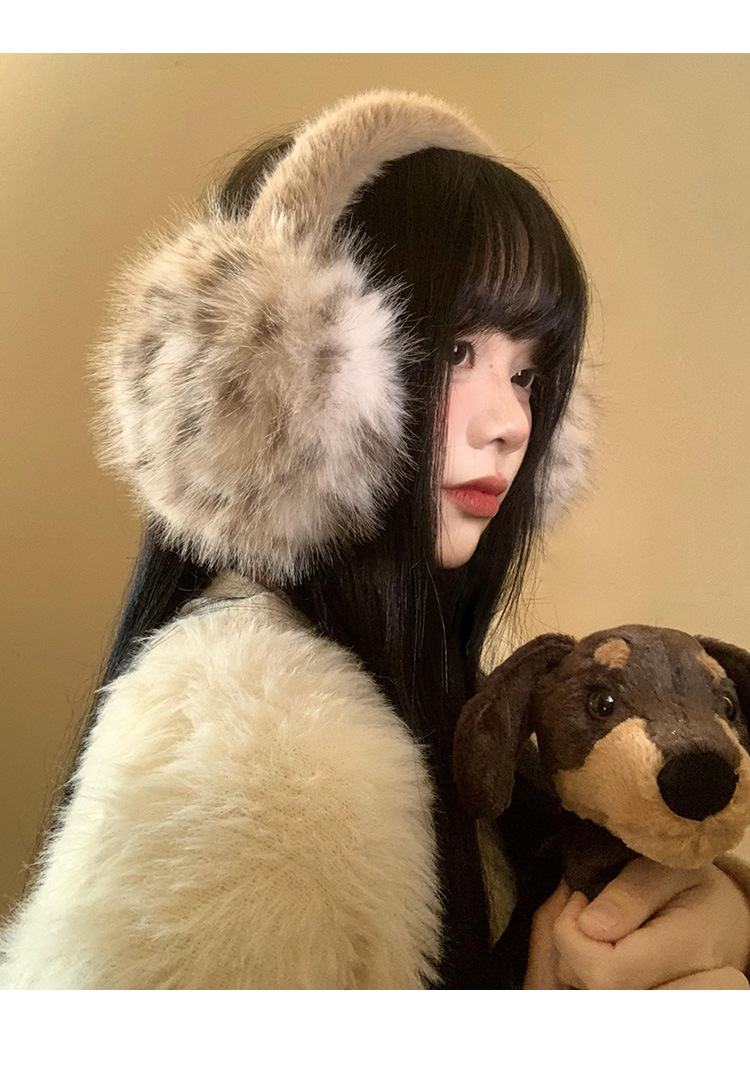 豹纹毛绒耳罩女冬季毛茸茸耳包耳套骑车防冻防寒保暖耳暖耳捂子
