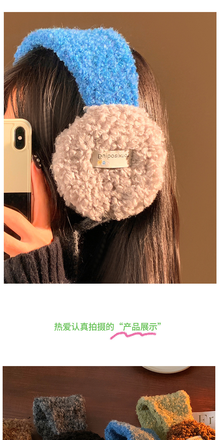羊羔毛耳罩女冬季韩版冬季蓝色加厚毛绒保暖防寒防冻户外骑车耳包