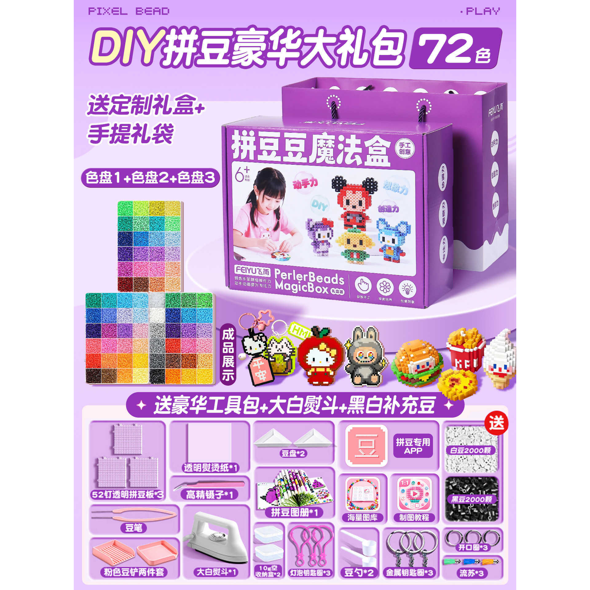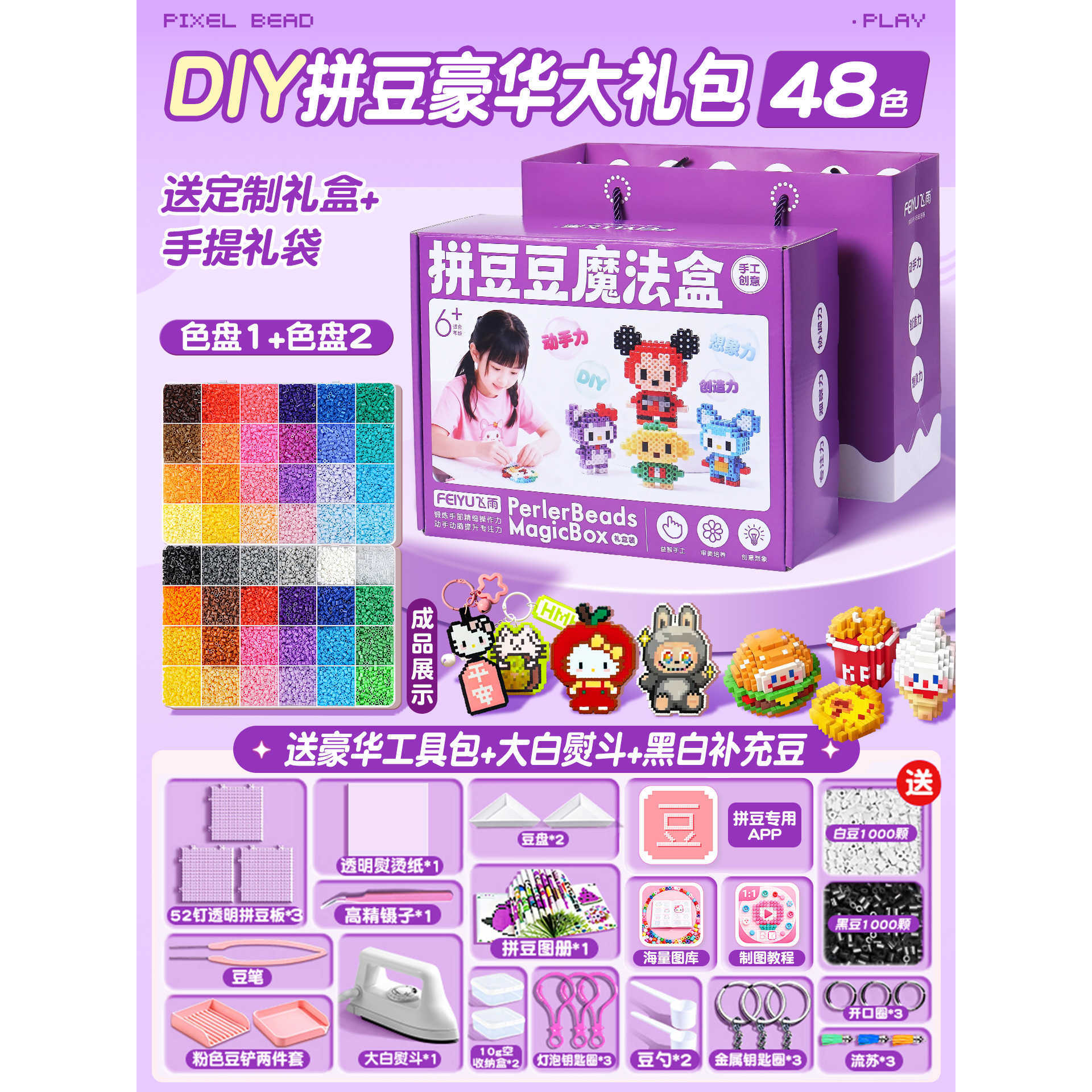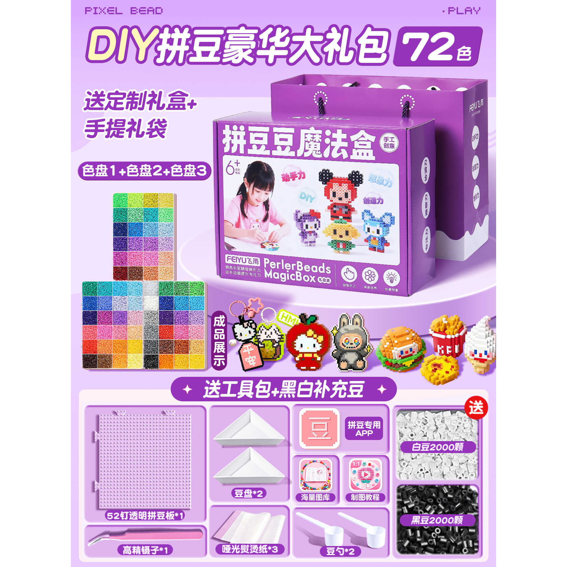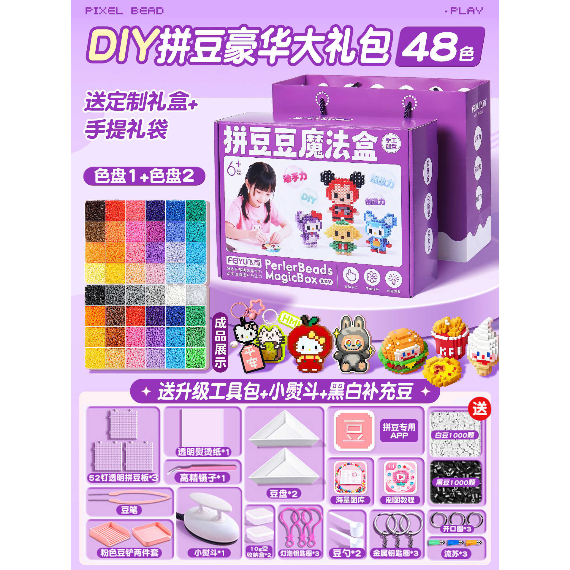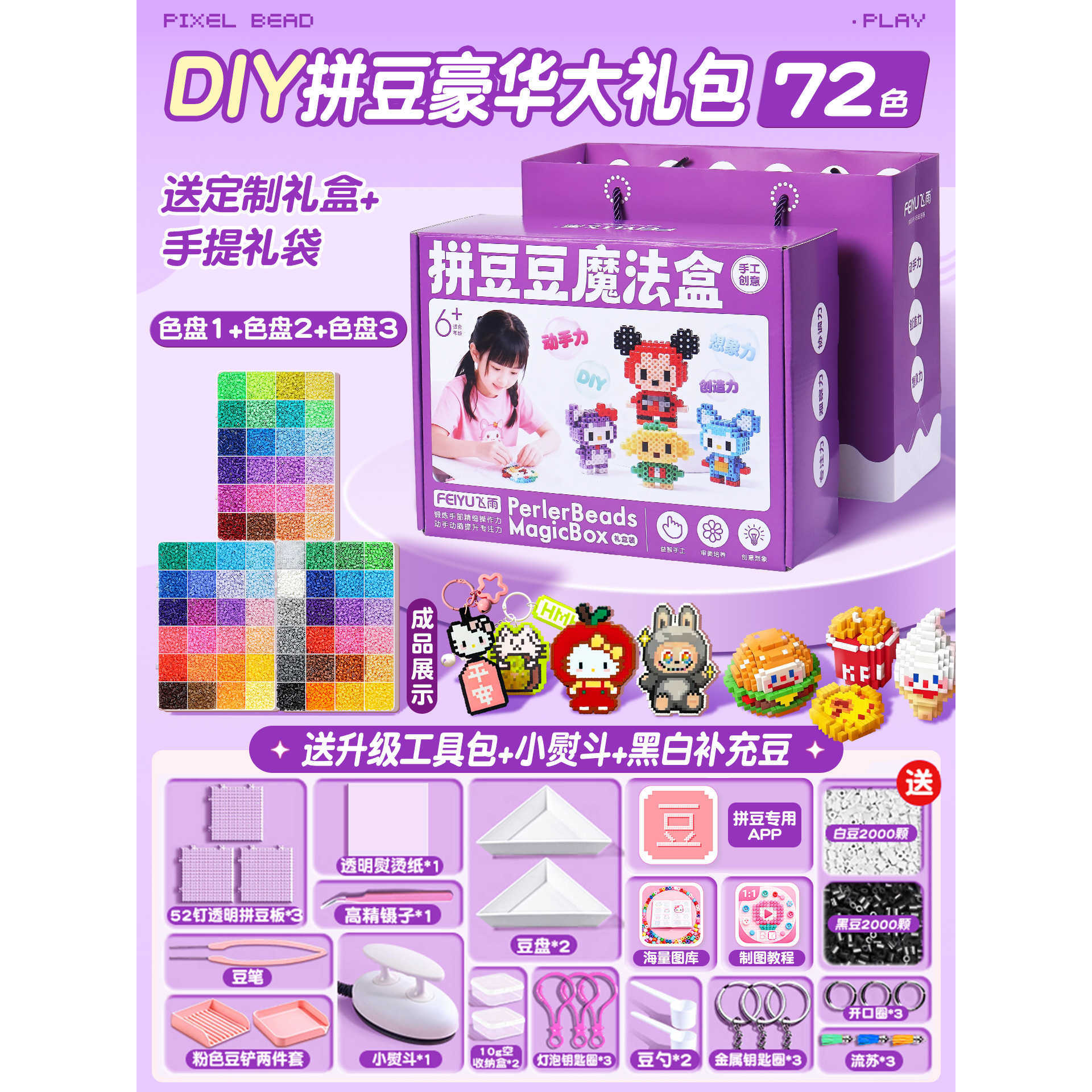 优选拼豆手工diy材料包全套立体融合MARD色号套装工具熨烫纸礼包