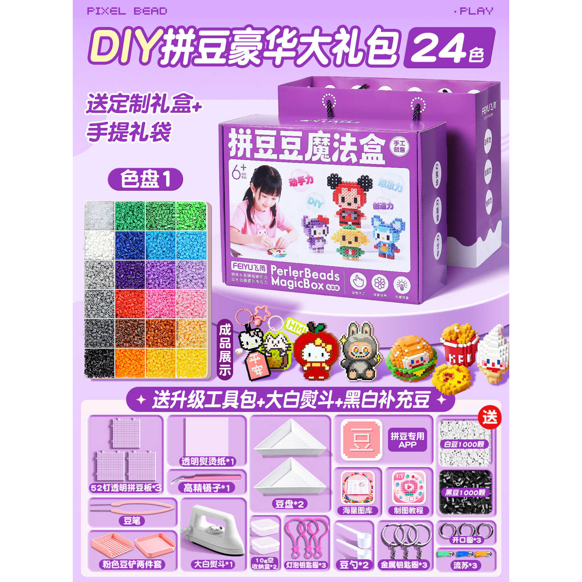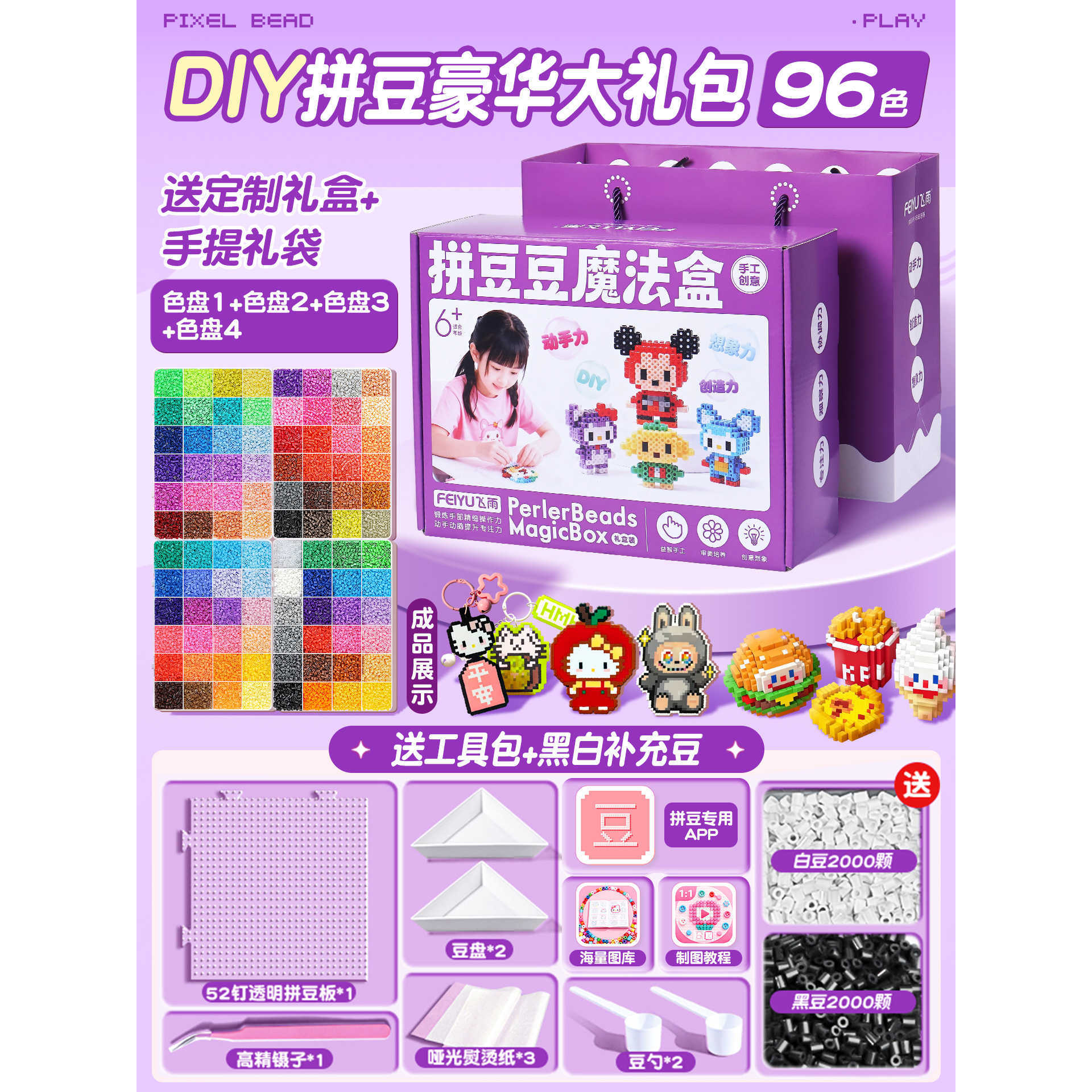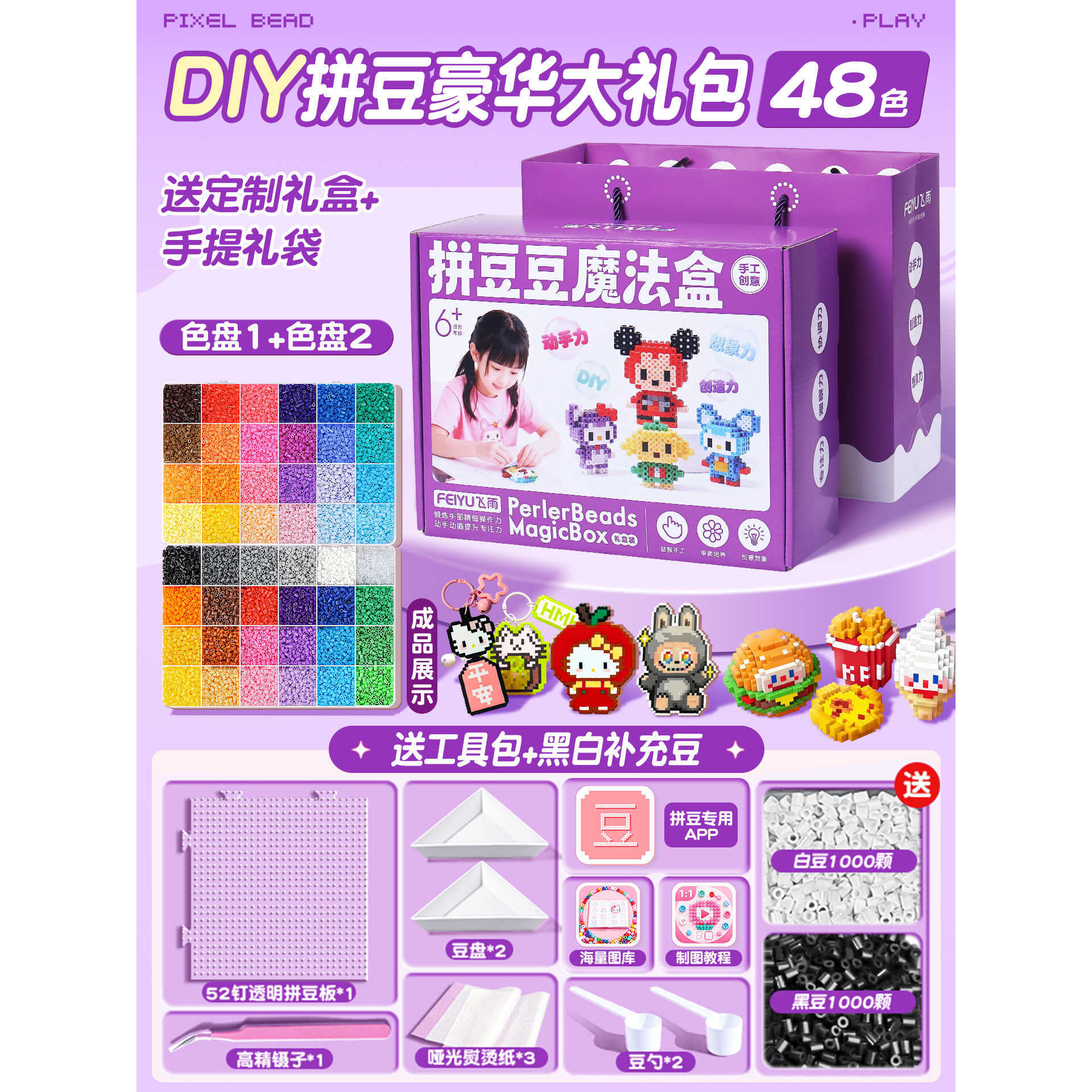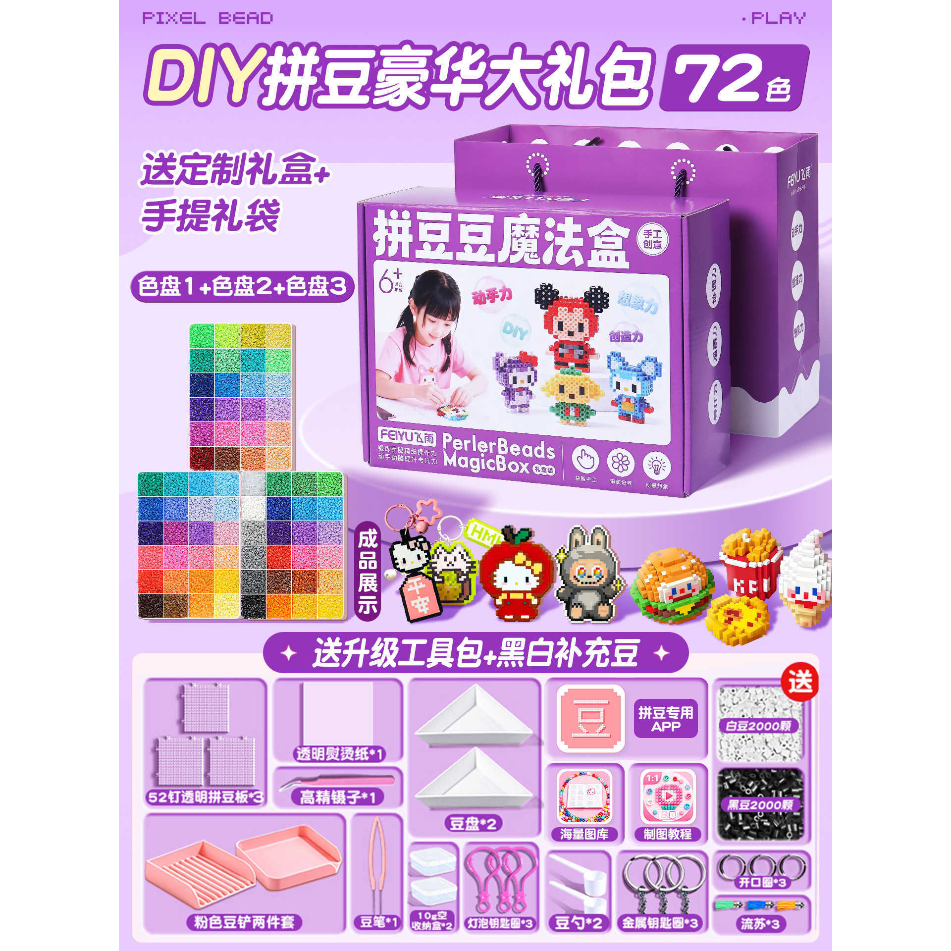 优选拼豆手工diy材料包全套立体融合MARD色号套装工具熨烫纸礼包