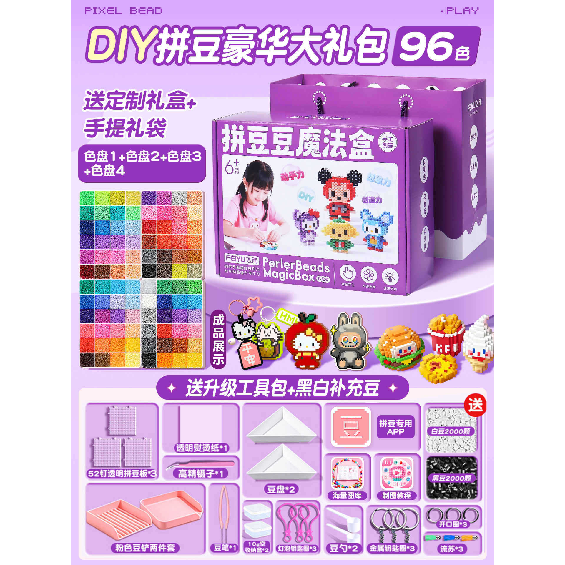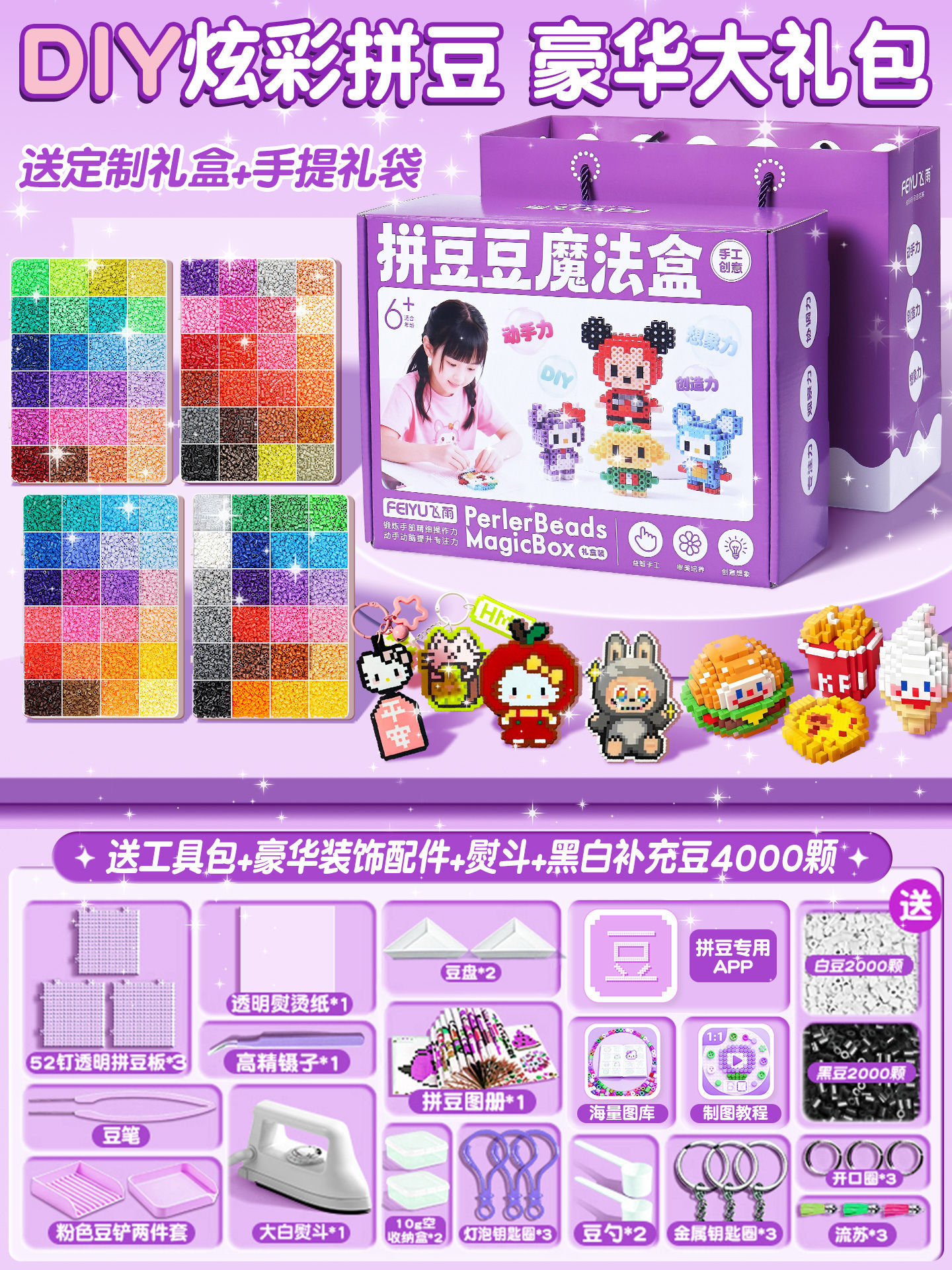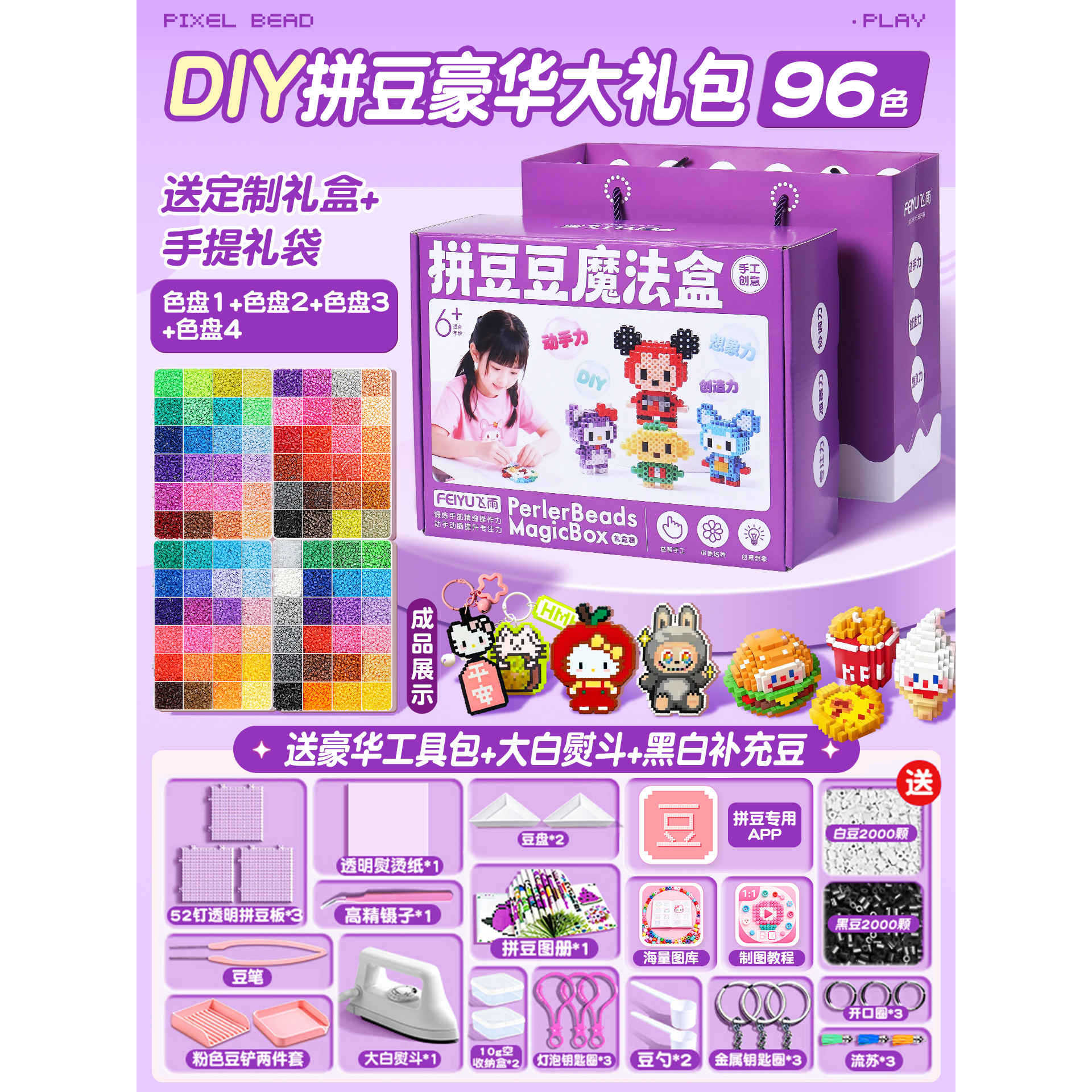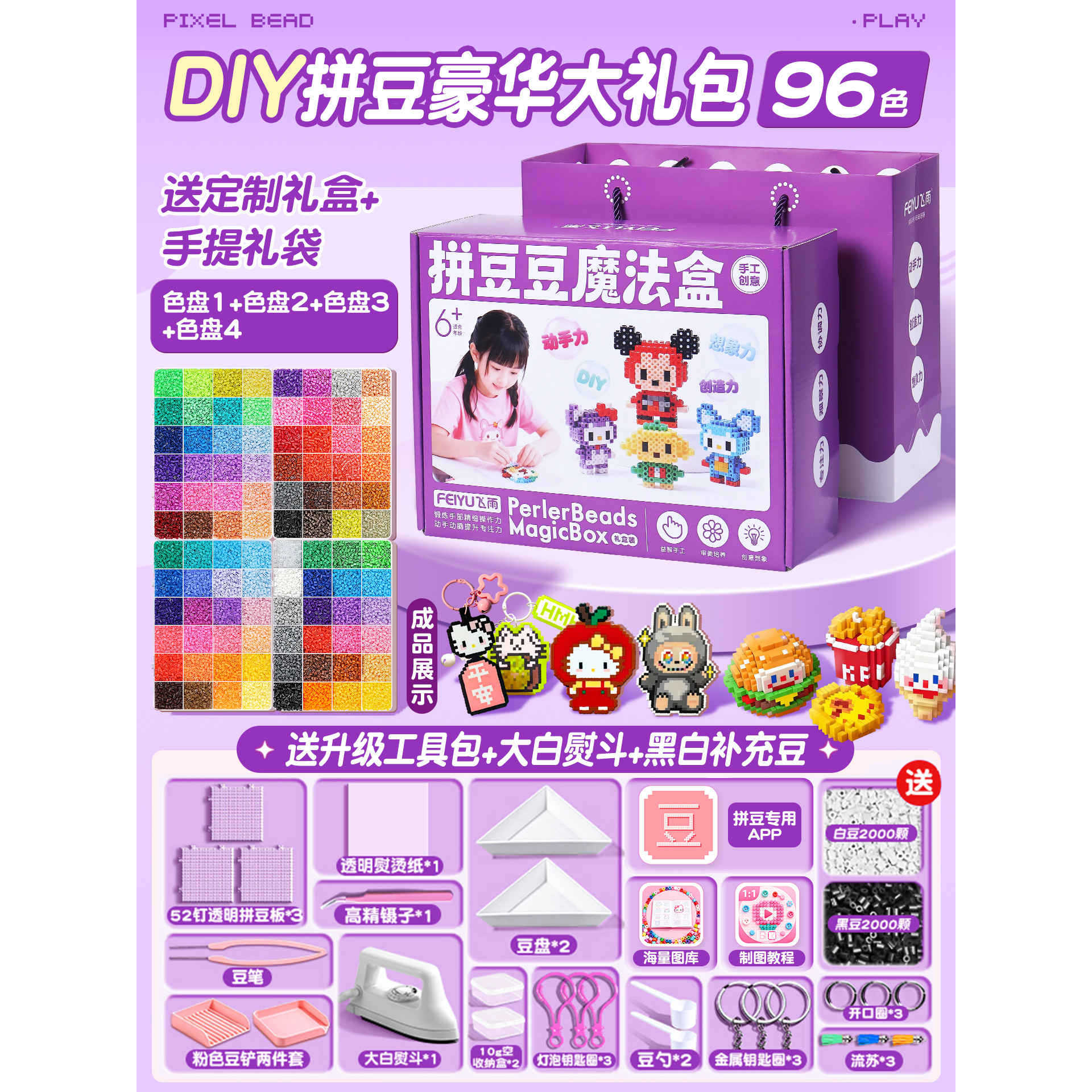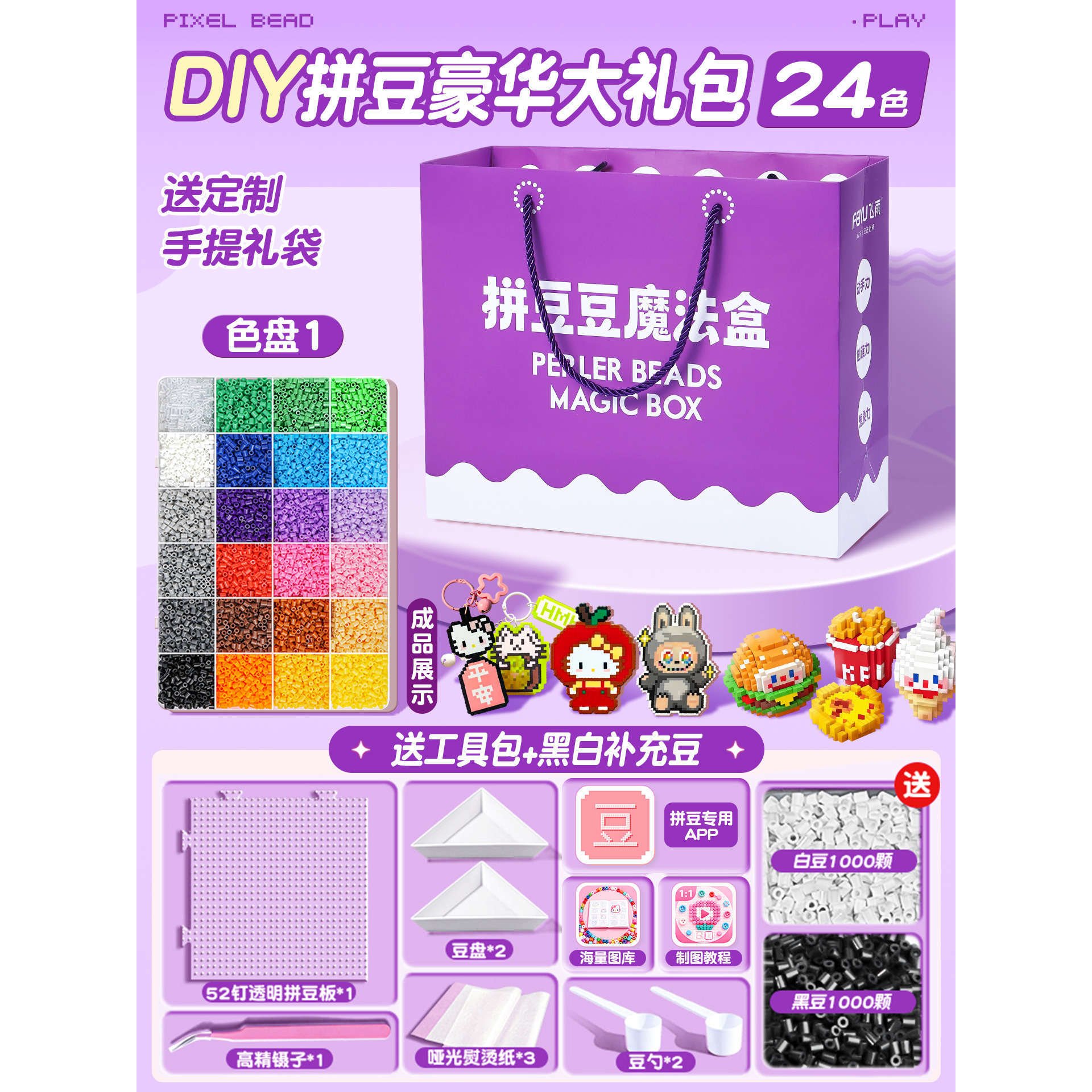 优选拼豆手工diy材料包全套立体融合MARD色号套装工具熨烫纸礼包