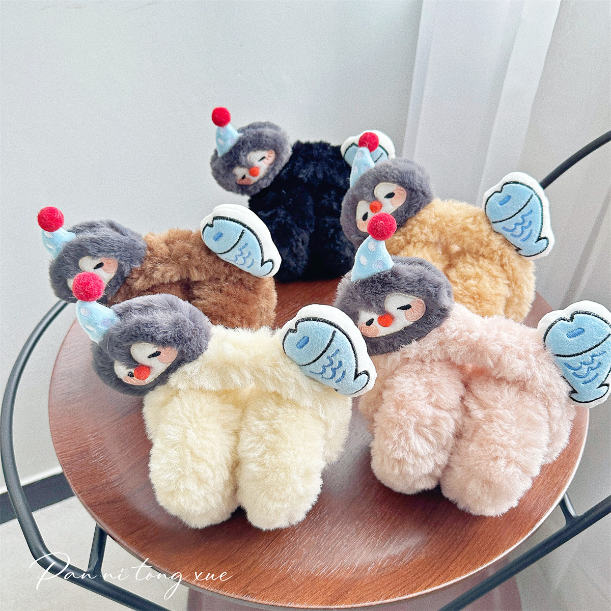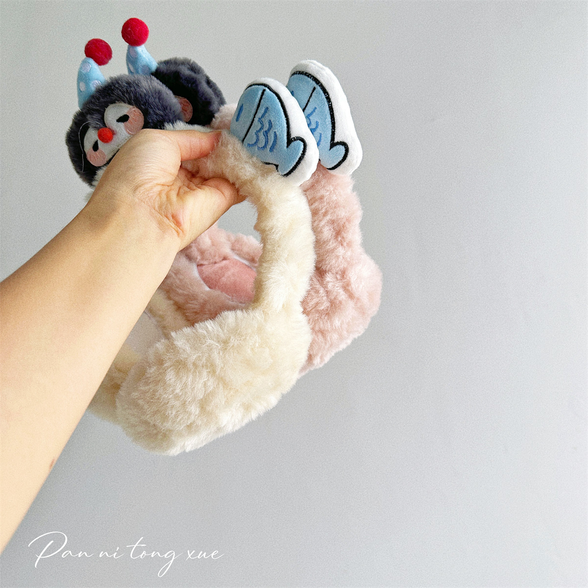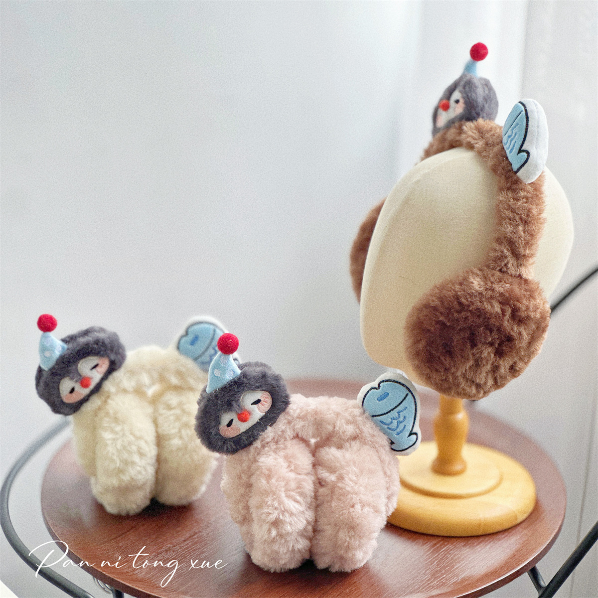 秋冬创意企鹅小鱼毛绒耳罩可爱萌趣毛绒卡通耳包少女拍照保暖搞怪