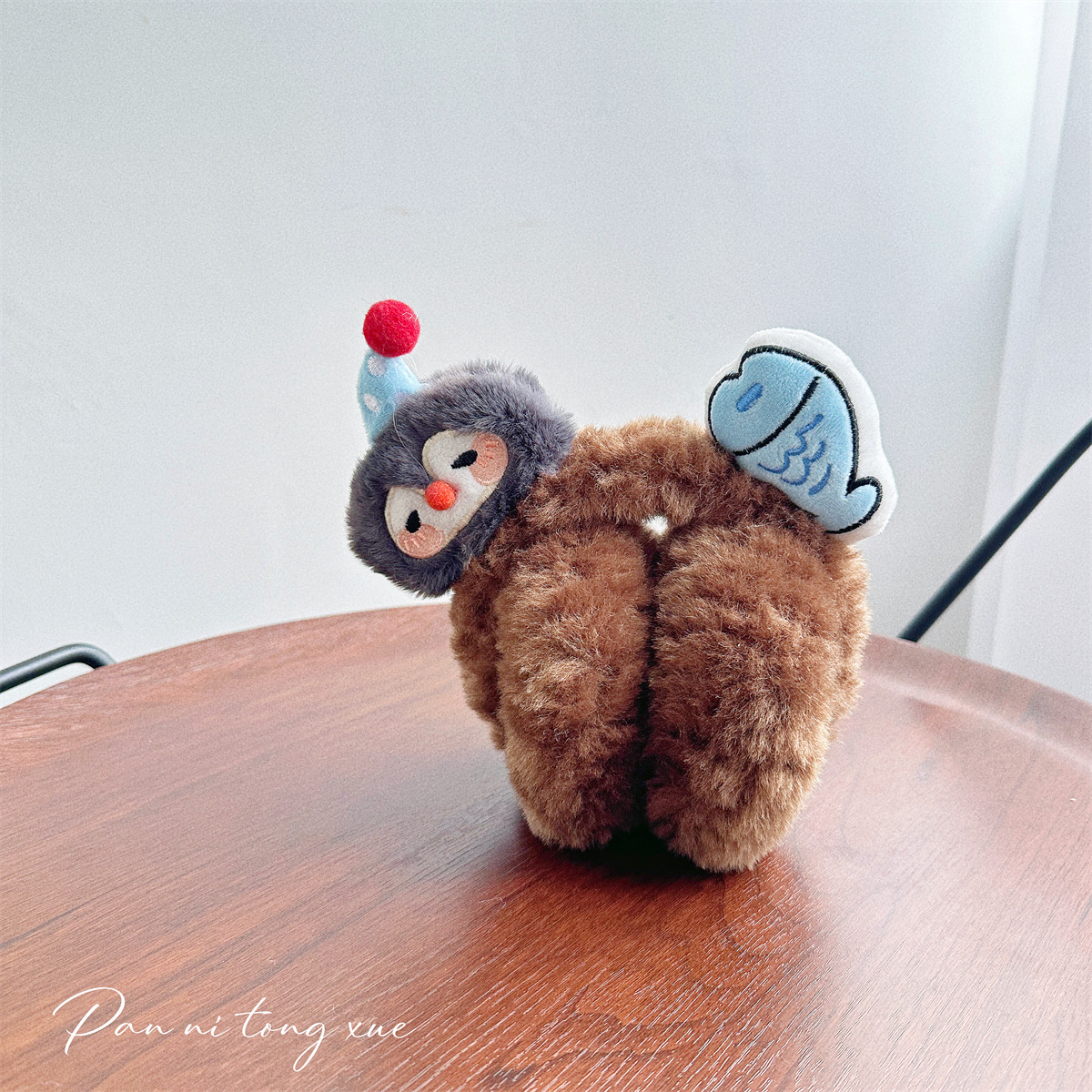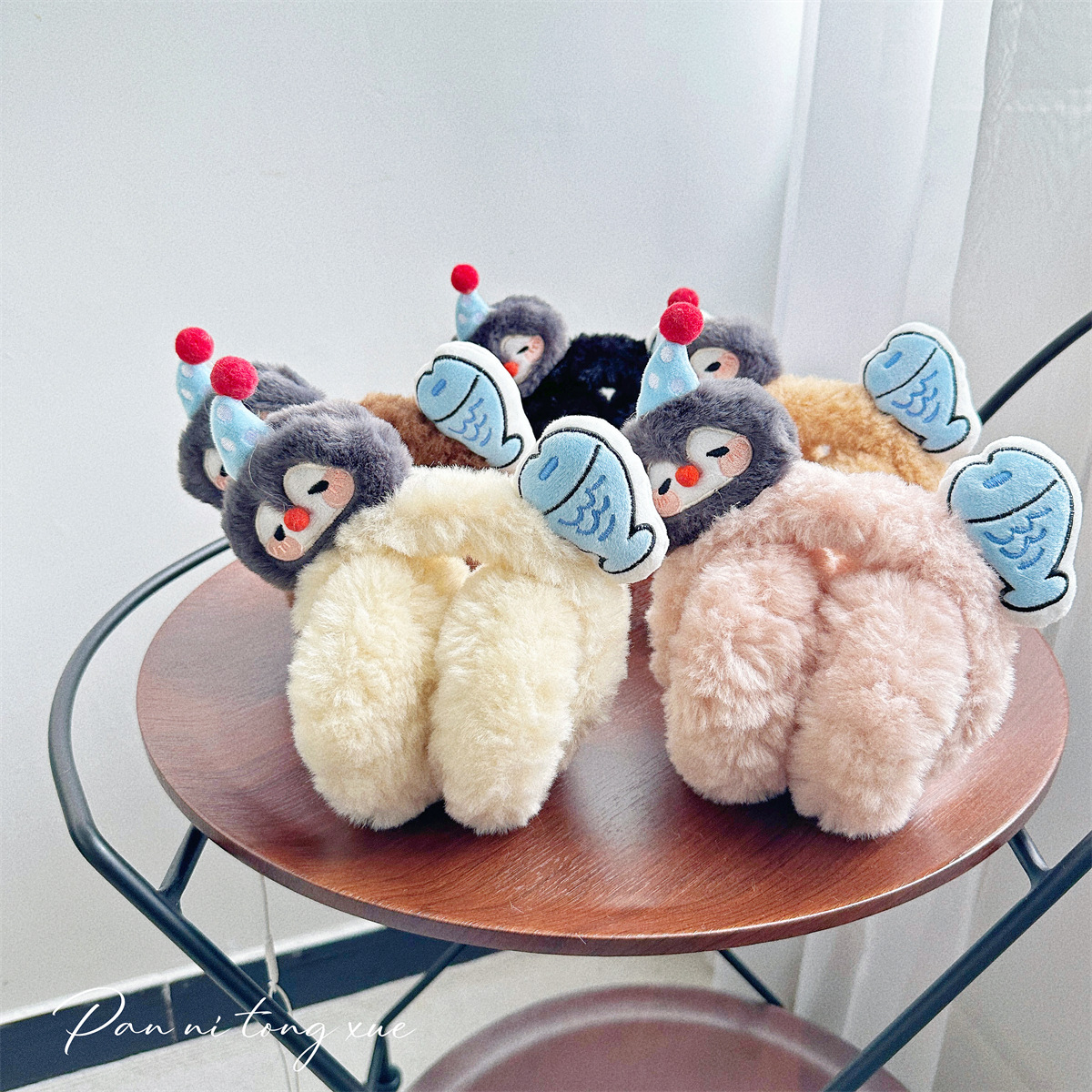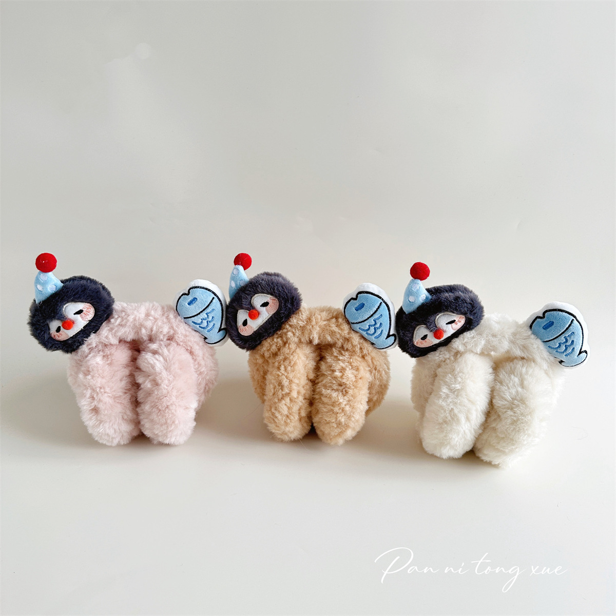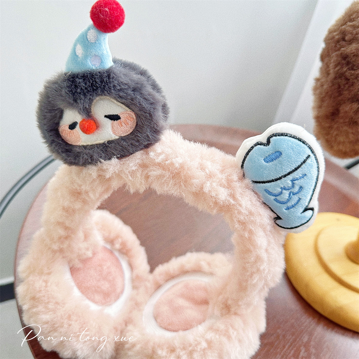 秋冬创意企鹅小鱼毛绒耳罩可爱萌趣毛绒卡通耳包少女拍照保暖搞怪