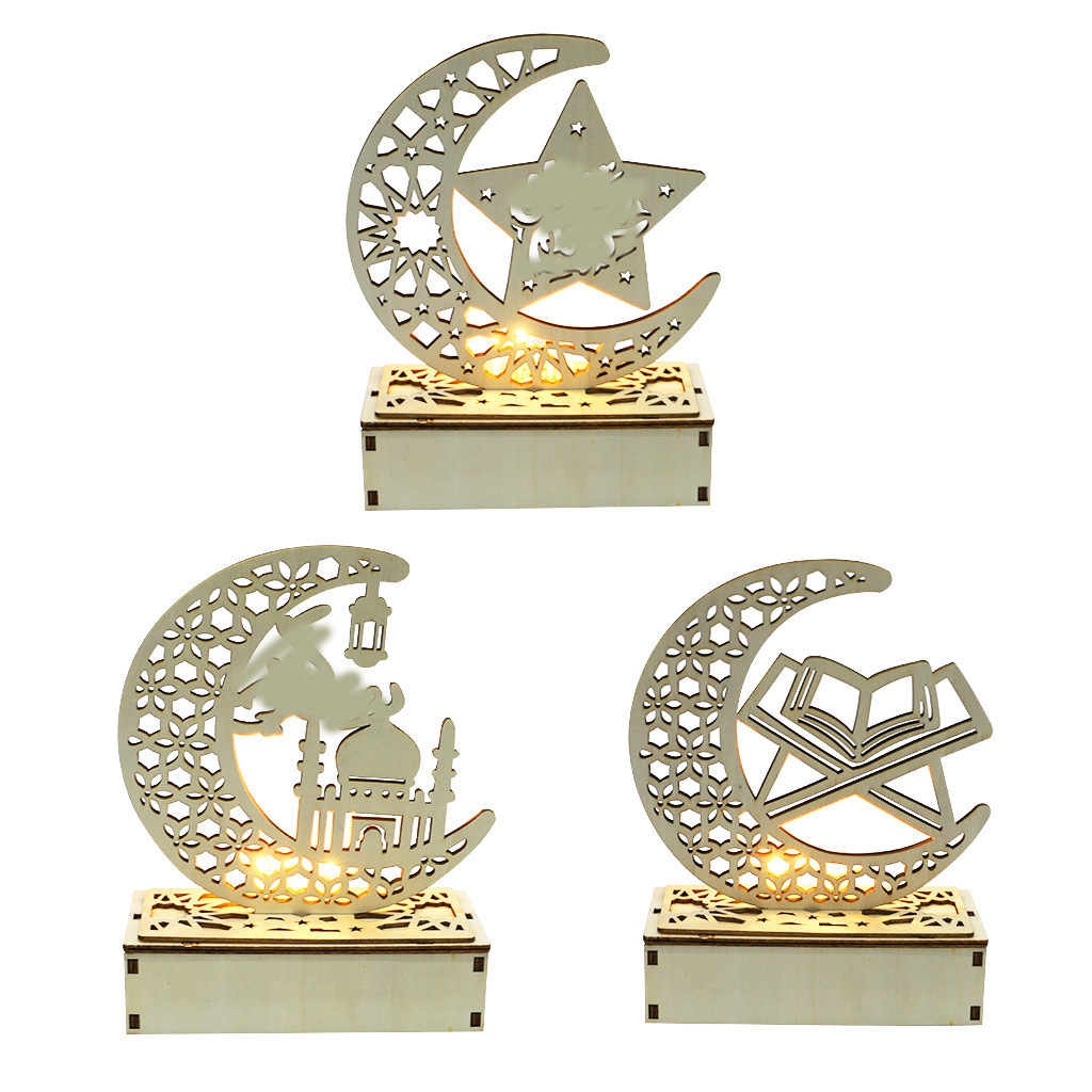 木质中东阿拉伯节日月亮LED灯桌面摆件 家居城堡装饰品工艺品摆台