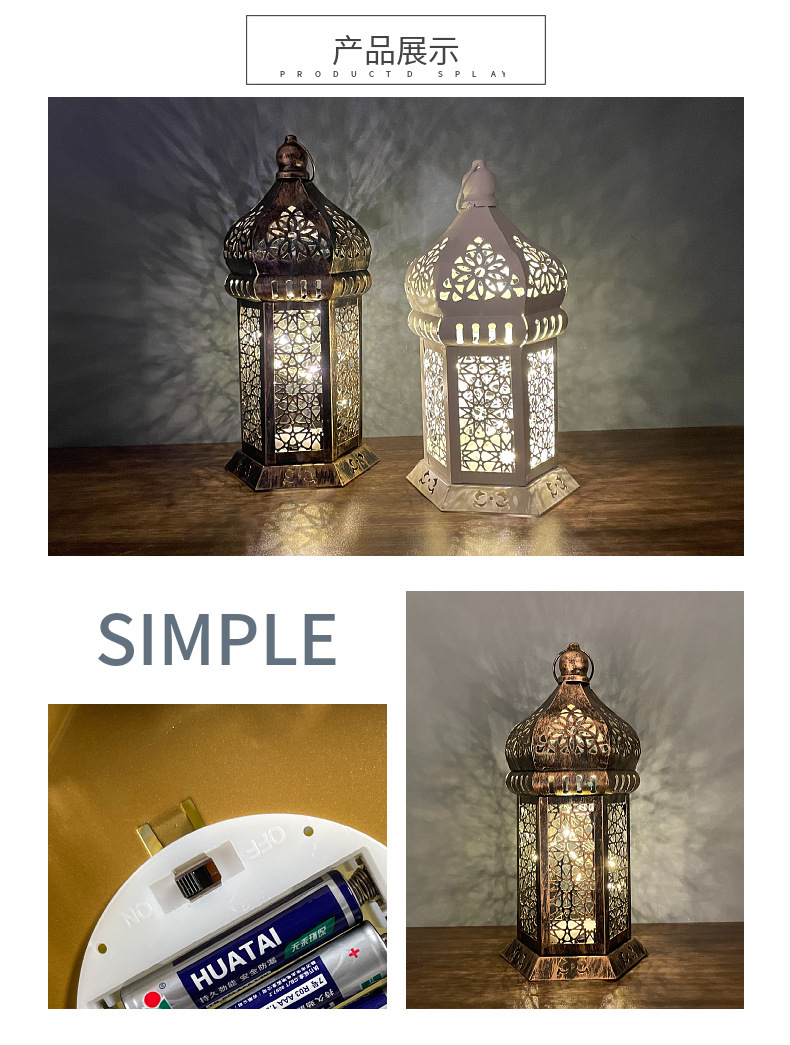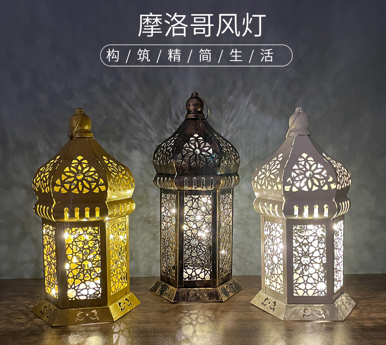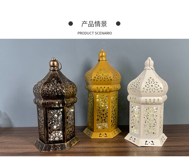 摩洛哥跨境落地烛台铁艺摩洛哥风灯马灯镂空玻璃灯笼复古摆件道具