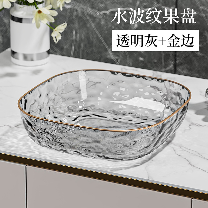 水果盘家用塑料透明果盘高档轻奢水波纹客厅茶几零食收纳盘干果盘