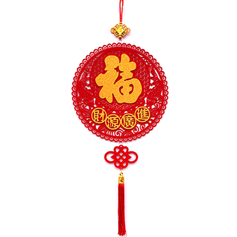 2026立体福字挂件客厅墙壁无纺布毛毡门贴装饰创意扇形挂饰中国结