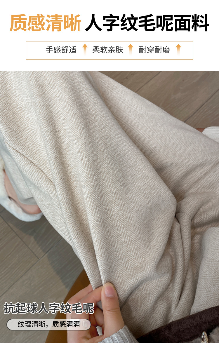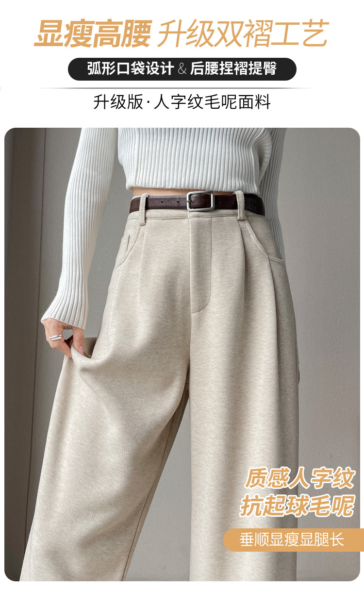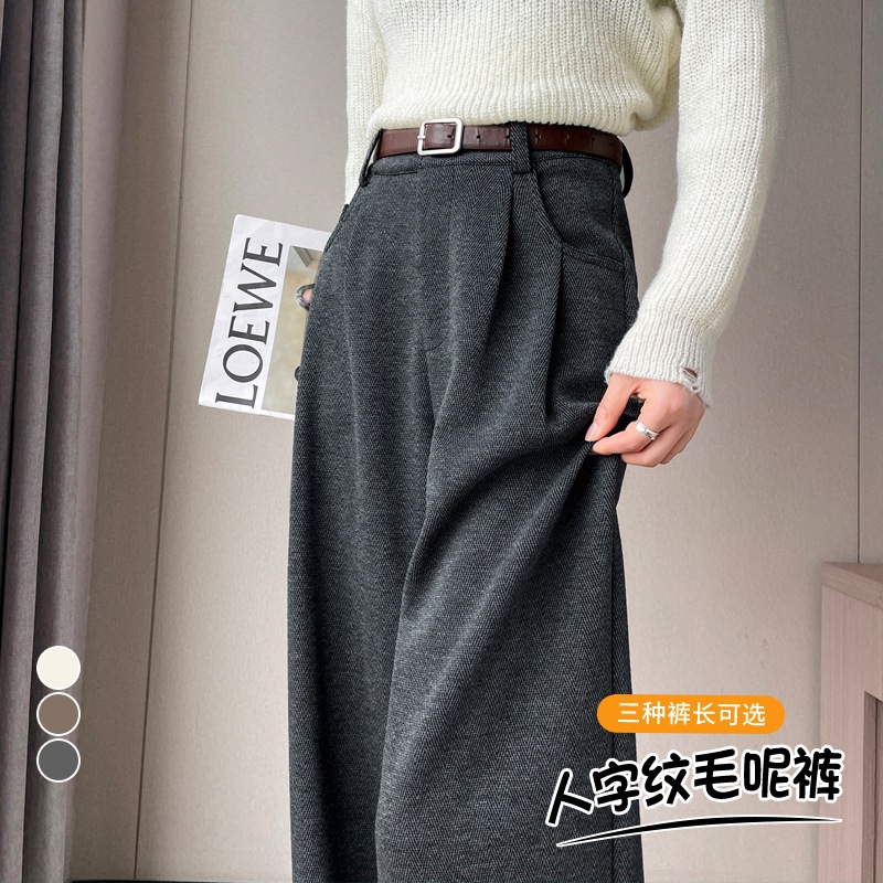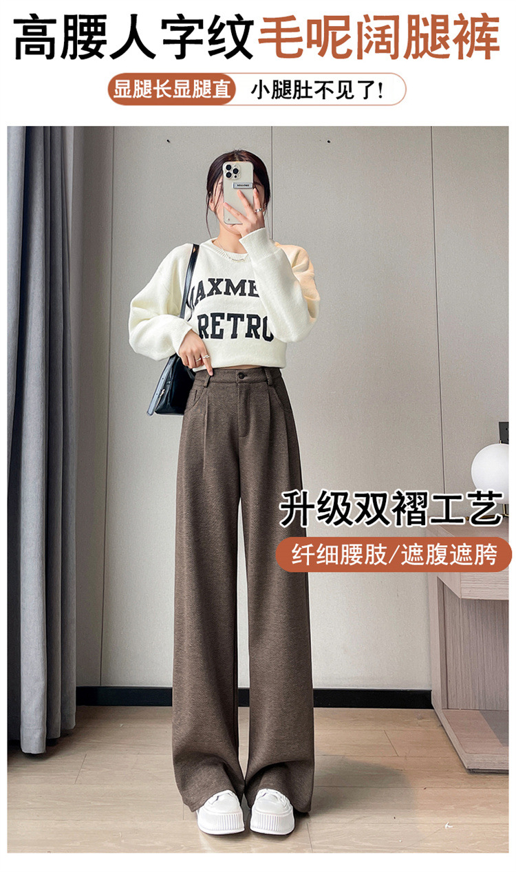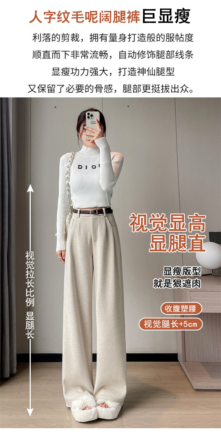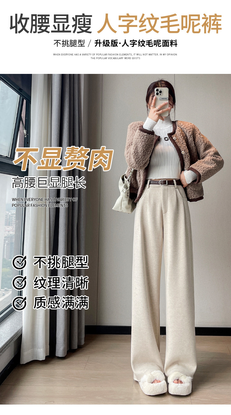 深灰色加绒毛呢直筒裤女2025秋冬人字纹高级感窄版直筒阔腿裤7705
