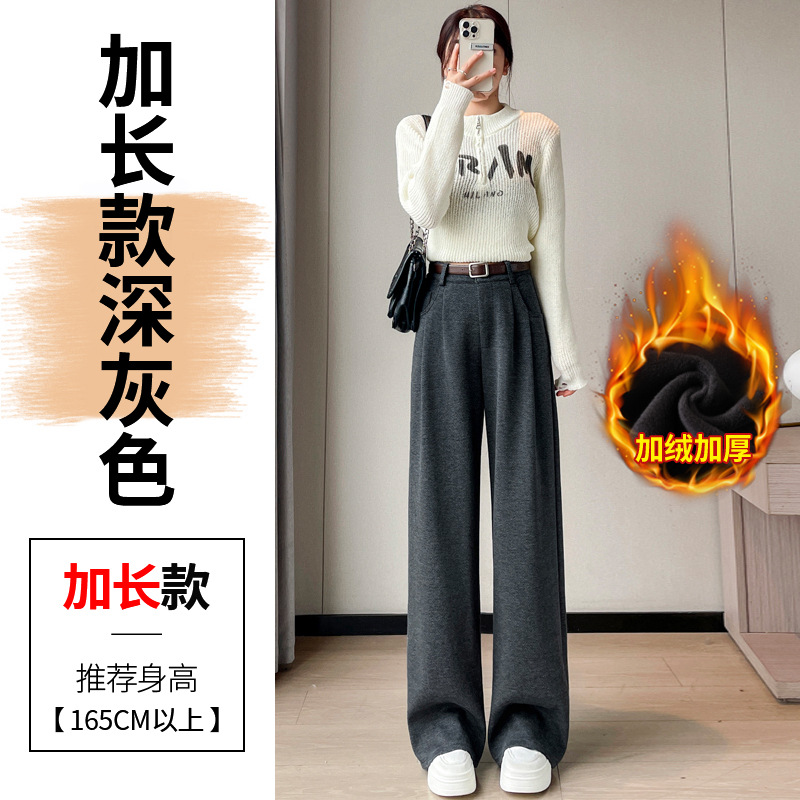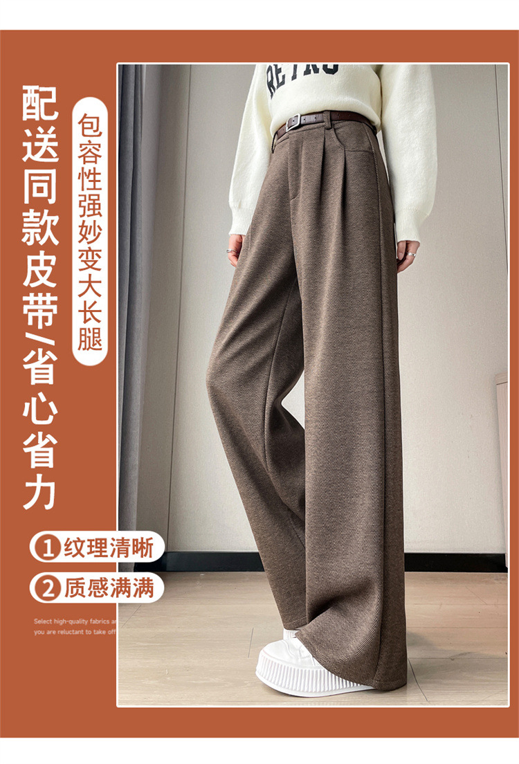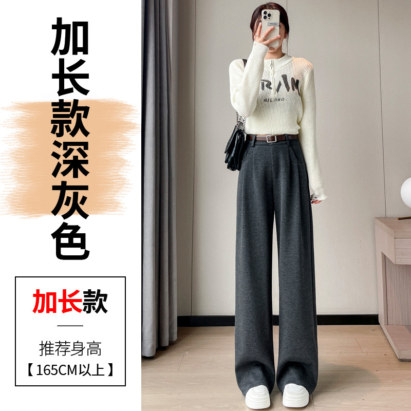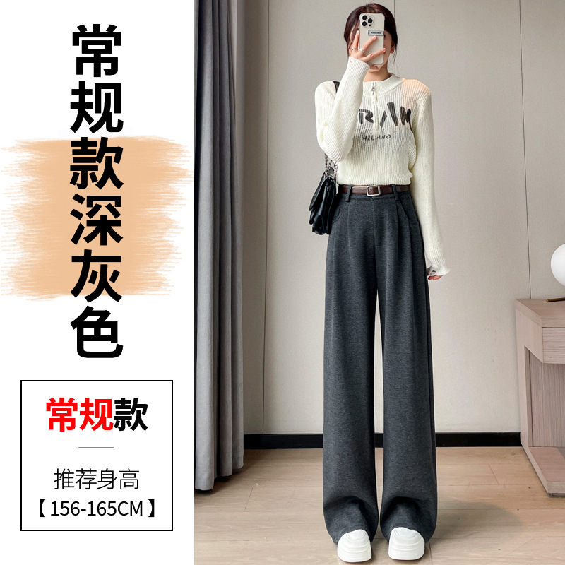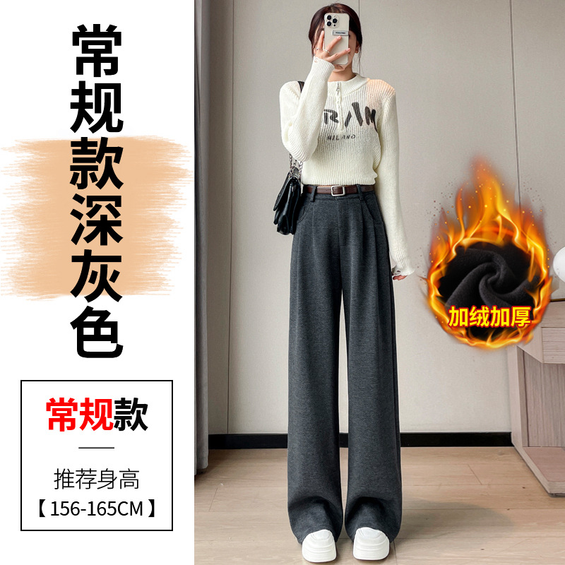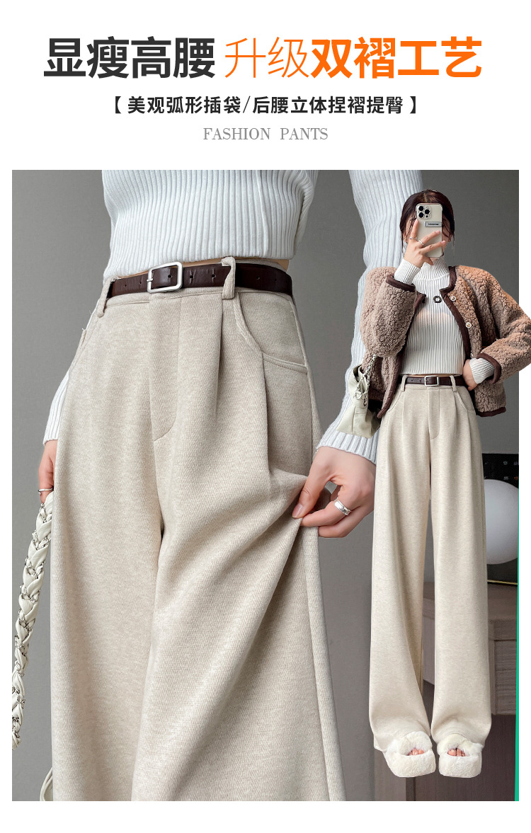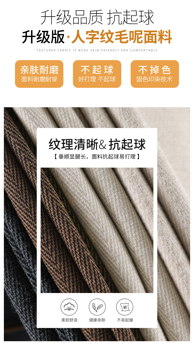 深灰色加绒毛呢直筒裤女2025秋冬人字纹高级感窄版直筒阔腿裤7705