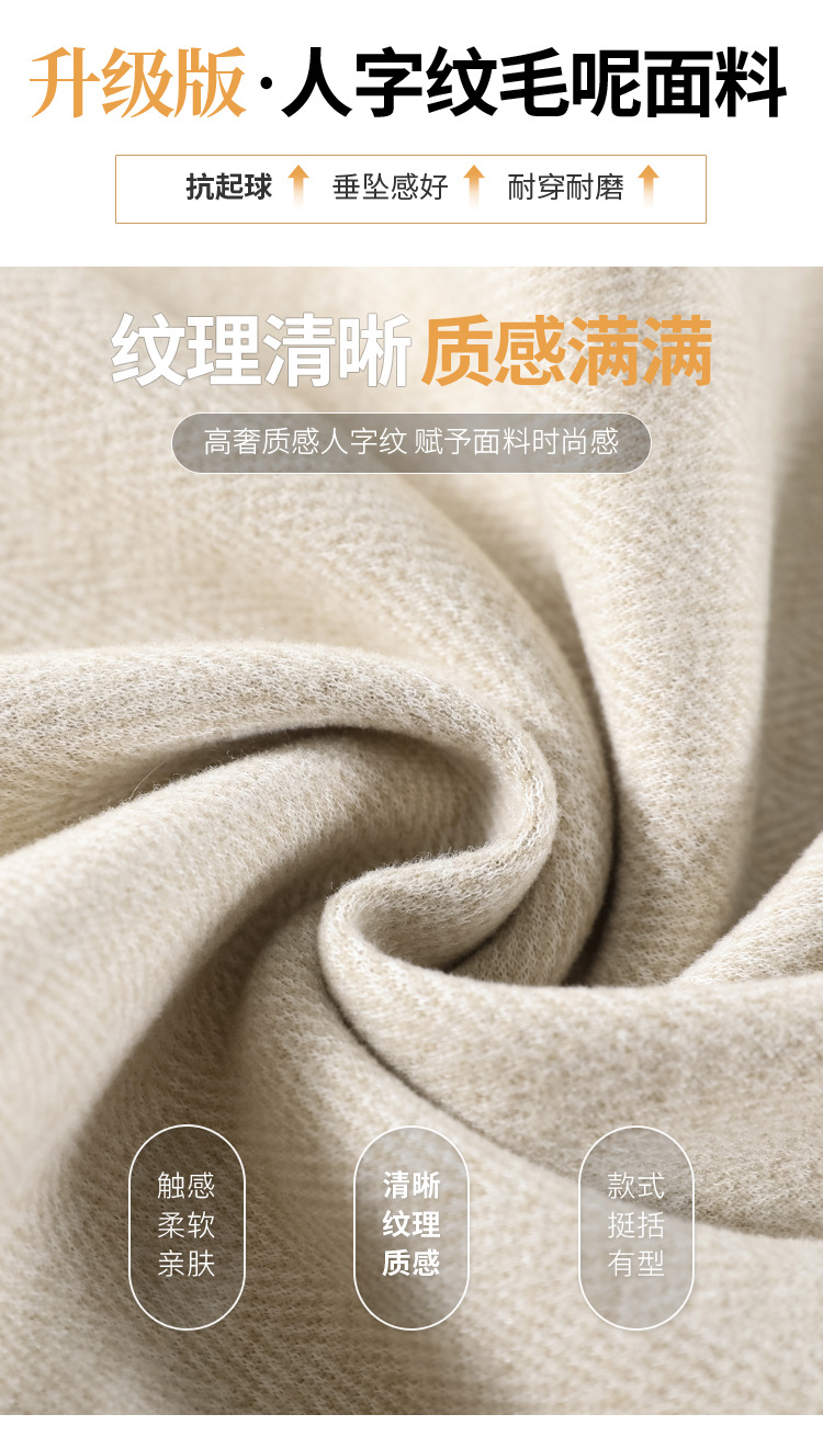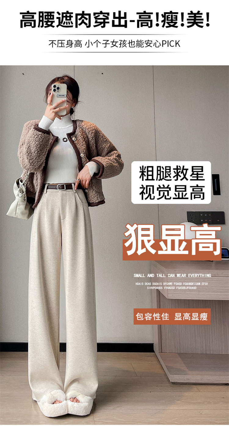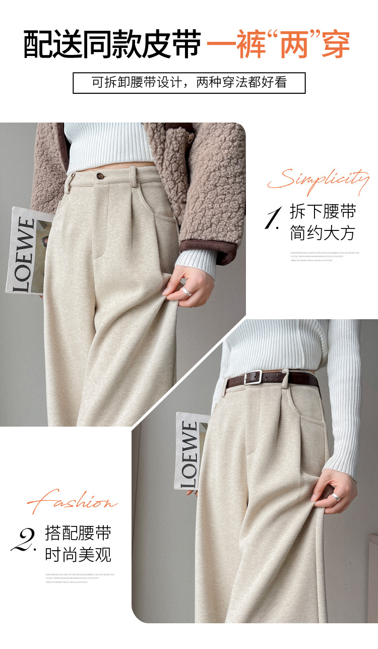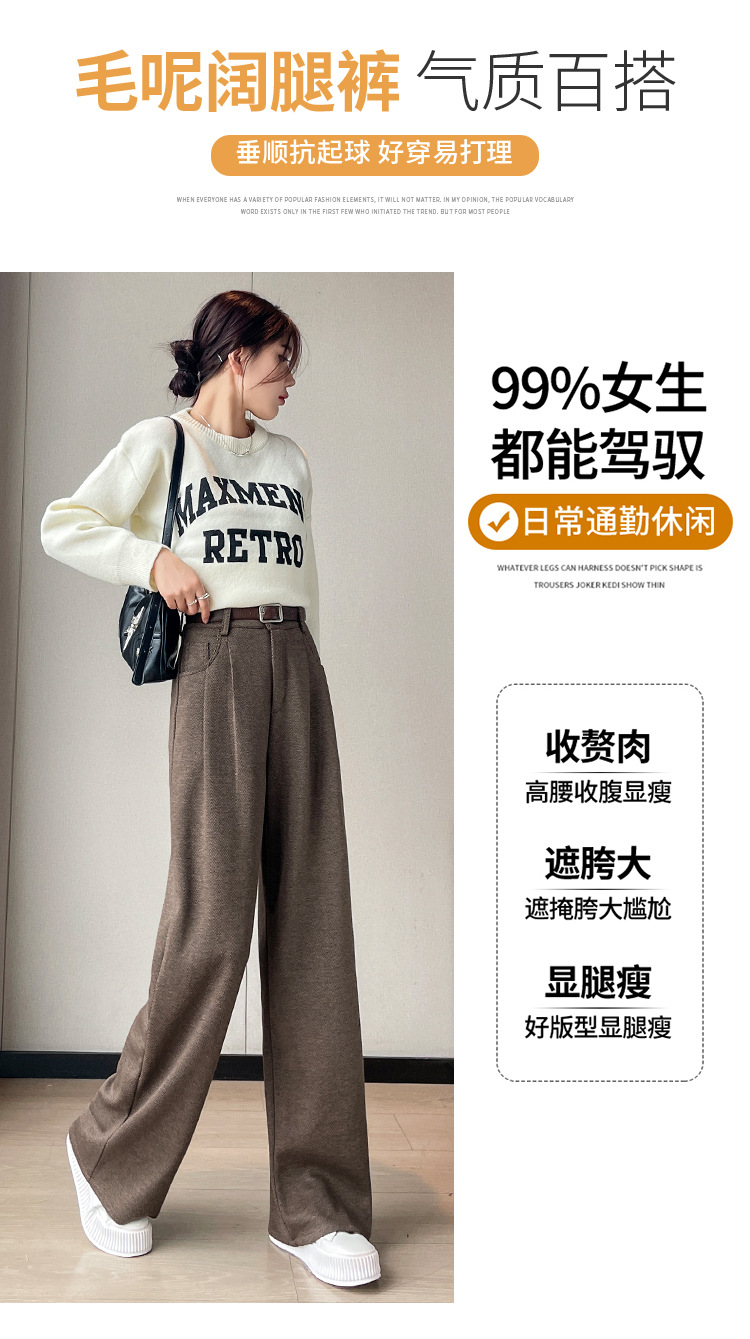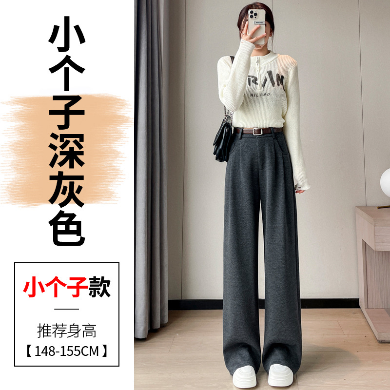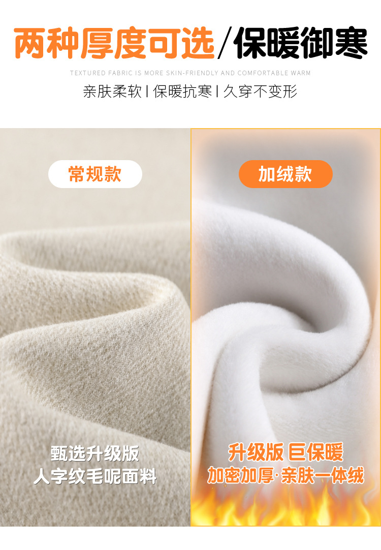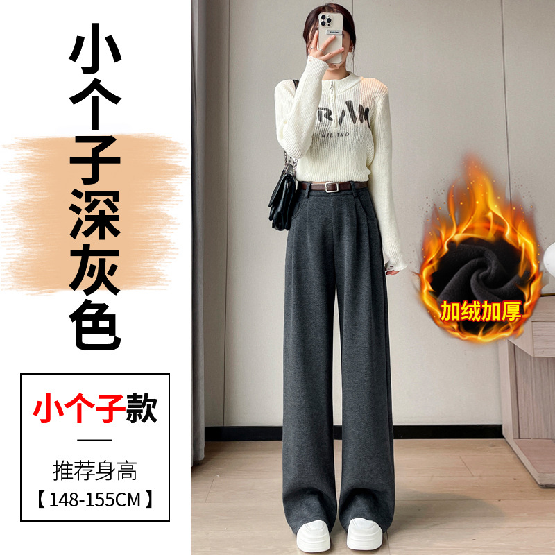深灰色加绒毛呢直筒裤女2025秋冬人字纹高级感窄版直筒阔腿裤7705