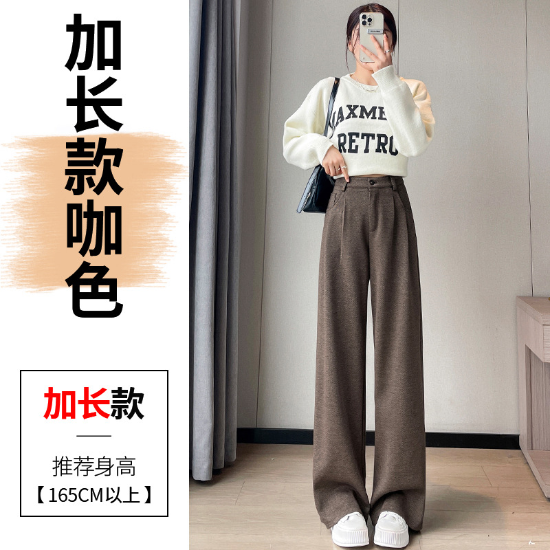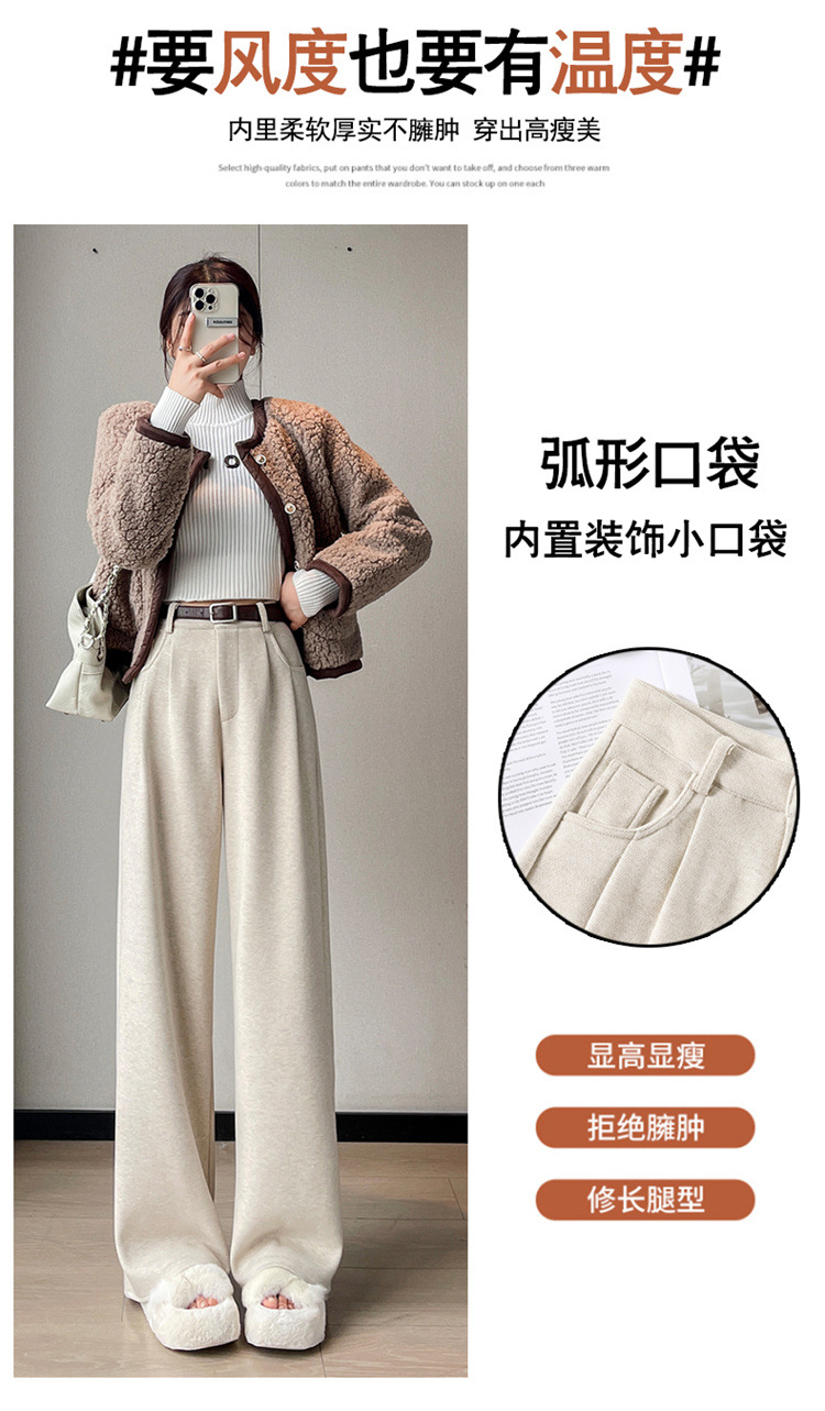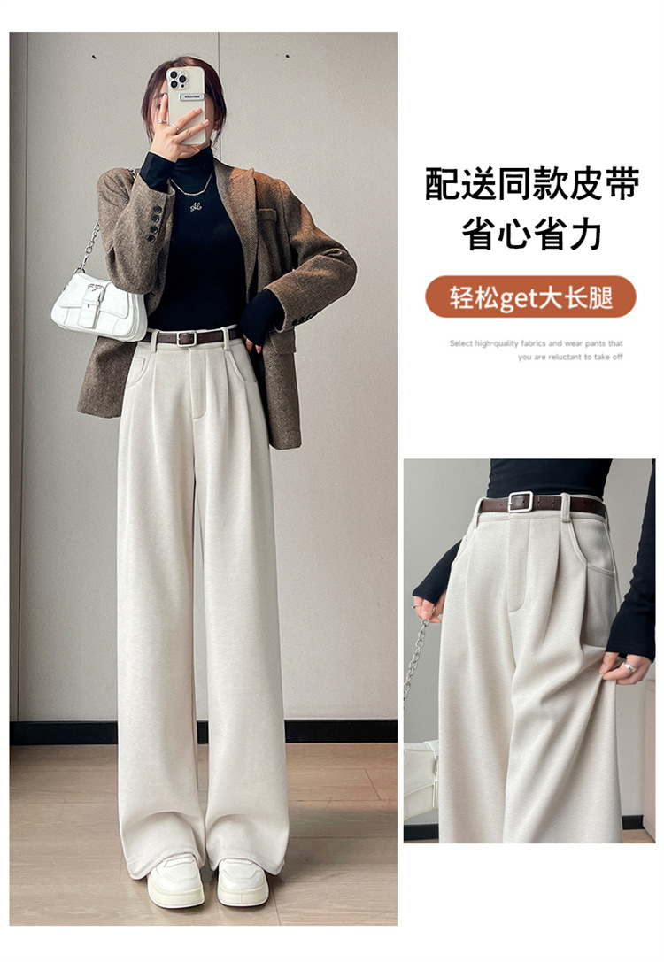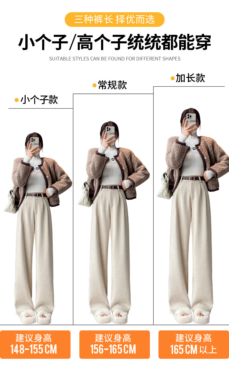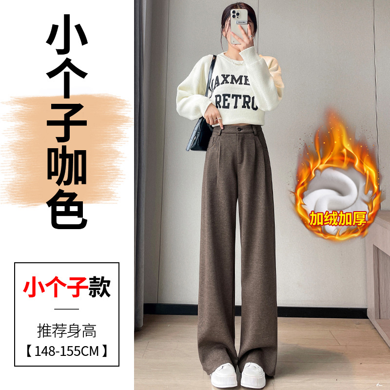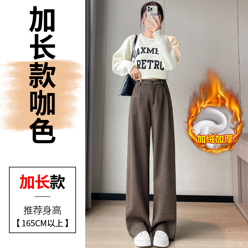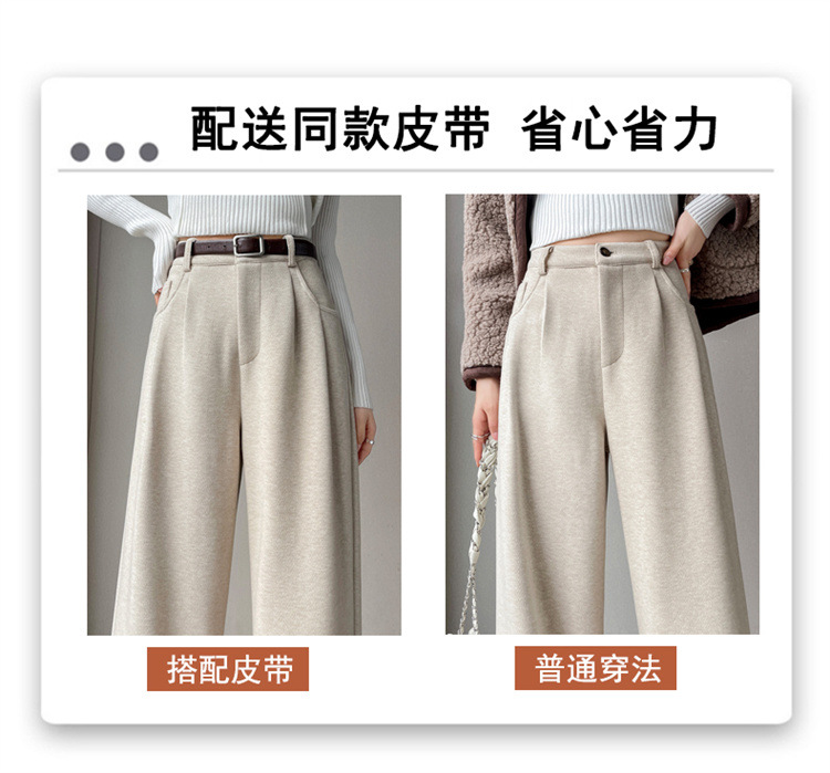 深灰色加绒毛呢直筒裤女2025秋冬人字纹高级感窄版直筒阔腿裤7705