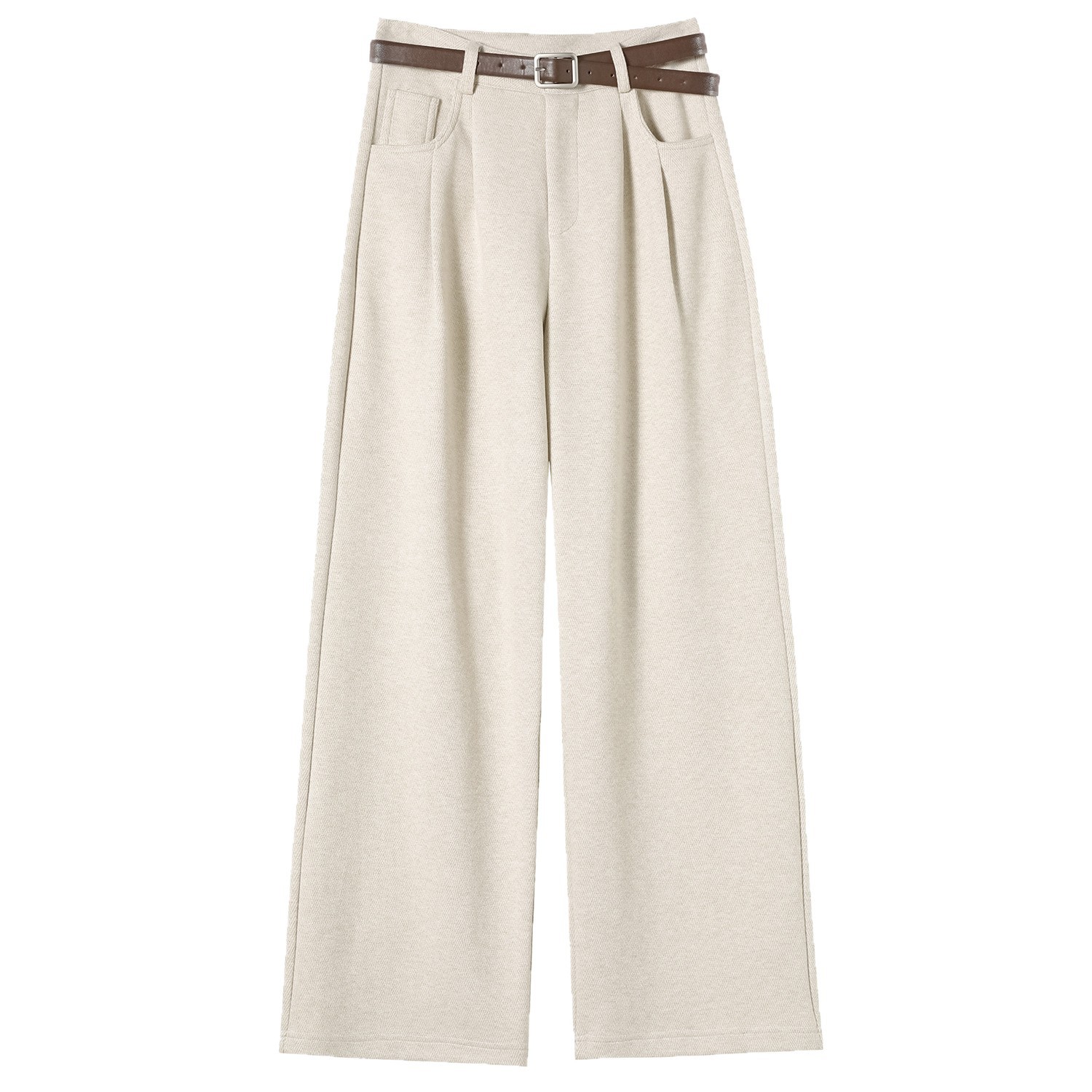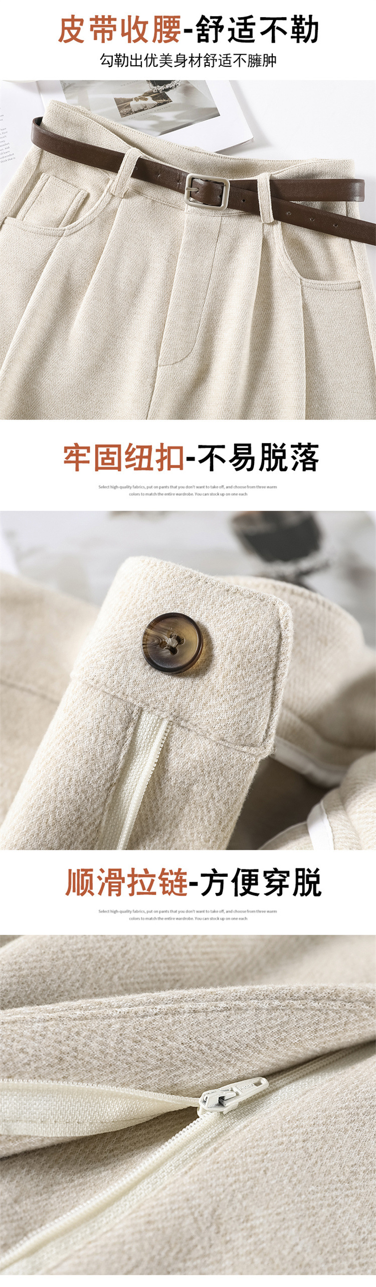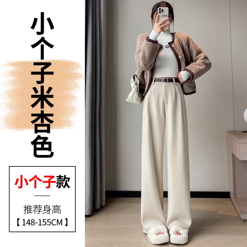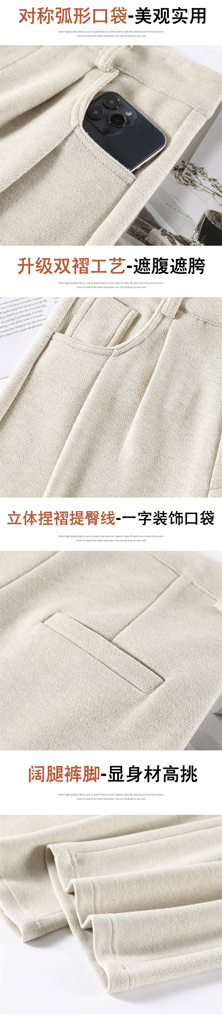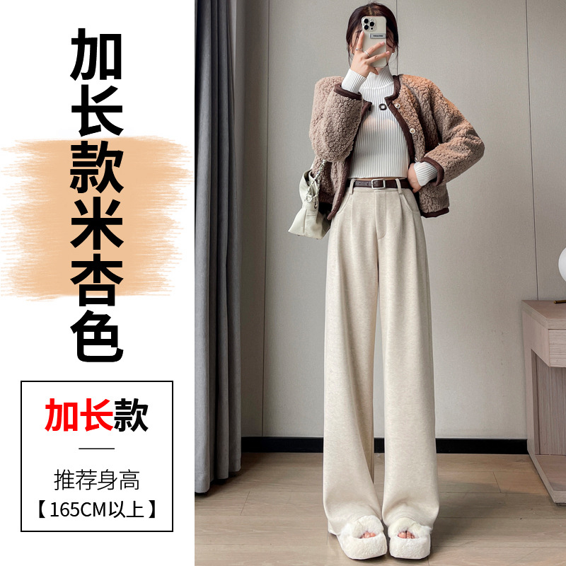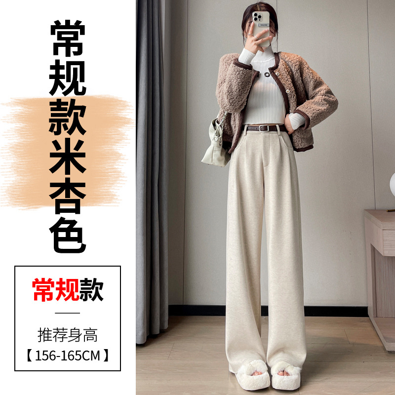 深灰色加绒毛呢直筒裤女2025秋冬人字纹高级感窄版直筒阔腿裤7705