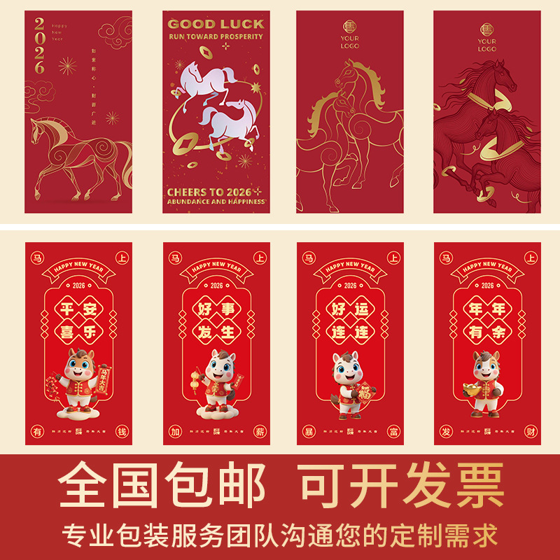 马年红包袋定制2026新年彩色印刷利是封订做烫金印广告logo二维码