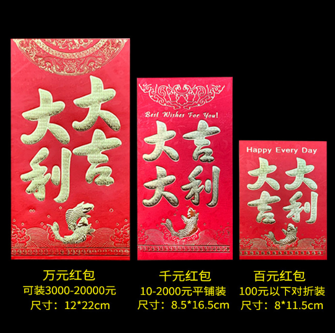 大吉大利红包利是封厂家销售硬纸烫金永吉百元千元万元红包袋批发