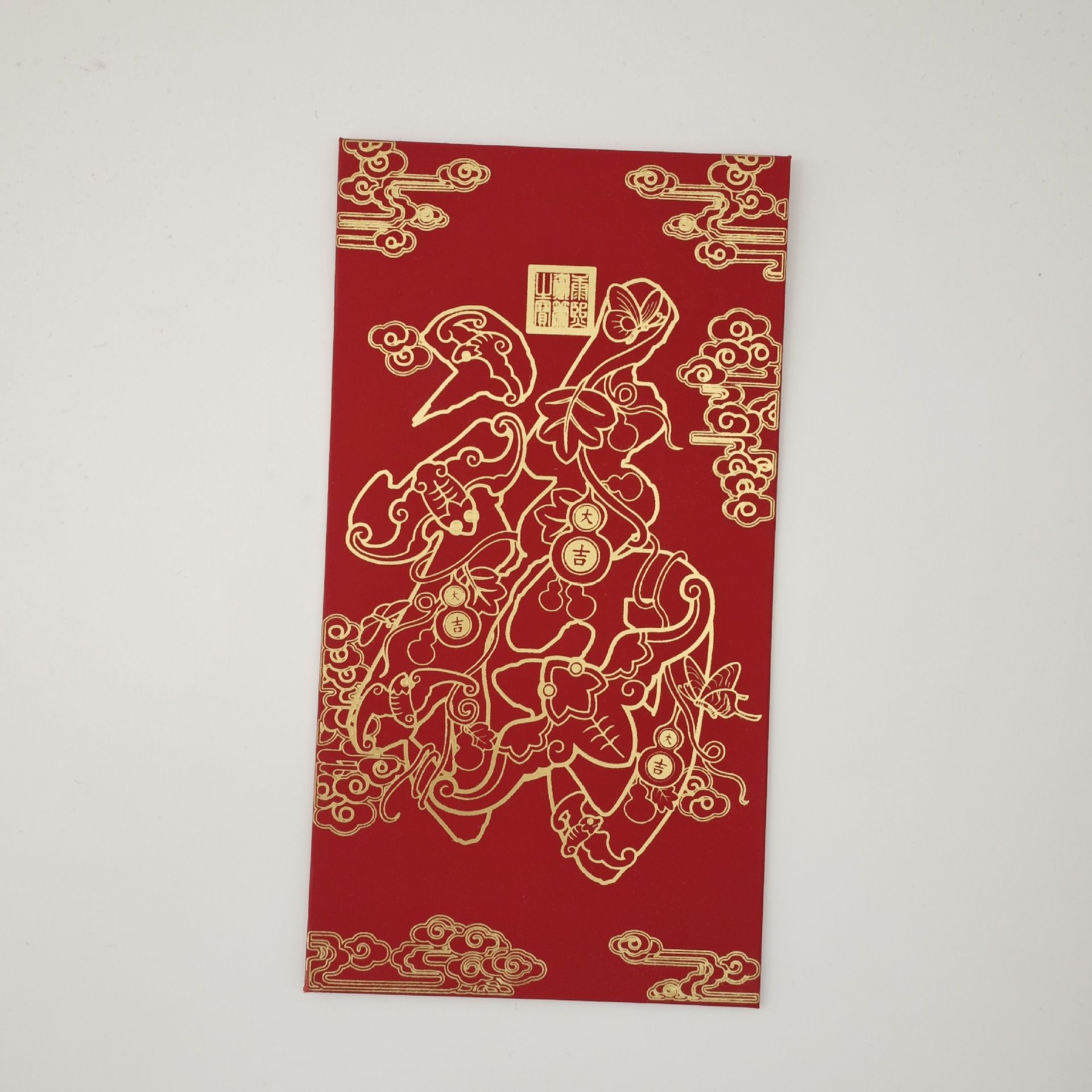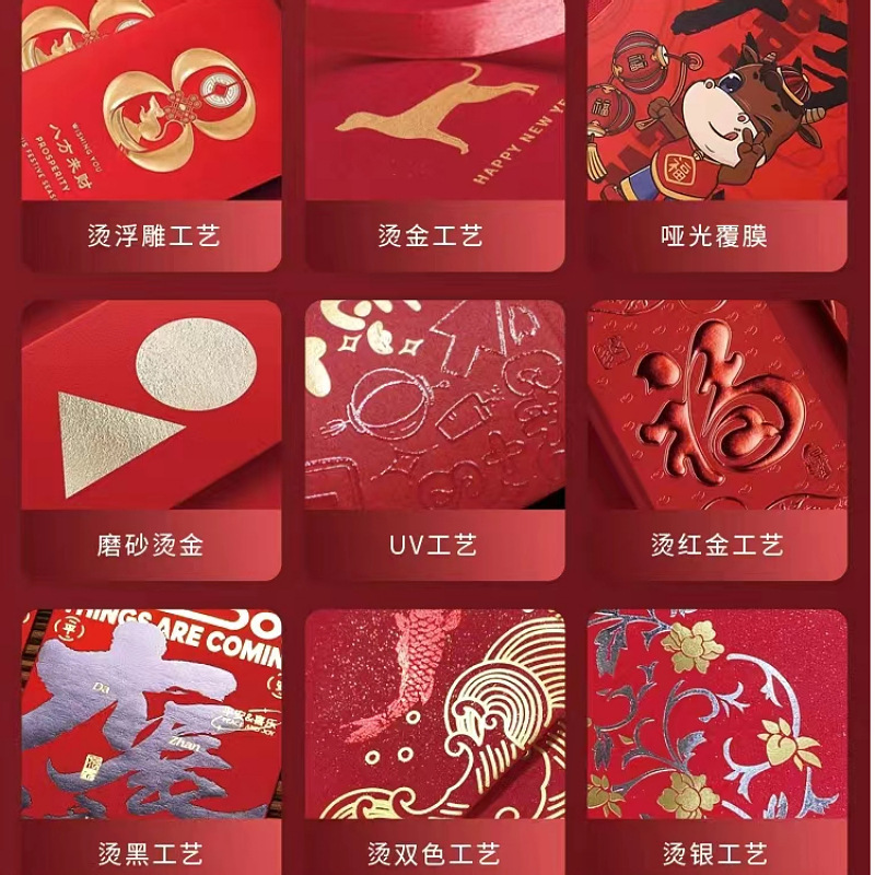 红色特种纸烫金烫银LOGO红包定制 2026马年春节中式新年利是封