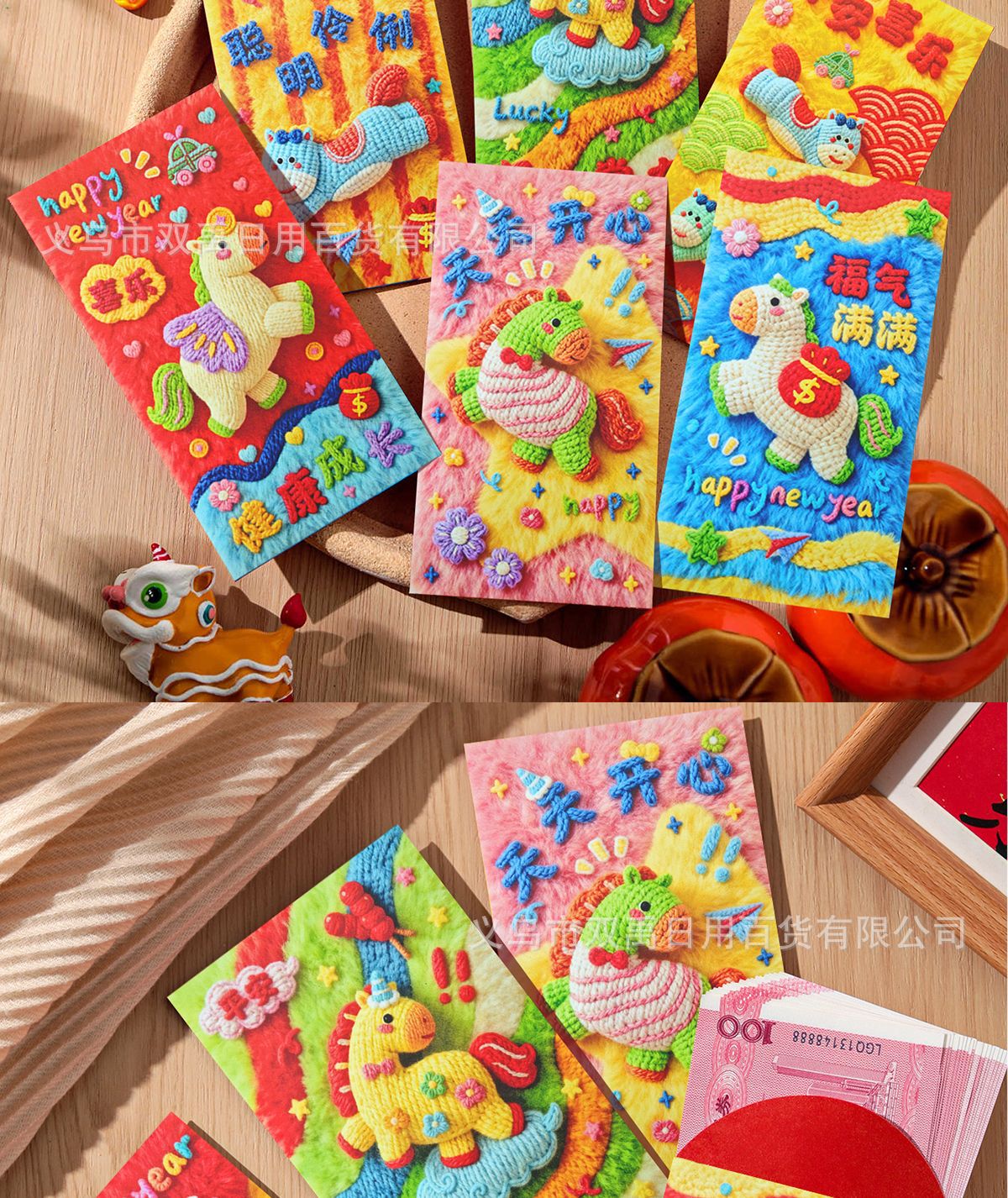 2026年新年爆款红包5D立体毛绒刺绣工艺个性马年生肖春节压岁红包