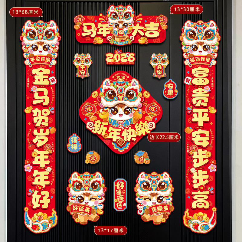2026新款马年磁吸对联春联批货入户福字门贴春节过年布置新年装饰