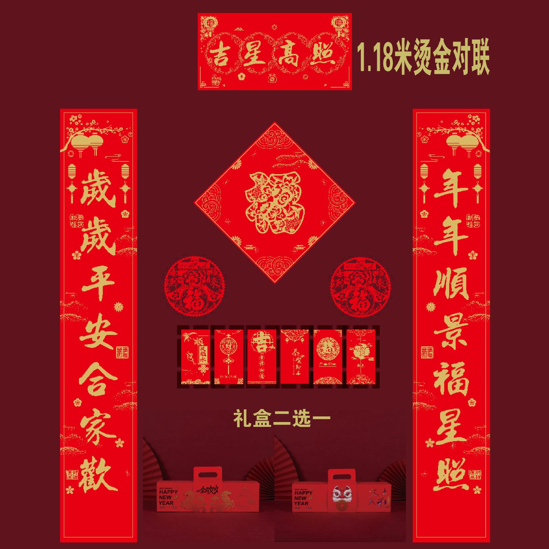 2026植绒对联定制春联定做丝绸对联大礼包红包礼盒套装批发印logo