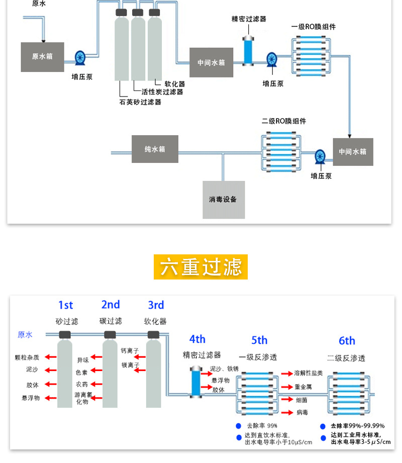RO纯水业过虑设备 软化水处理器 商用反渗透设备超滤纯水机