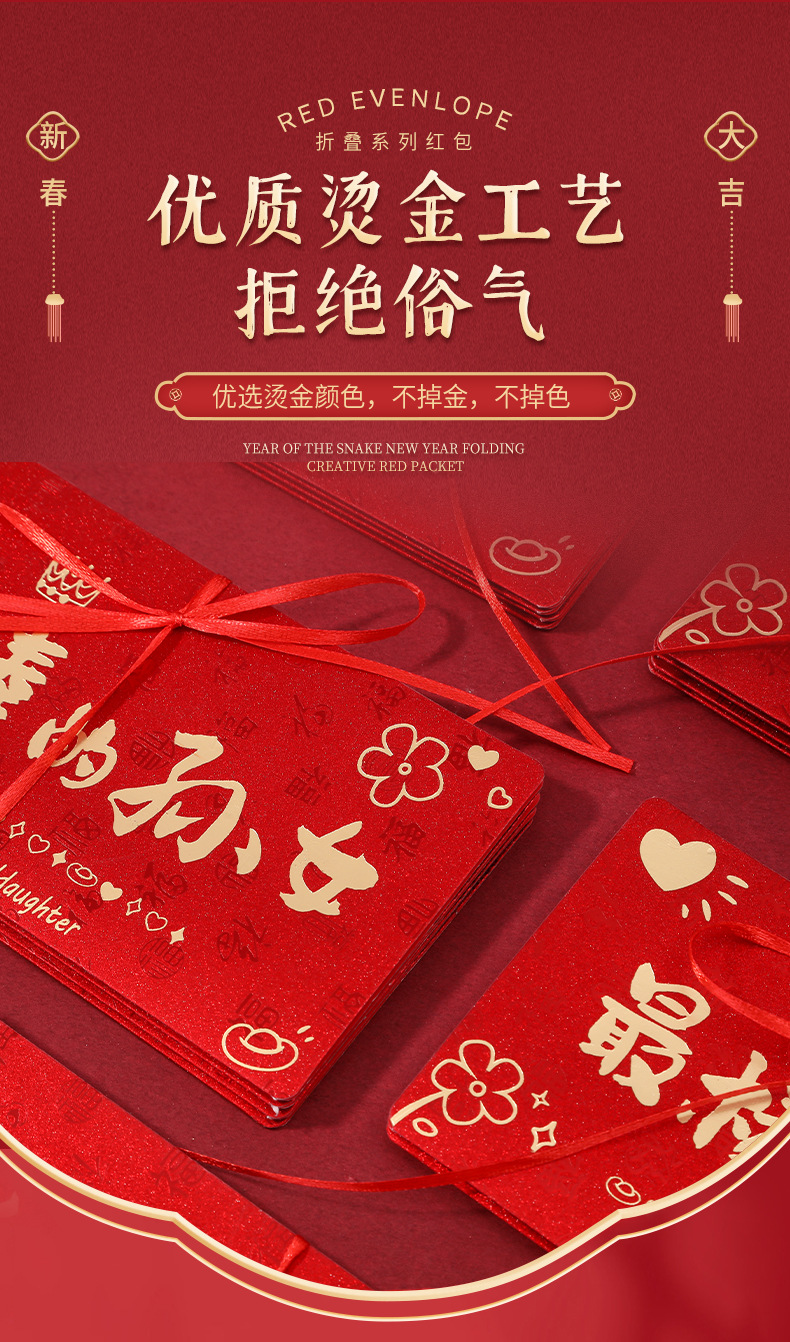 2026年马年新年快乐儿子女儿福寿金葱烫金磨砂红包利是封生压岁