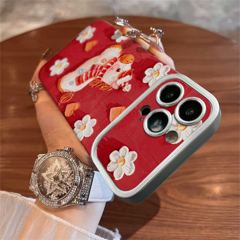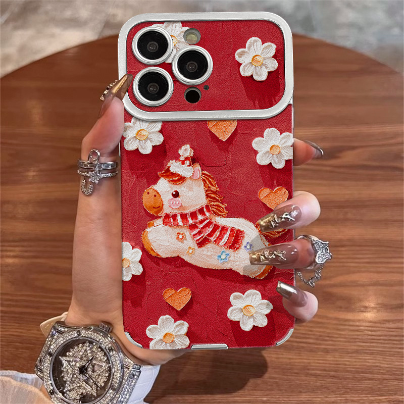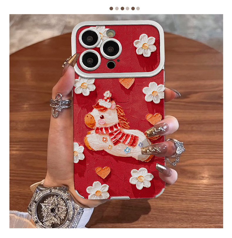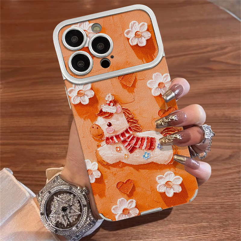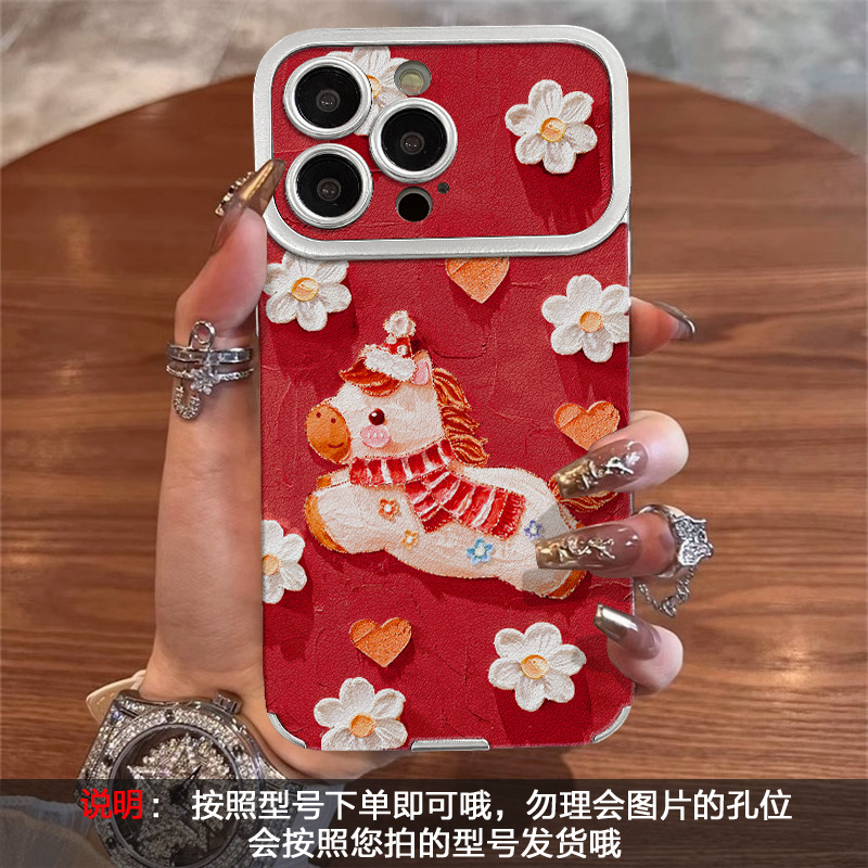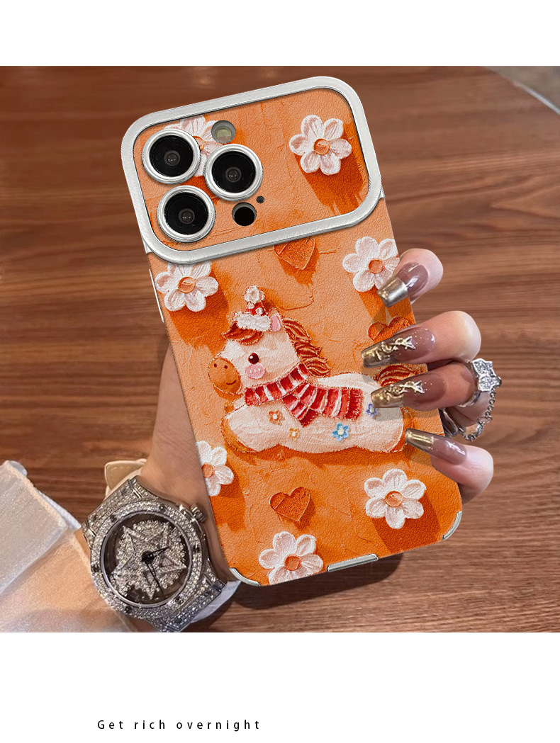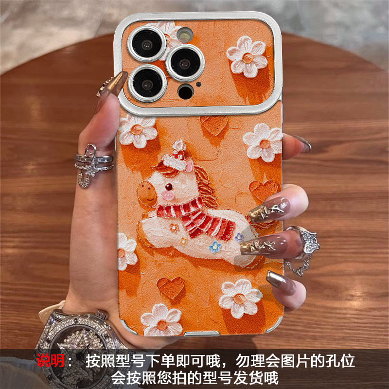 油画小马适用苹果17promax手机壳iphone15电镀贴皮16新女款14硅胶