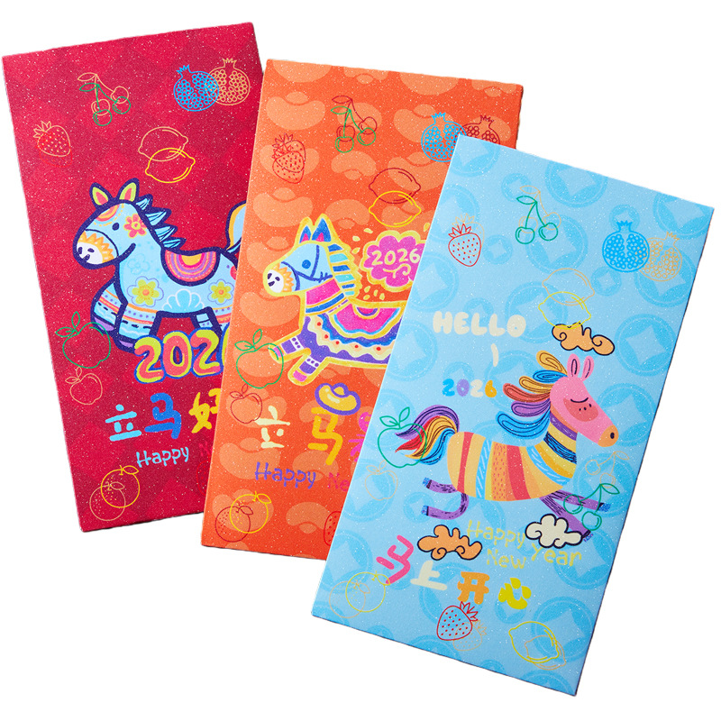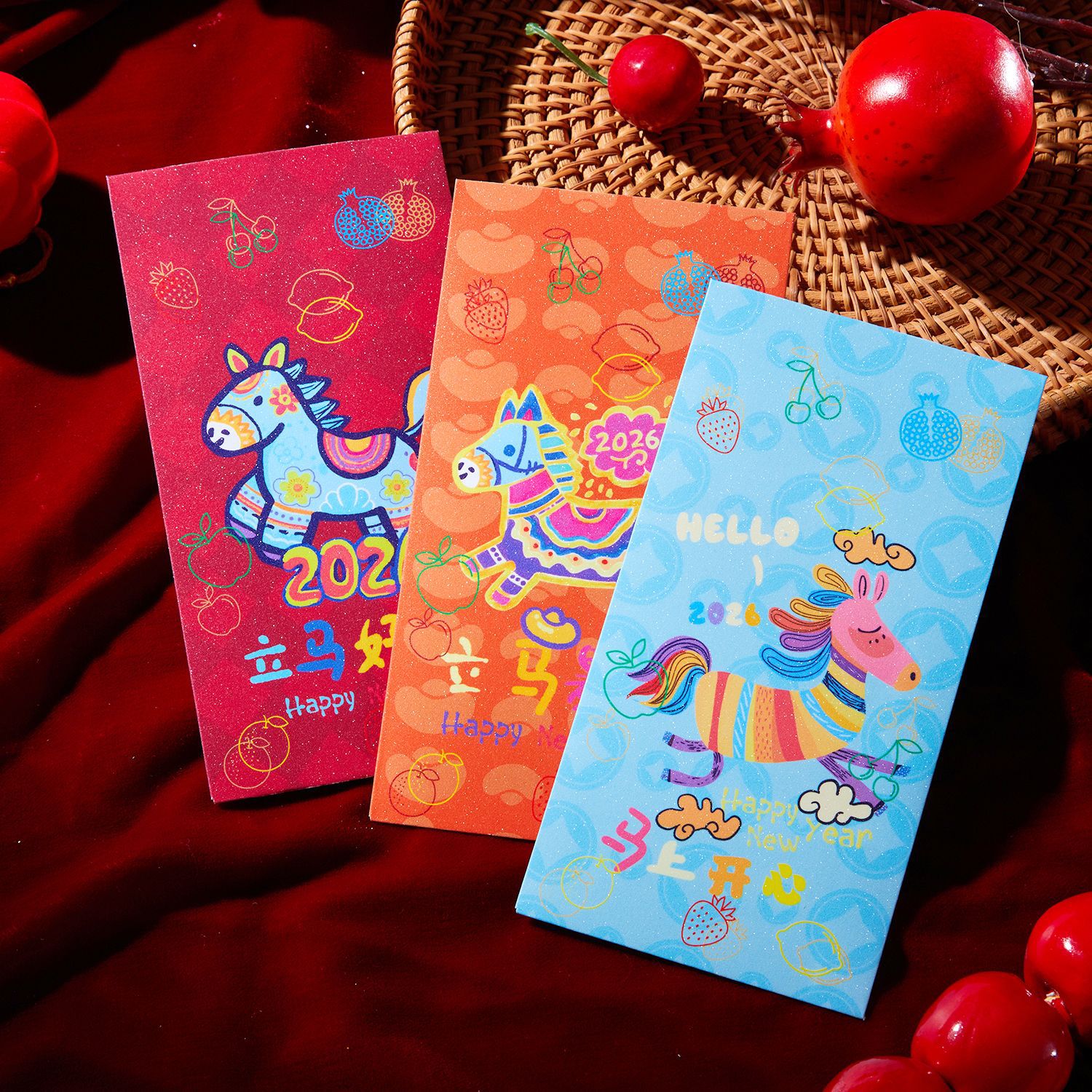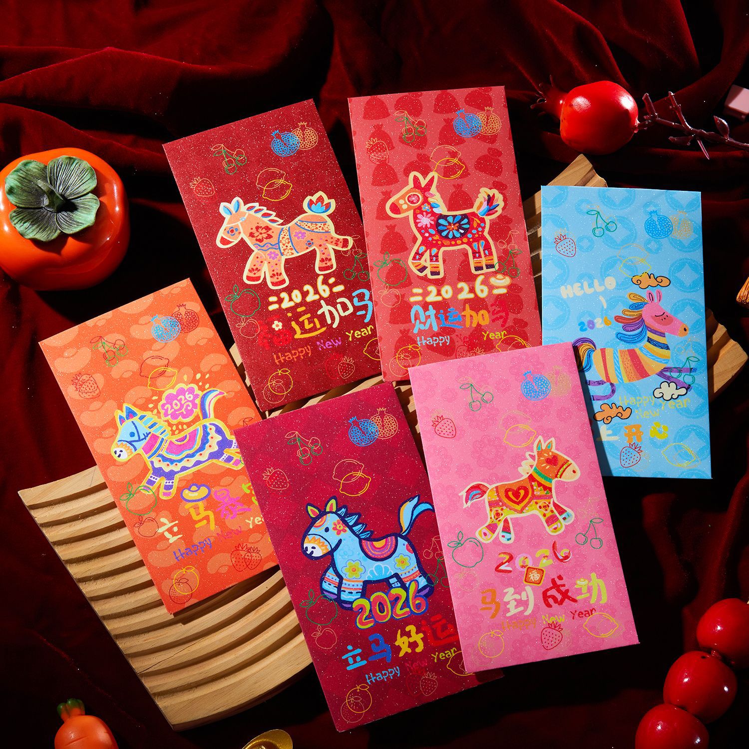 新年卡通手绘福马萌马系列5D高清亚膜可爱卡通春节红包马年利是封