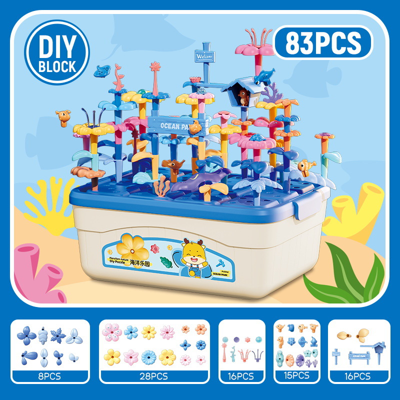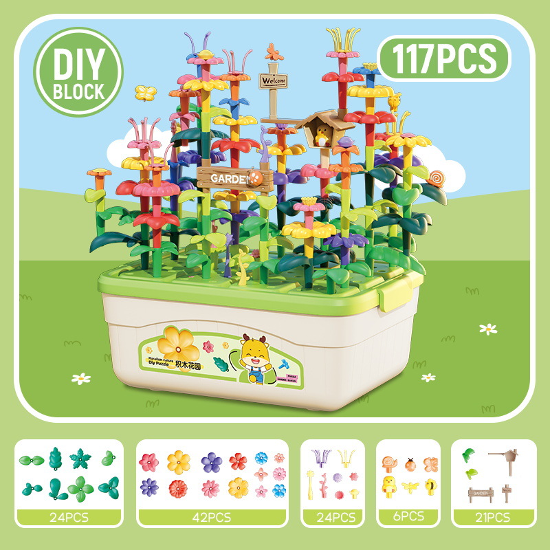 源头厂家 儿童创意拼装积木花玩具 益智百变积木花园拼装玩具