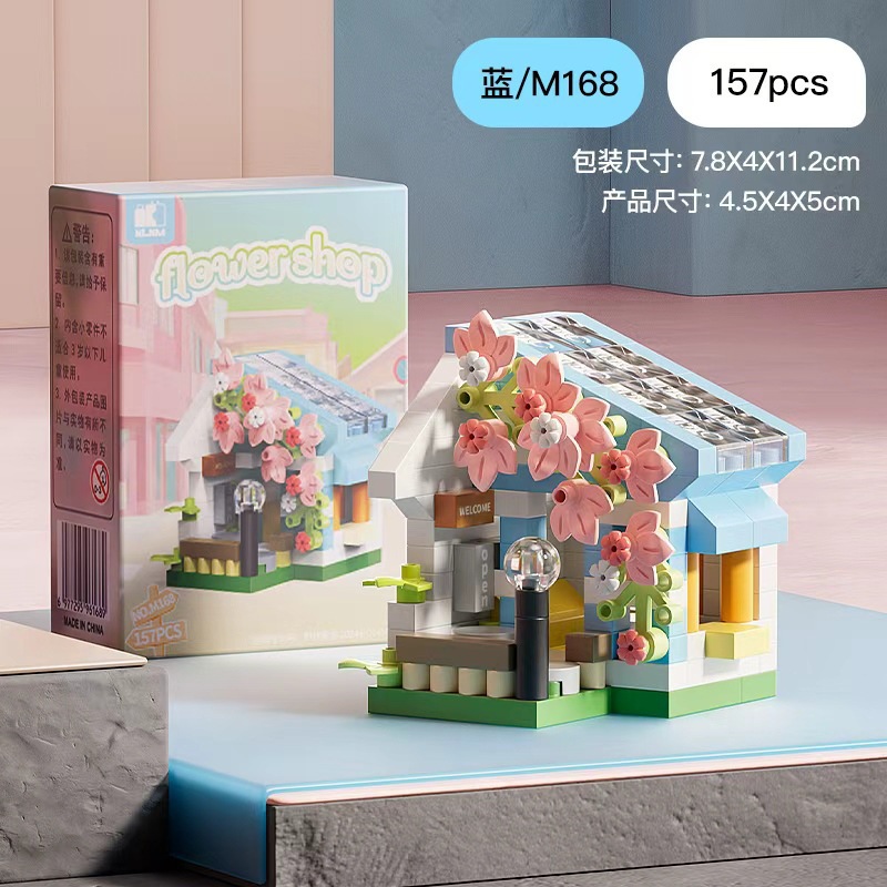 兼容乐高建筑街景积木花店樱花树屋家居桌面摆件儿童益智玩具女孩