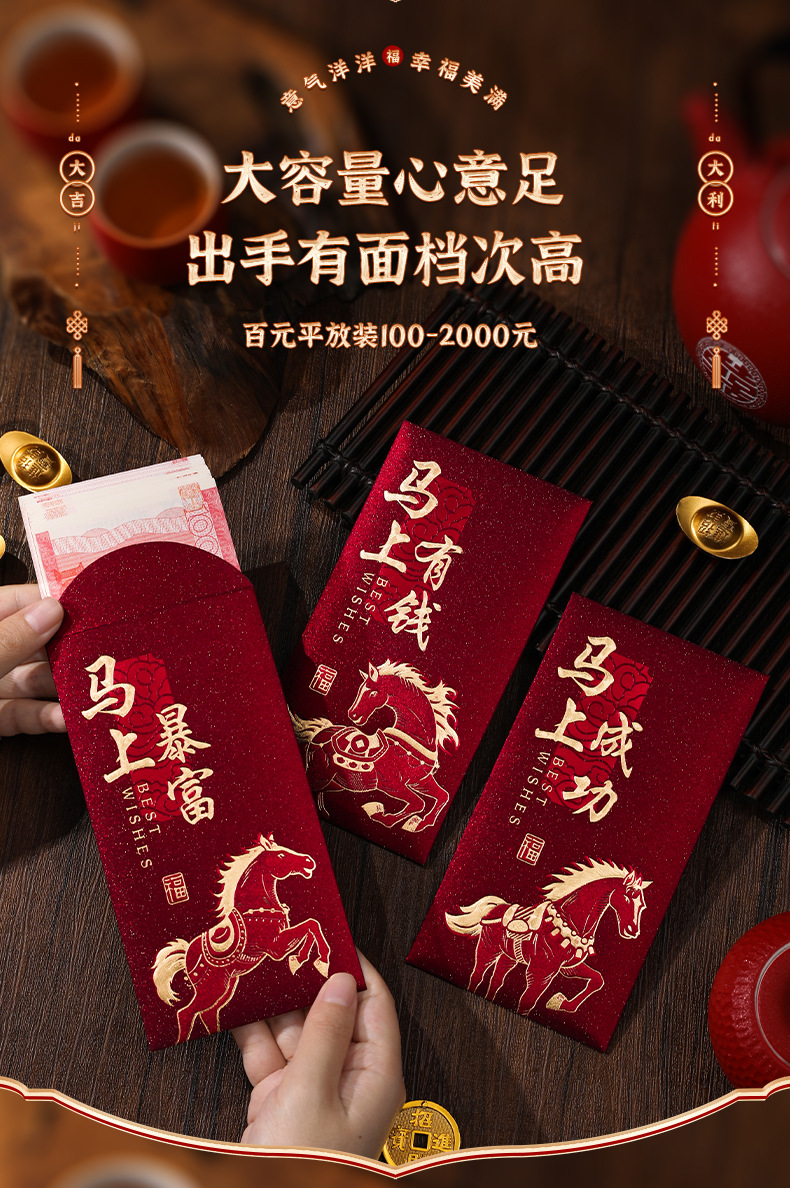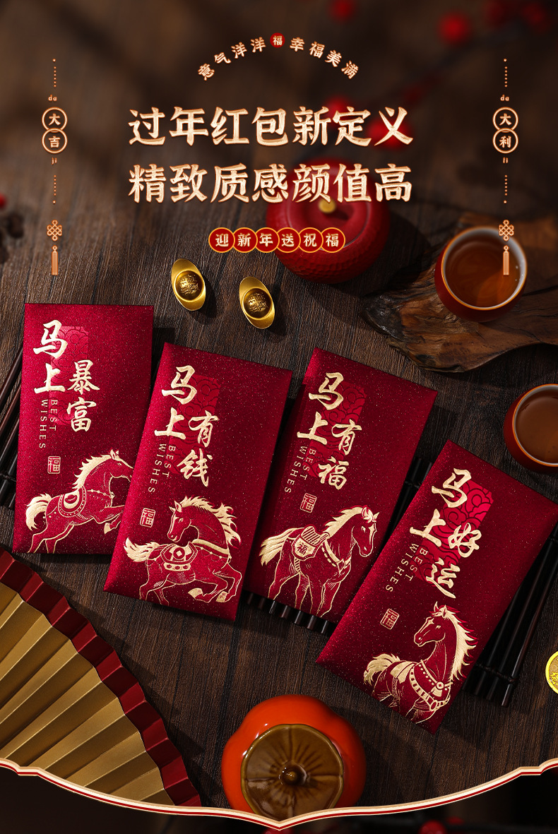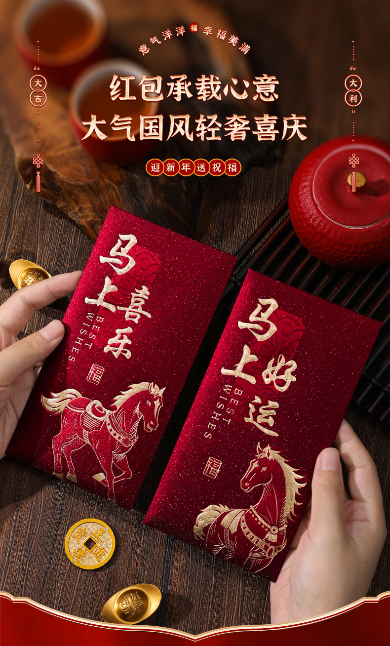 新年红包2026马年个性创意中式压岁钱袋春节过年拜年通用利是封