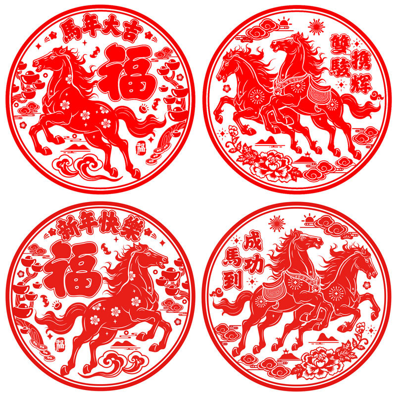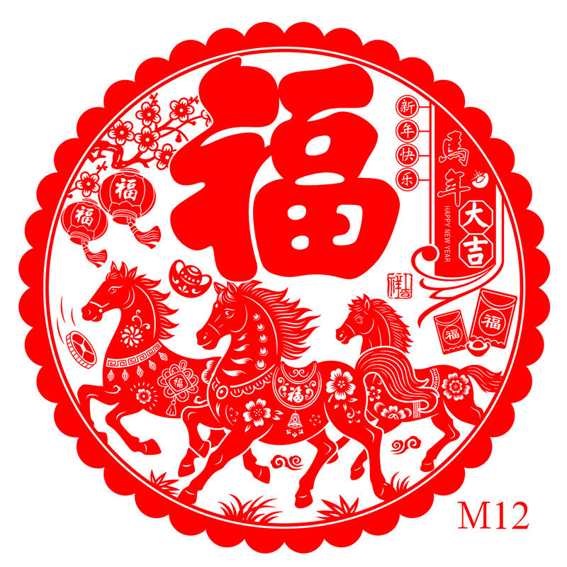 2026马年静电膜窗花剪纸静电植绒窗花春节装饰过年窗贴厂家批发
