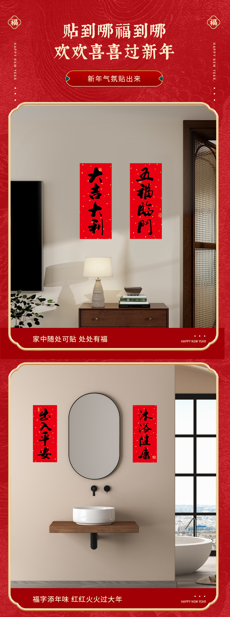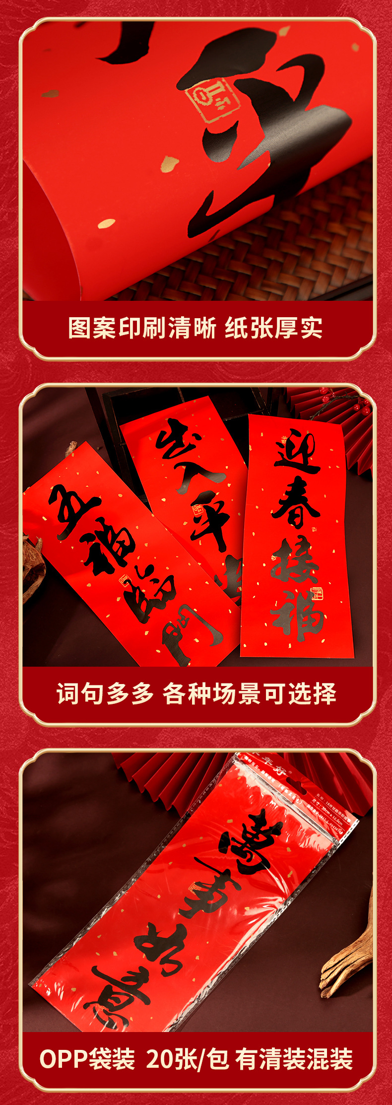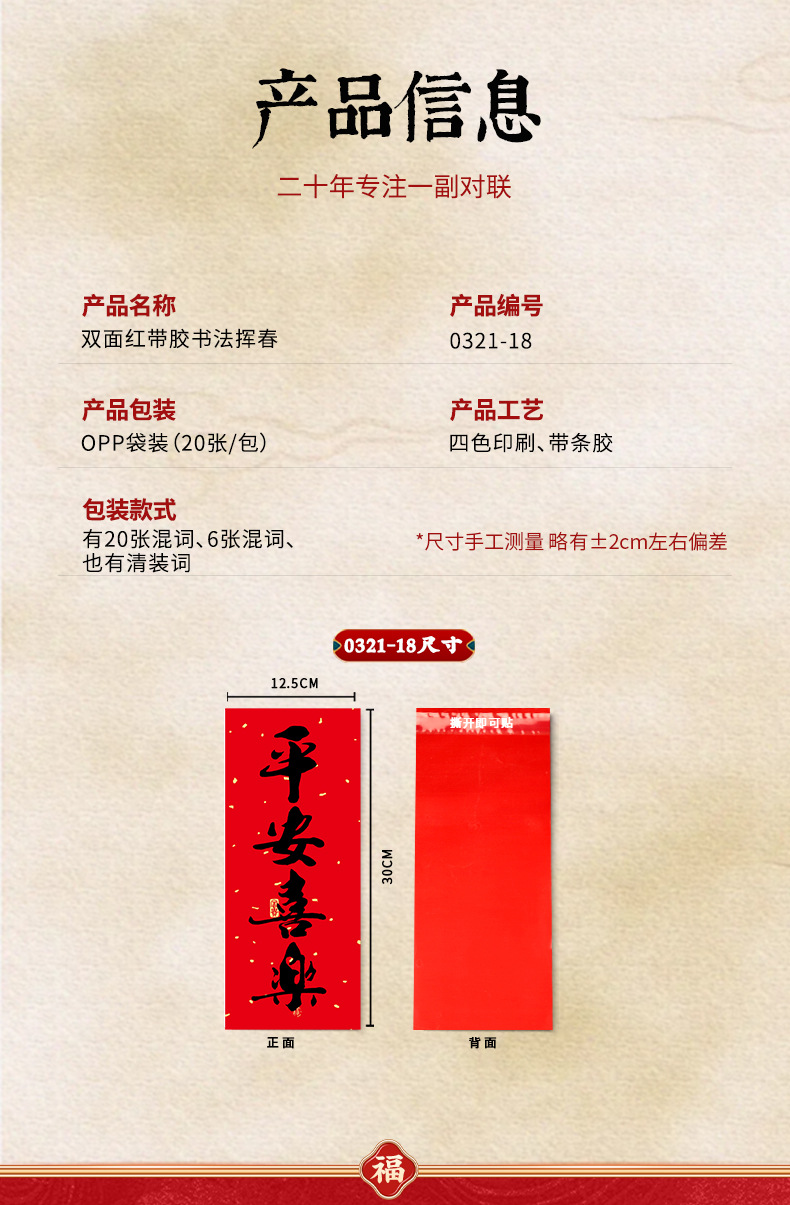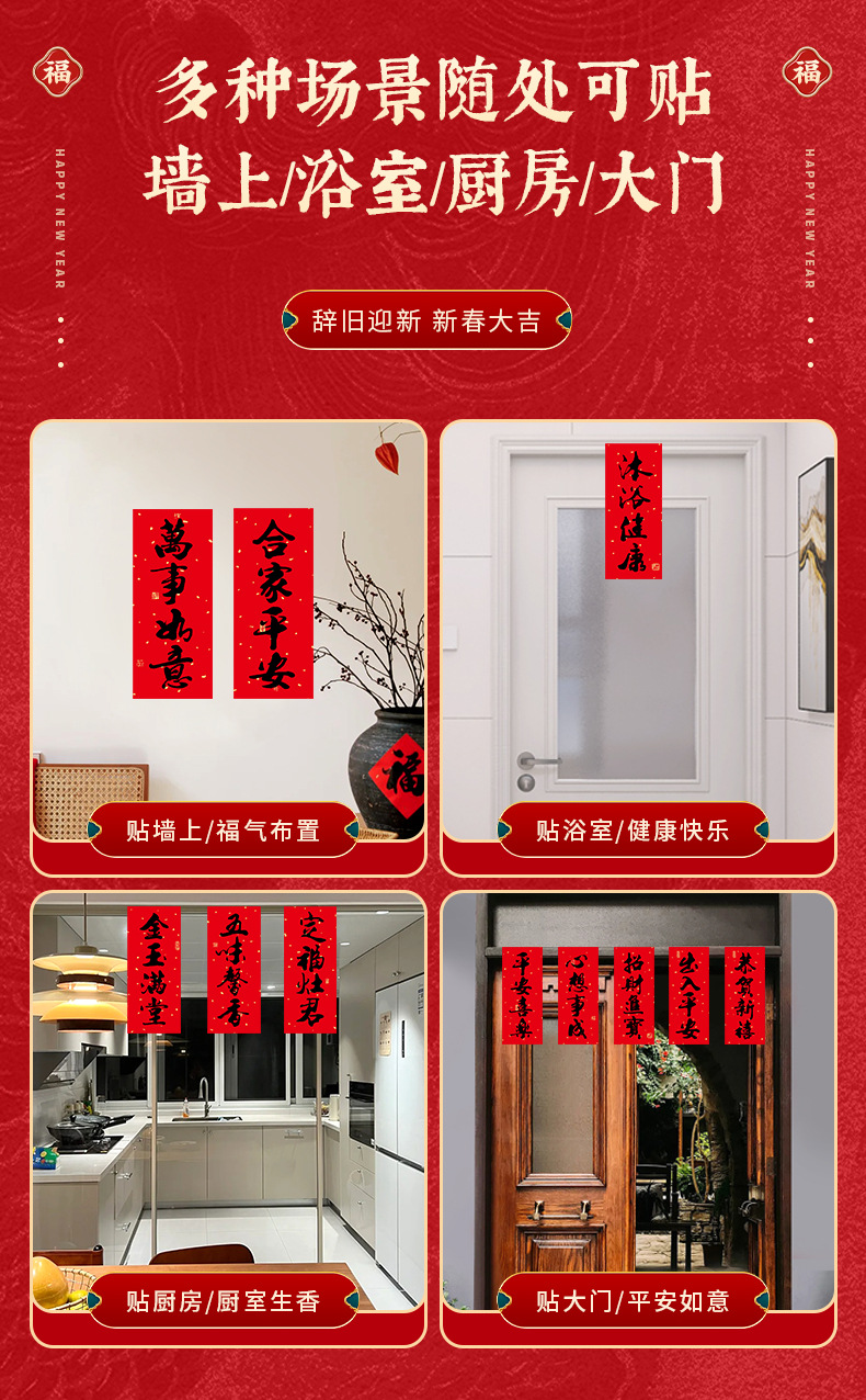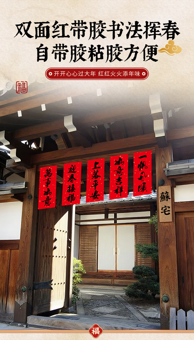 2026春节小对联喜庆装饰书法铜版纸春联批发新年创意带胶挥春门贴
