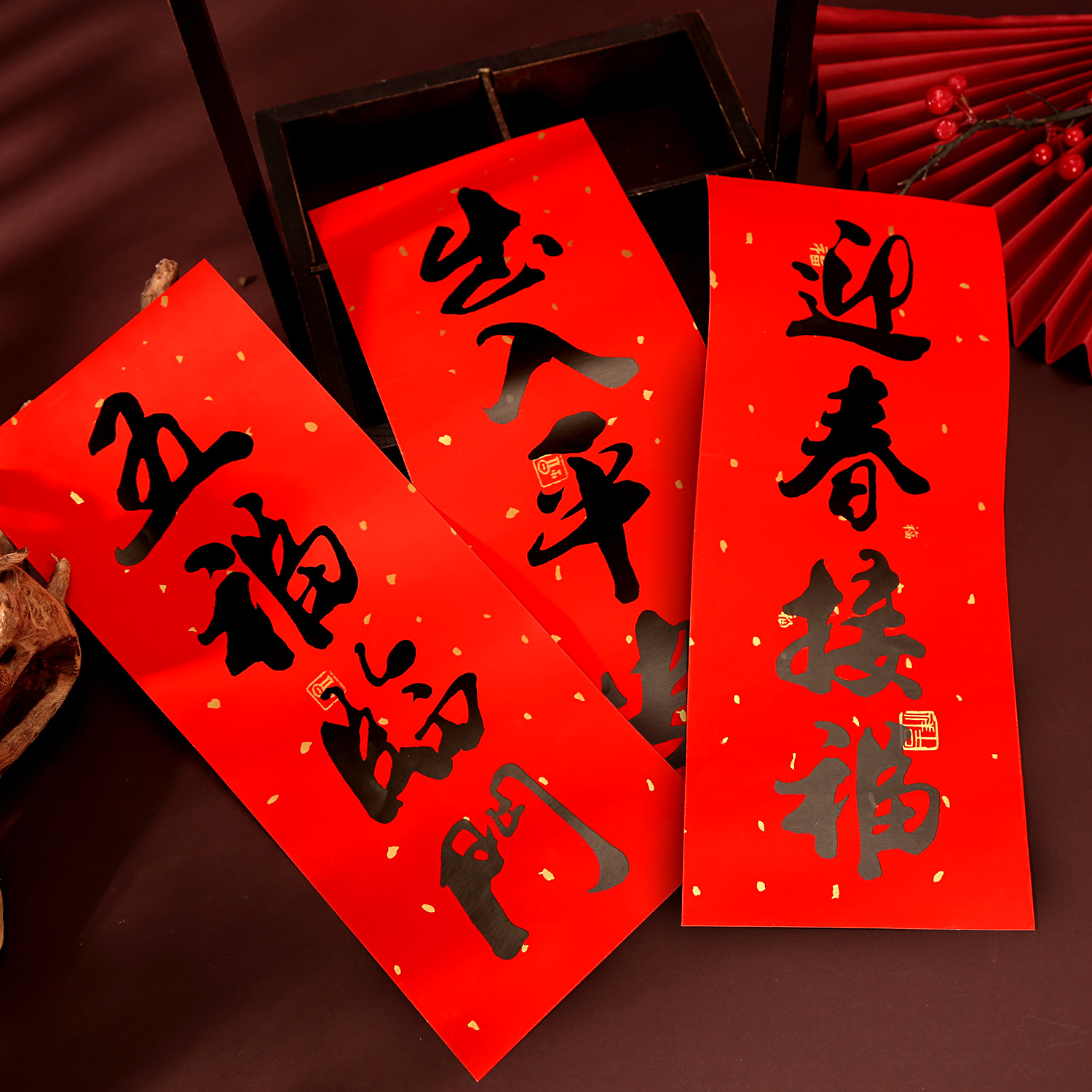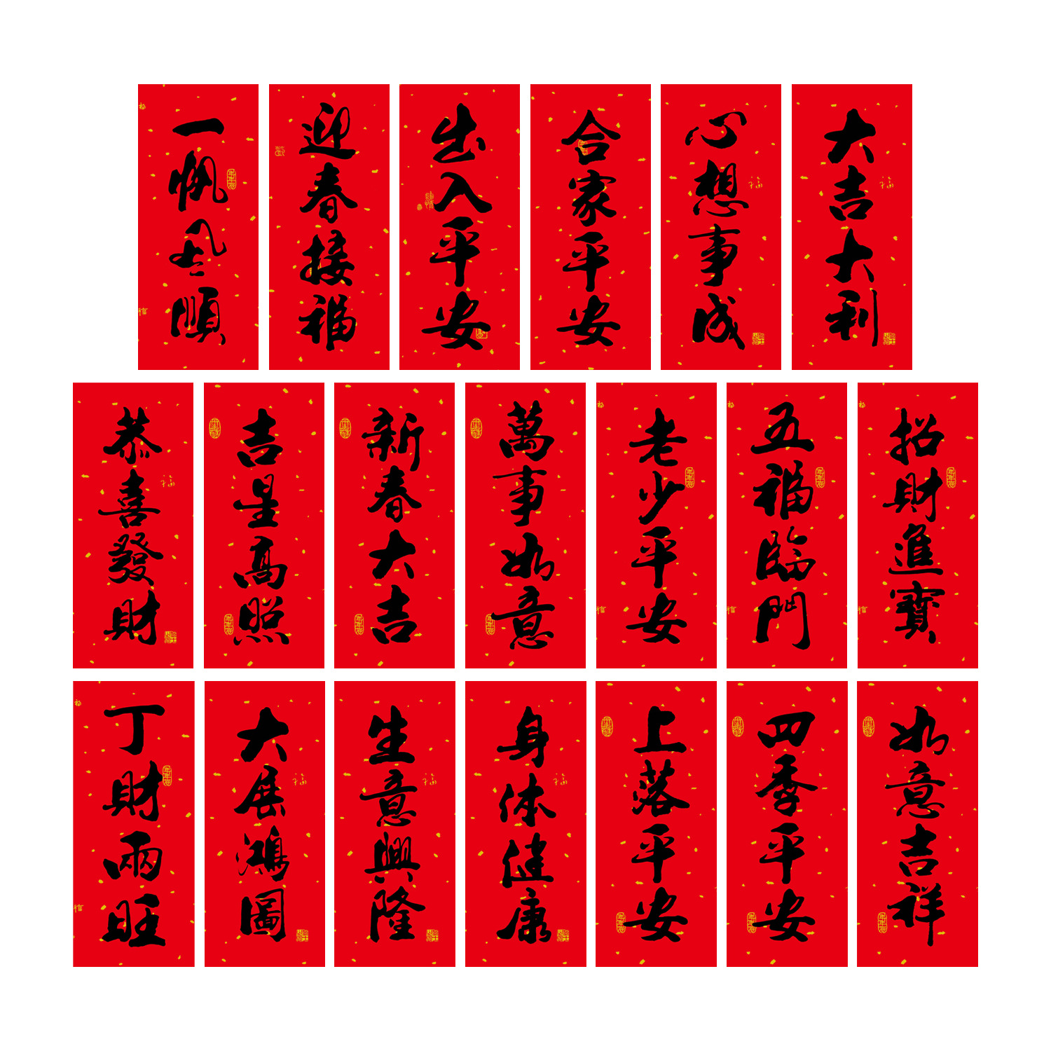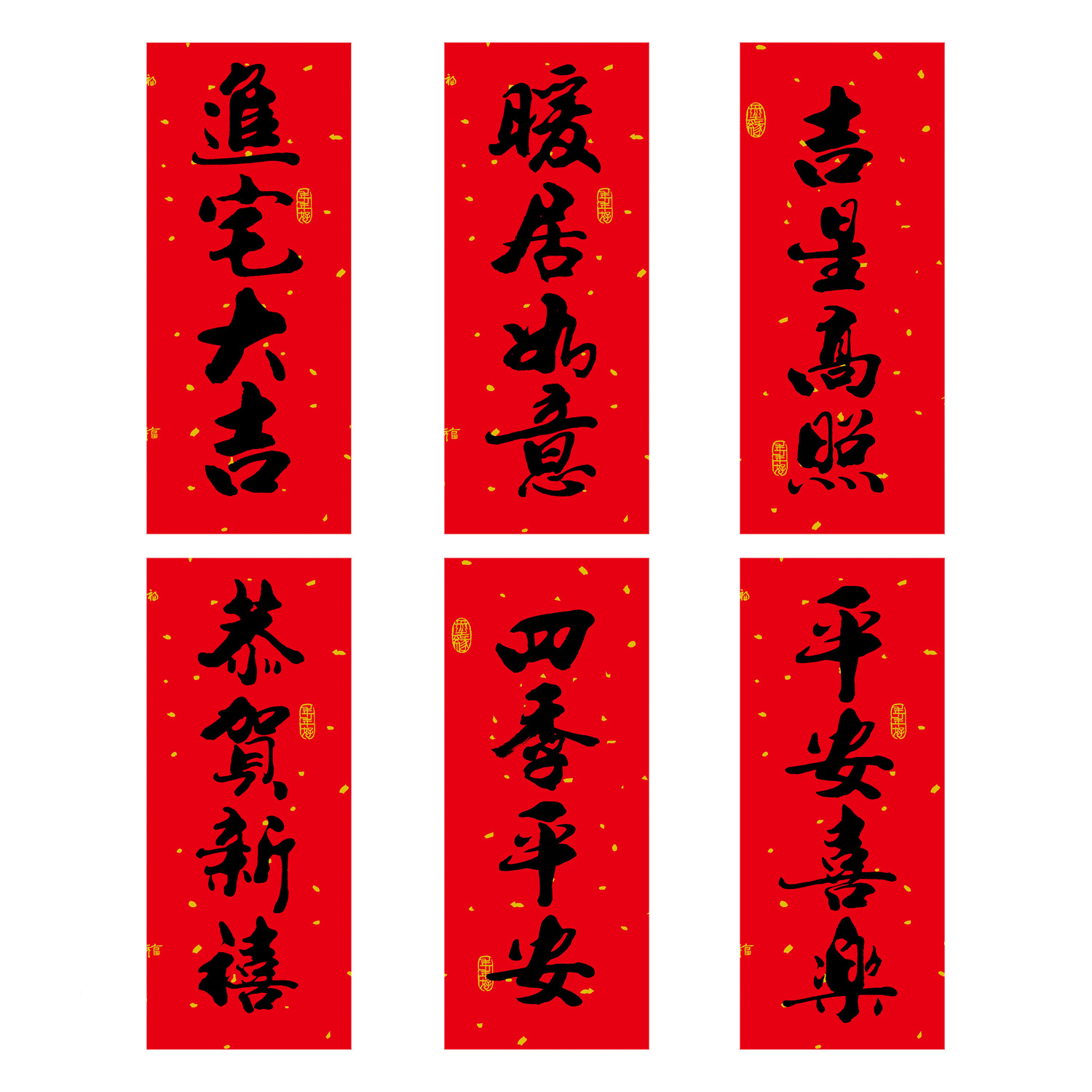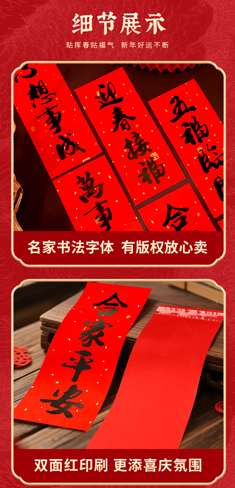 2026春节小对联喜庆装饰书法铜版纸春联批发新年创意带胶挥春门贴