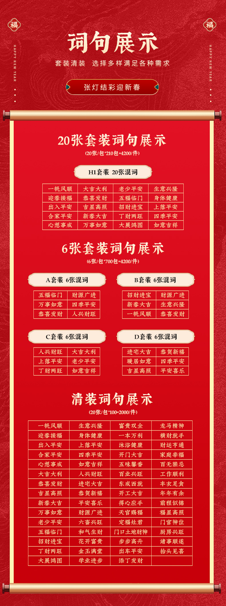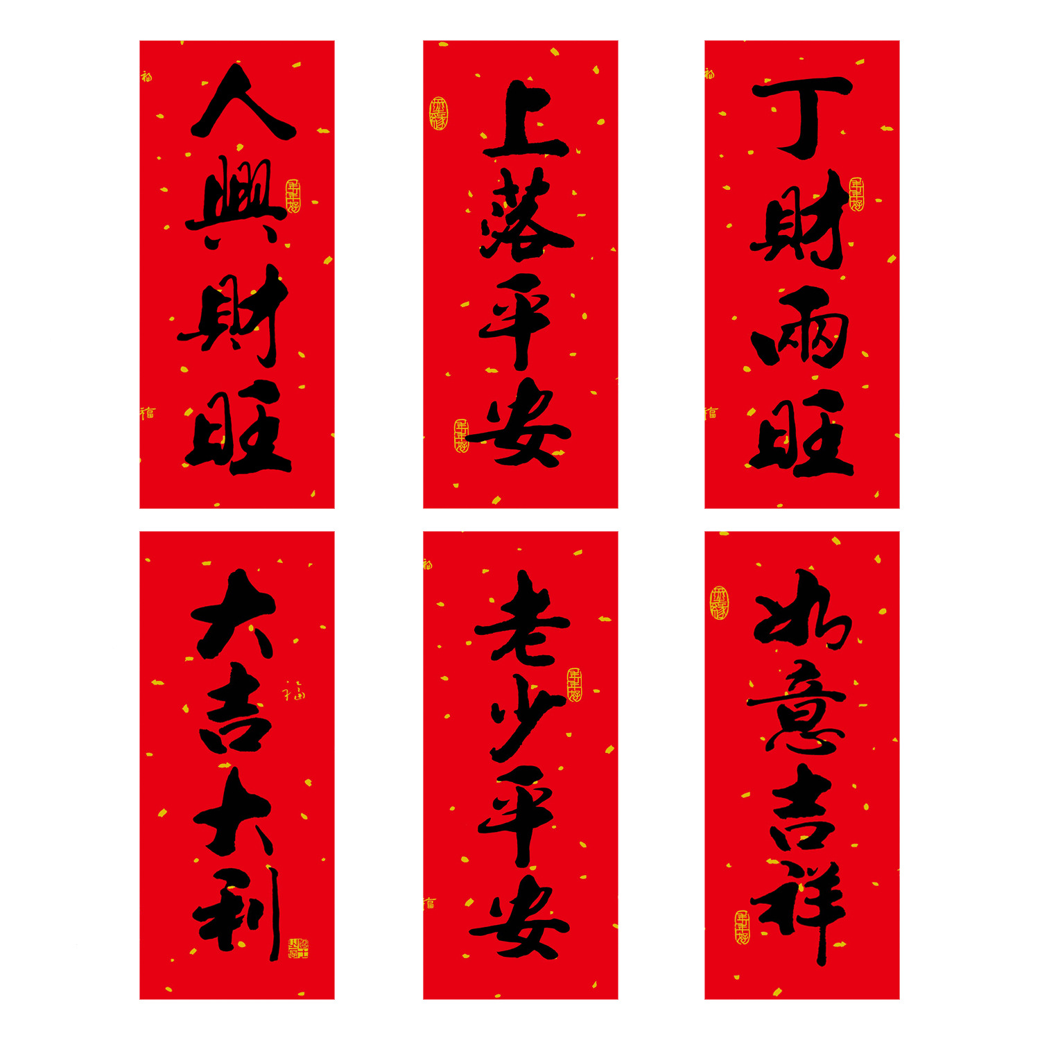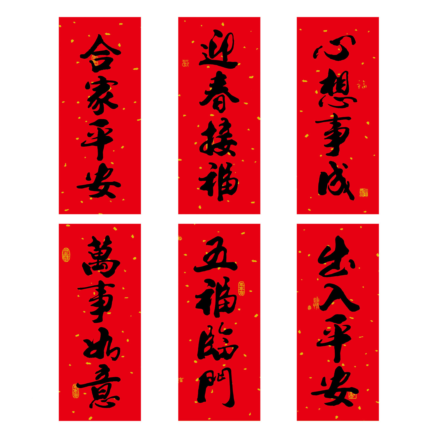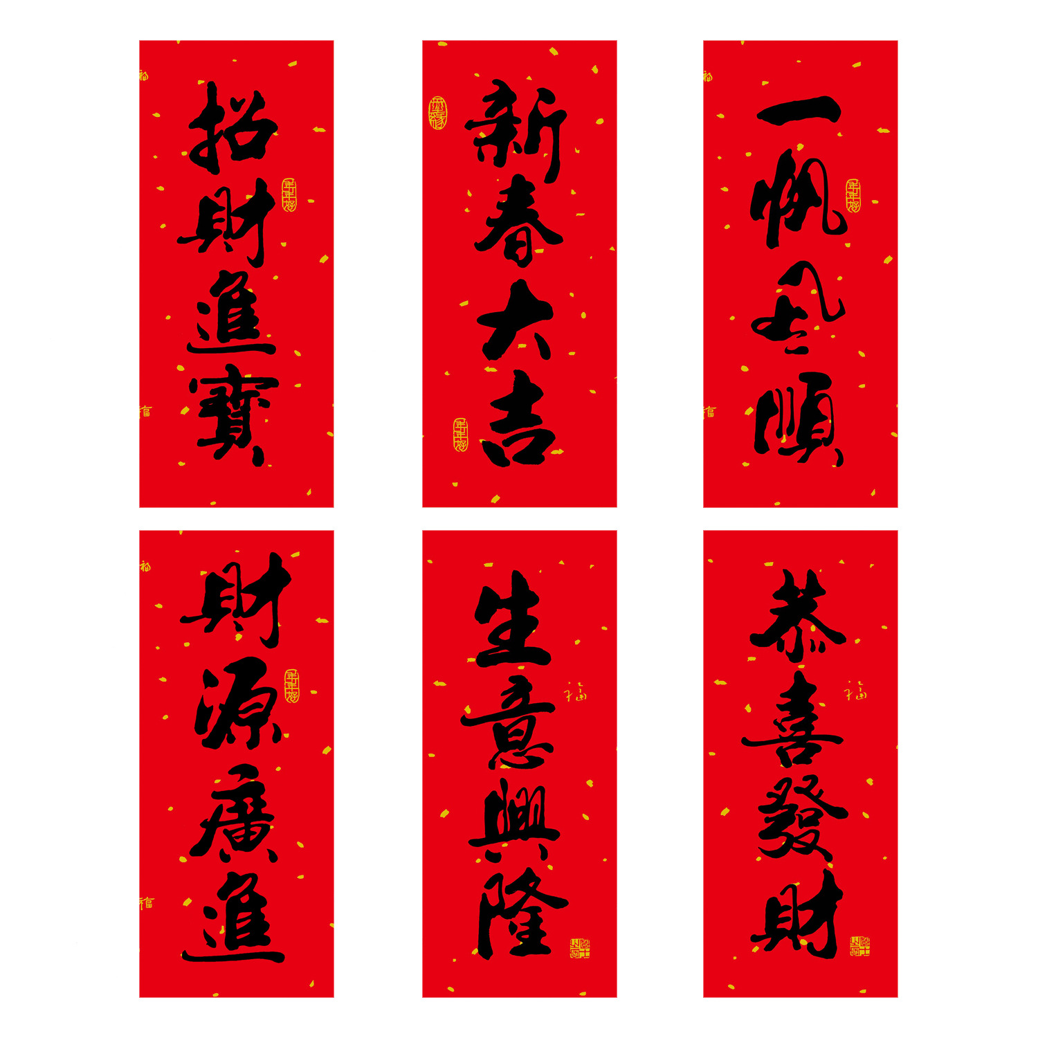 2026春节小对联喜庆装饰书法铜版纸春联批发新年创意带胶挥春门贴