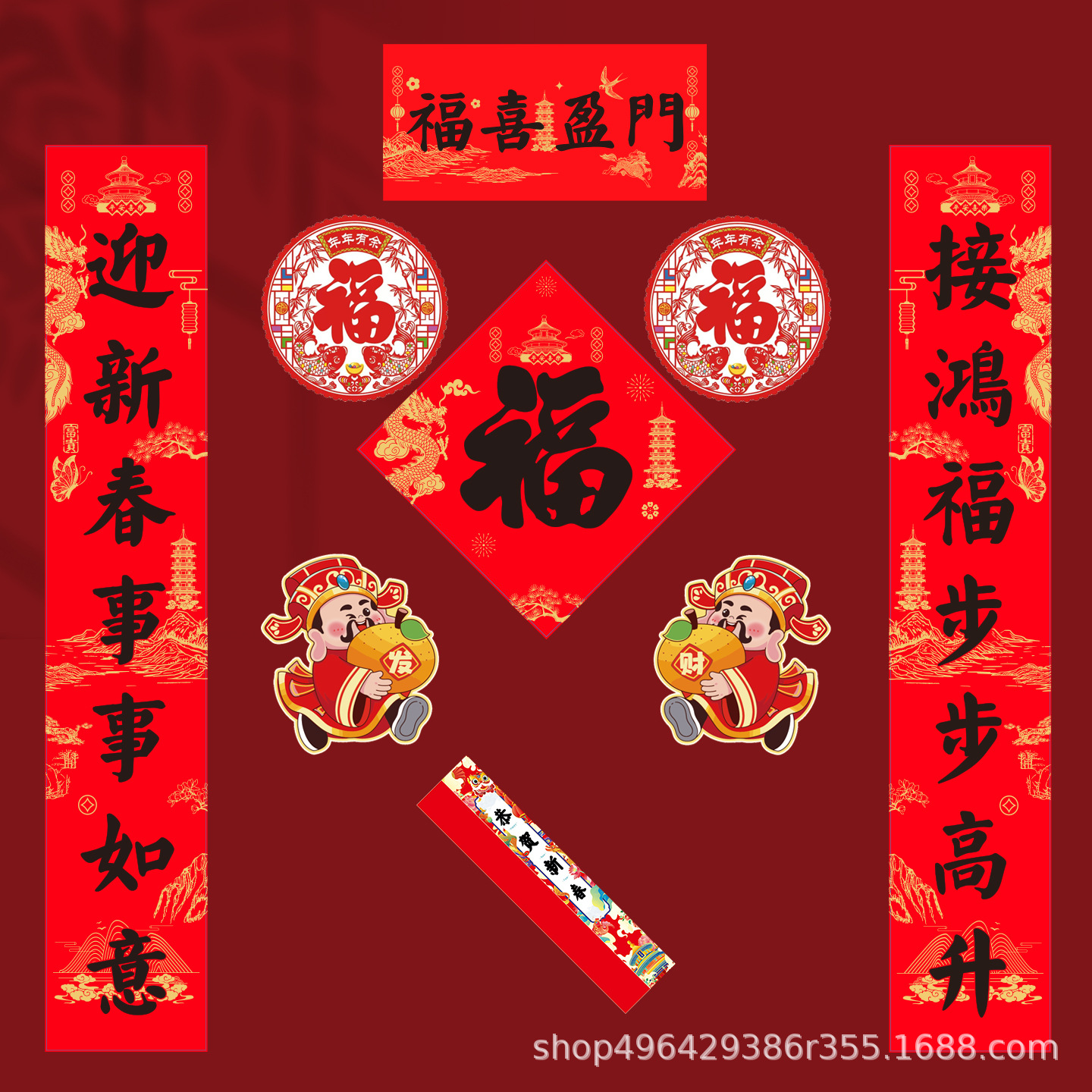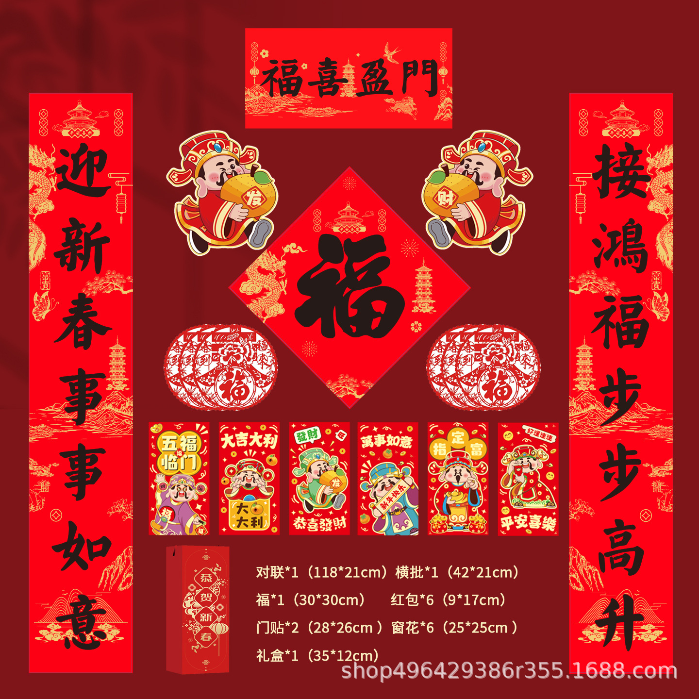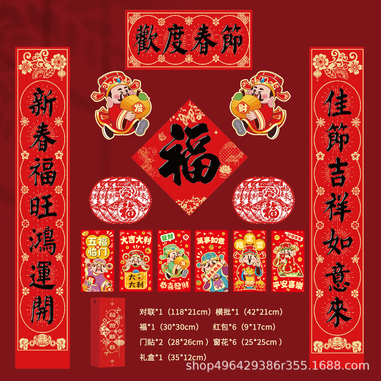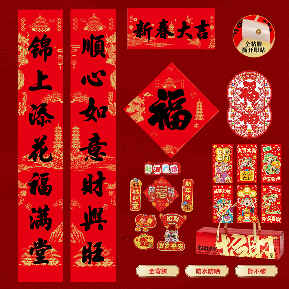 2026马年春联春节对联批发年货大礼包烫金加印LOGO对联套装礼盒