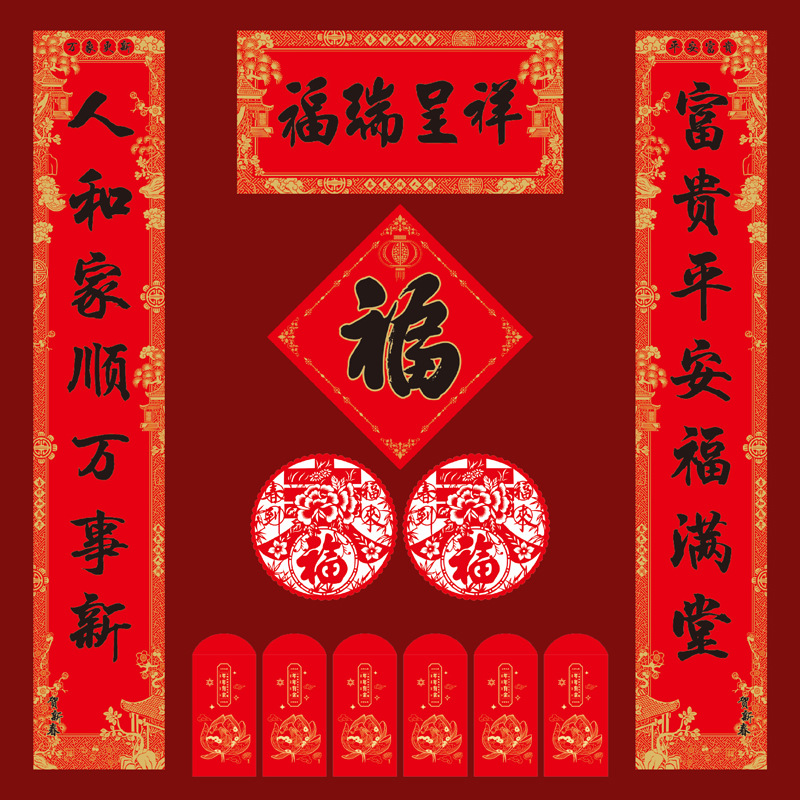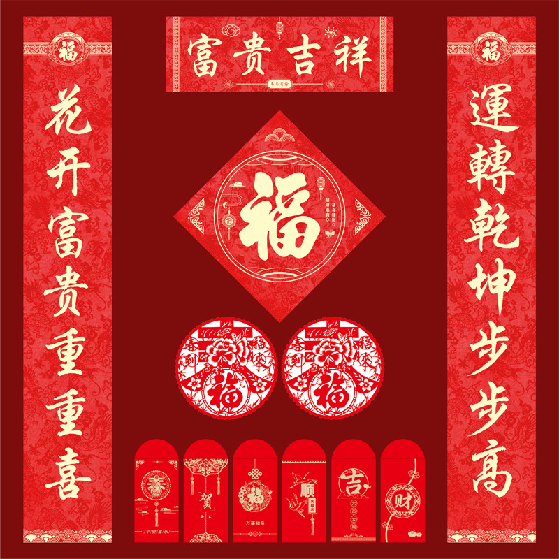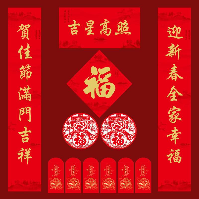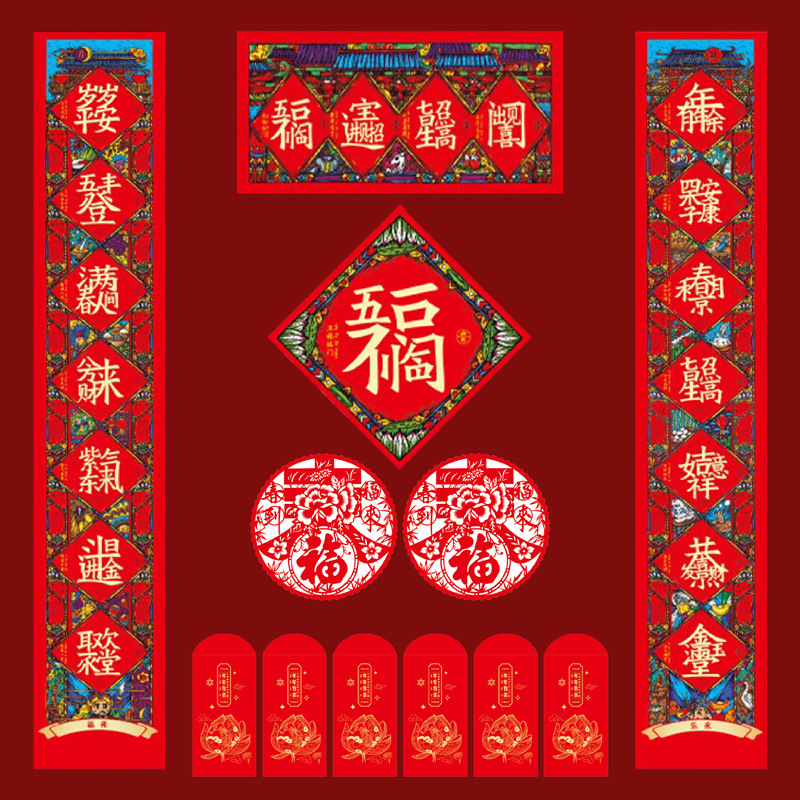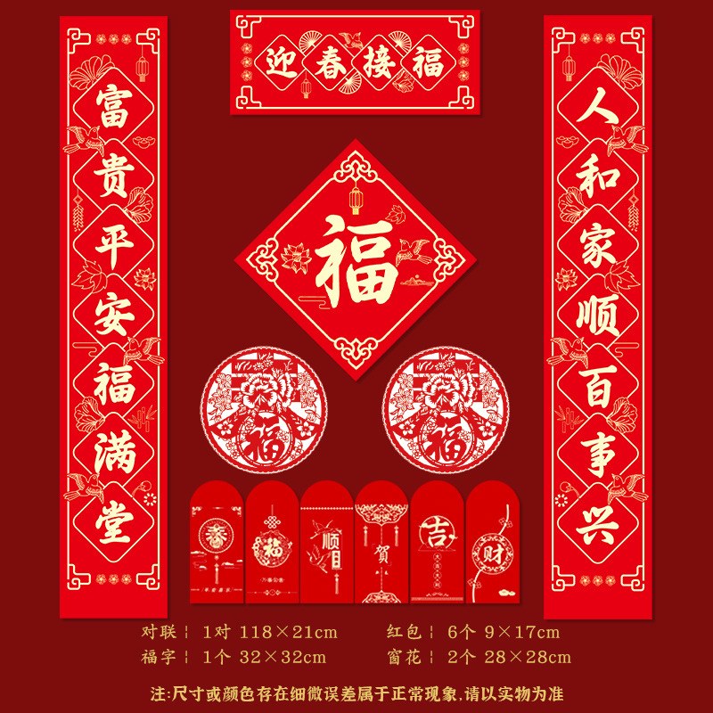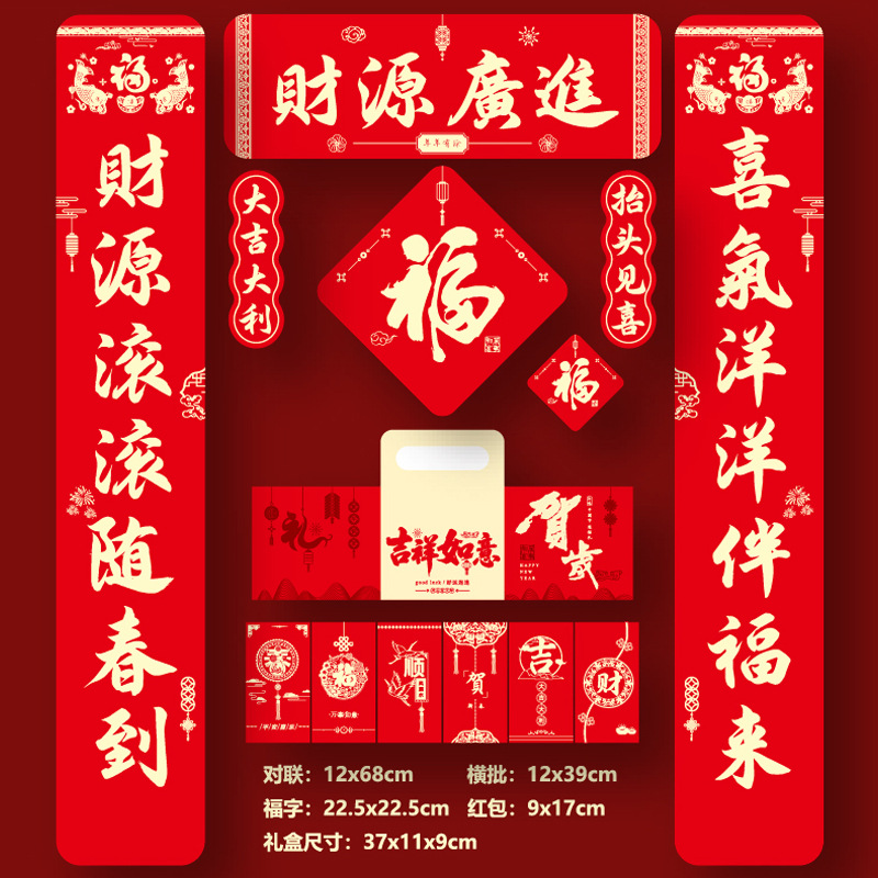 2026植绒对联定制马年防晒烫金礼盒春节礼包套装丝绸春联定做logo