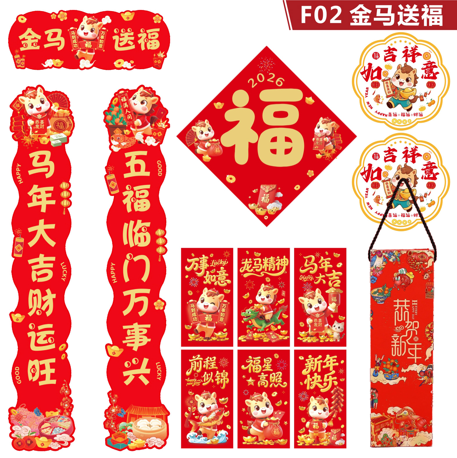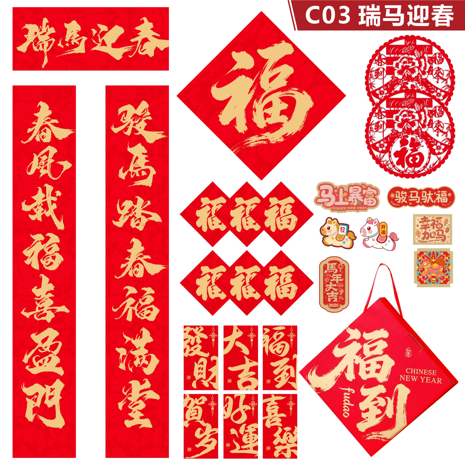 2026马年丝绸烫金对联春联套装定制现货新年特种纸异形广告对联大