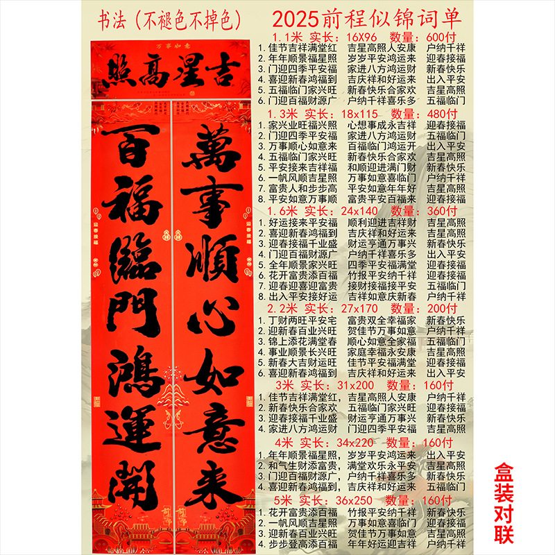 2025新款书法春联万年红七言对联盒装书法11言春联地摊年货批发