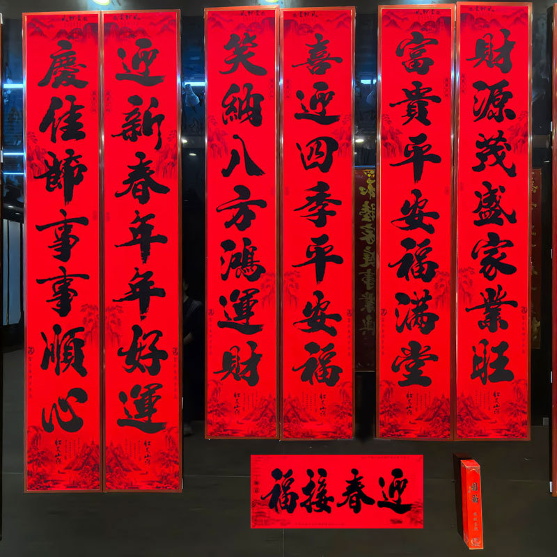 2026新款万年红书法十一言对联盒装过年春节植绒春联地摊年货批发