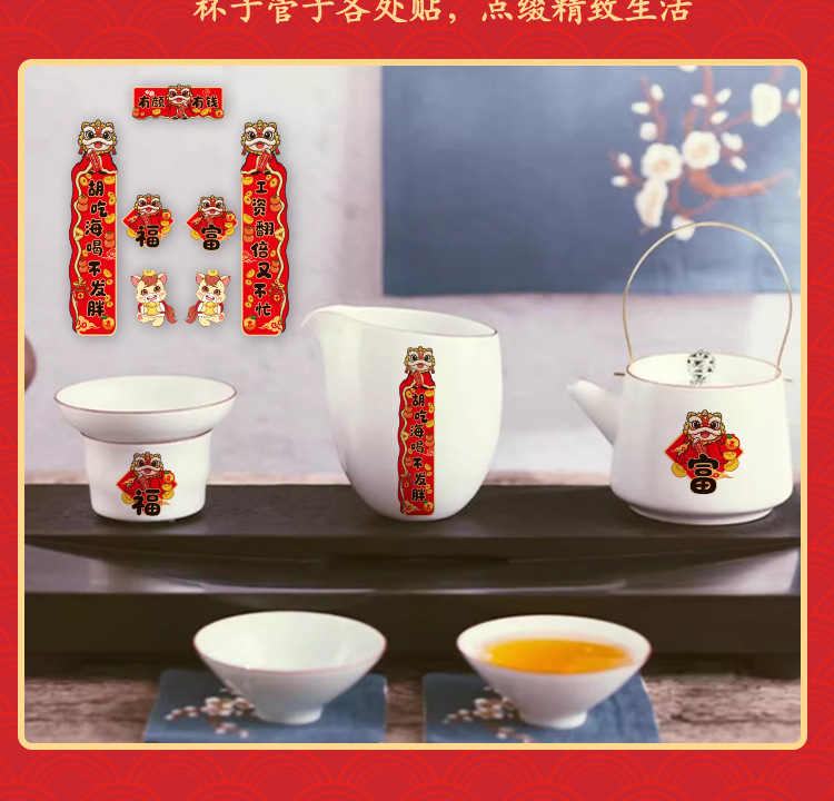 创意新年春节小对联手机diy装饰对联贴纸不留胶卡通马年手账素材