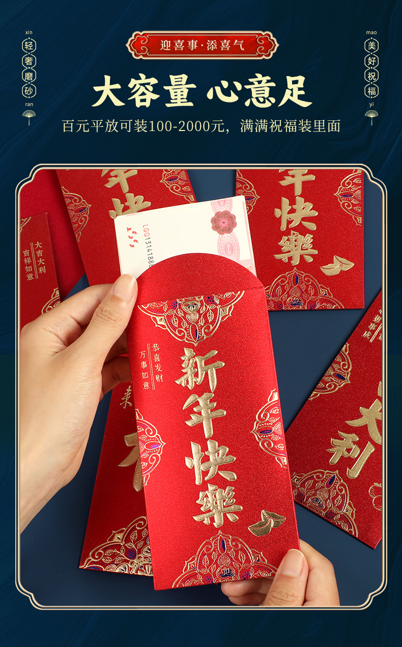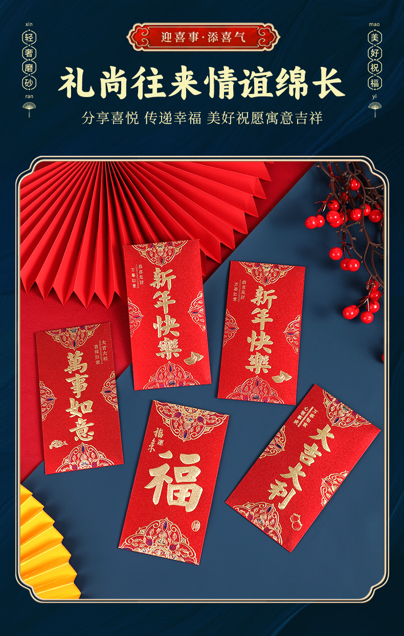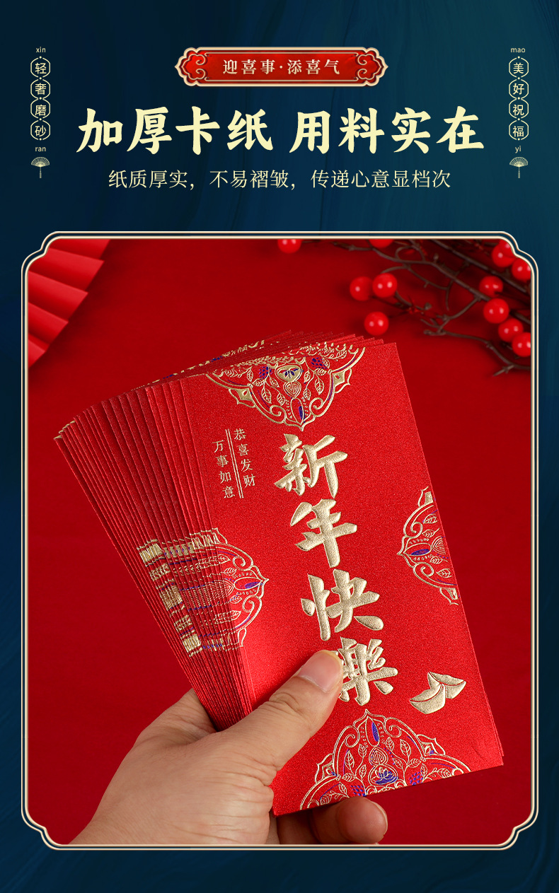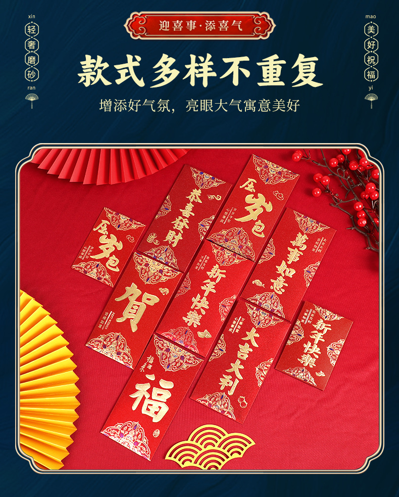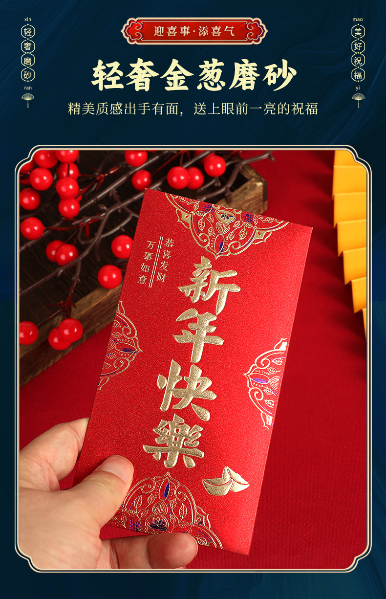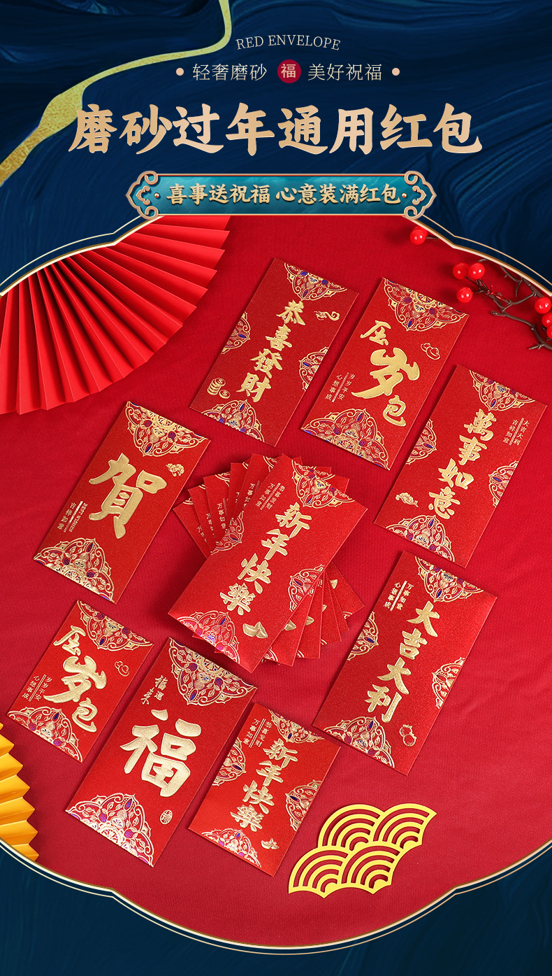 2026马年新年新款祝福红包春节拜年压岁包烫金磨砂利是封批发