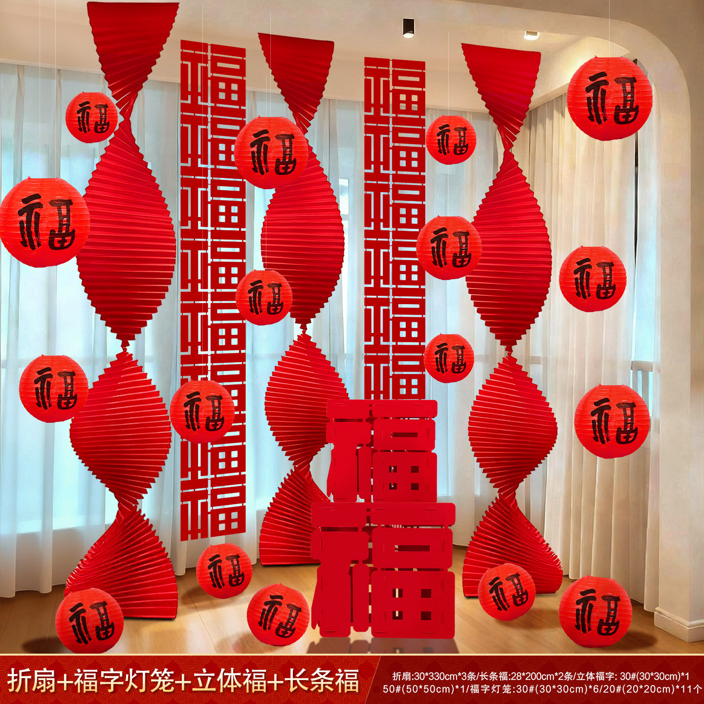 2026新年装饰春节过年氛围场景布置挂件马年福字条幅灯笼折扇挂饰